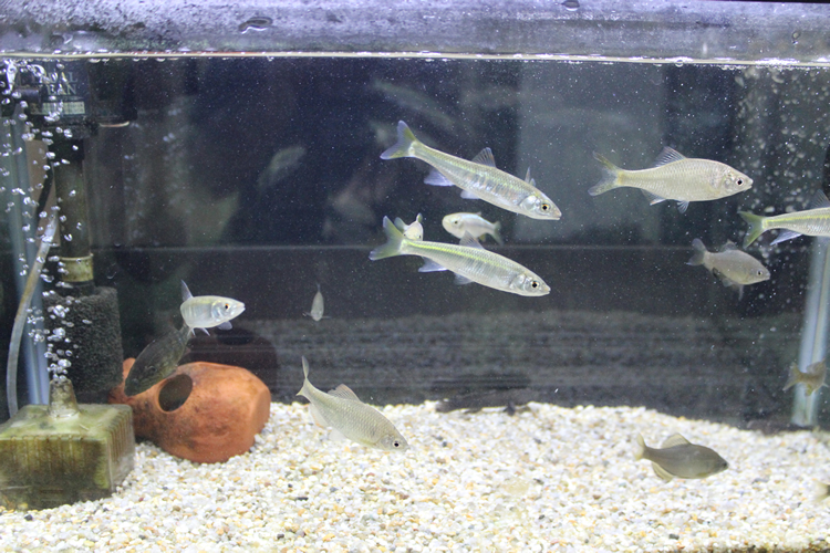 この水槽はかなり小さい水槽なのだが、そこにいる魚たちはそれを感じさせないほどの稚魚で、持ち帰ってはみたものの餌を食べられないようであれば元の川に戻そうと思っていた。