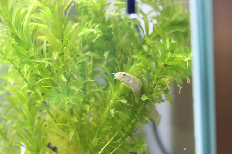 そんな家の稚魚用水槽だが、その中でも最初の成長頭がこのドジョウである。こんな感じで草にもたれてリラックスしていることもありそれはそれで微笑ましいが、あまり慣れることのないドジョウにしては餌付けされるのが早かった。