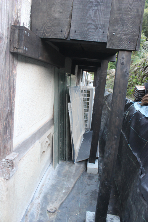 狭いスペースの作業でもあり荒々しい仕上げになっているが、どうせ見切れないためこれで良しとした。そしてこの屋根裏スペースに関しては、担当官にも表側と同様の処置をとれば良いのかどうか確認したが、少し口を濁したようにそれで良いとのことだった。