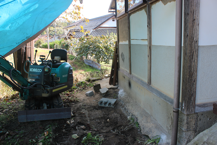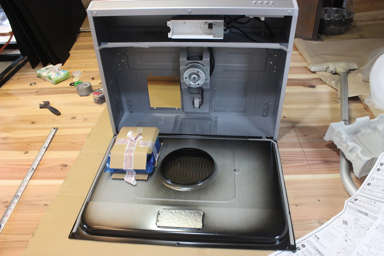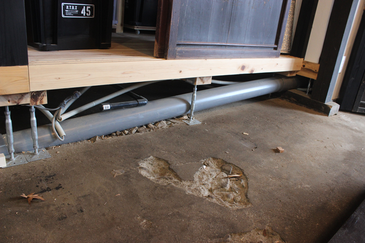 造り替えとなると前述の工程が必要となるが、穴を開け替えるというのは大変な作業で、ここがまだ何も手をつけていない土間の時期だったらまだしも、キッチン周り全てが完成してまだ綺麗な状態である今、それを行えば周囲が土とホコリで充満することになり、かつ残った穴を塞ぐための手間や材料が乾燥するまでの時間を考えると、かなり気が重たくなる作業をしなければならない。