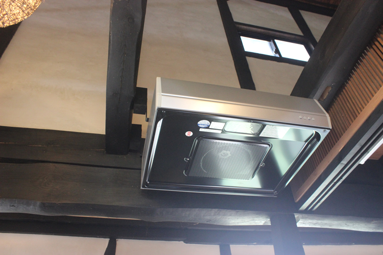 白状すると、離隔距離確保を怠った自分を棚に上げて、担当官をなじりたい気持ちになったものである。2センチ。そのくらい容赦しろよと。母家のフード設置の際消防に確認したとき、壁を構成している貫や竹はもっとダクトとの距離が近く、さらに壁付けタイプのレンジフードの場合、フード自体を固定するための下地となる木材がダクトのすぐ横を通る設計になっている。