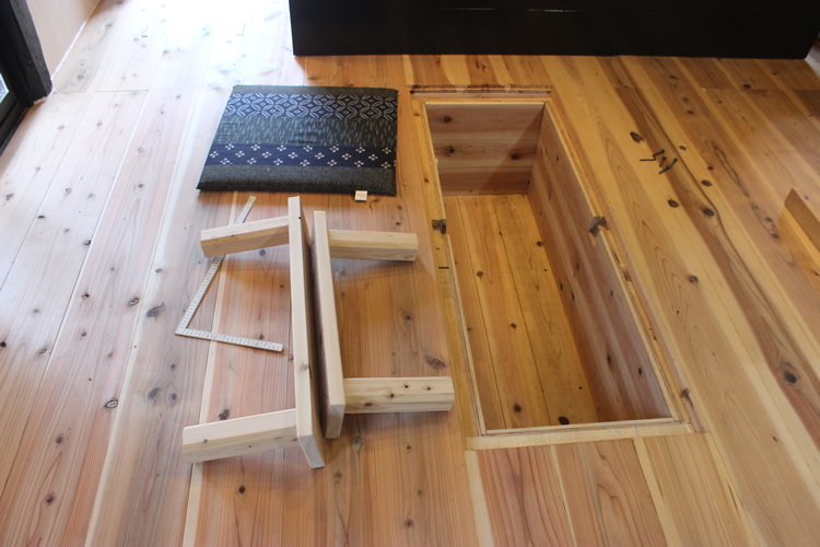 もっと言うと、この囲炉裏部屋には最大の出火原因となり得る囲炉裏(よくあるお洒落囲炉裏ではなく、実際に焚き火レベルの火を扱う)があり、それを考えても1階の天井にあたる付近に設置するべきだと考えた。
