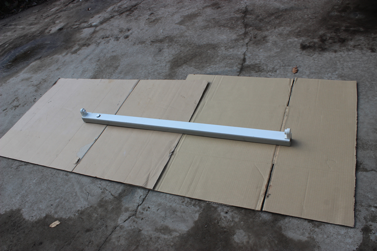 実際、より高い位置での梁柱の塗装や壁塗り作業をする際、この足場に全体重を預けて何かをするということはあまりなく、一つ前の写真のように、足場を離れて作業し、ひと段落したときや作業を終えた際に足場に体重を預けるという使い方をする。