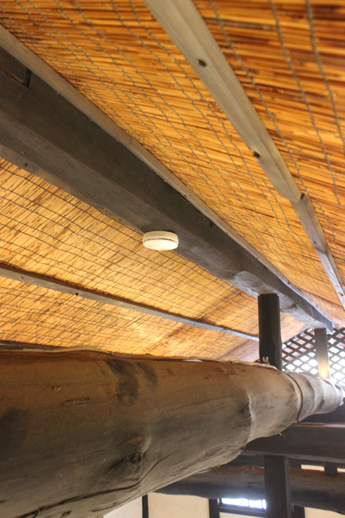 左の写真をご覧いただければわかると思うが、この報知器は囲炉裏の間の吹き抜けの棟木に取り付けている。報知器の設置位置基準はかなり細かく設定されており、この場合作者が問題視したいのは「天井」という定義についてだ。