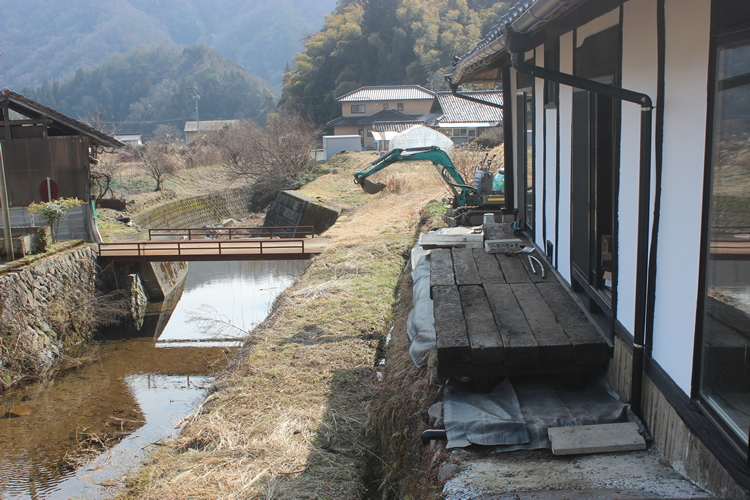 その後地盤に関しては土盛りで良しとしたため、その時点で対処していれば挽回できたのだがぬかってしまいここに至っている。これがあるため、ここの最終ラインの根太は40ミリ程度の余裕しかなく、こういう苦肉の策をとるしかなかったということになる。