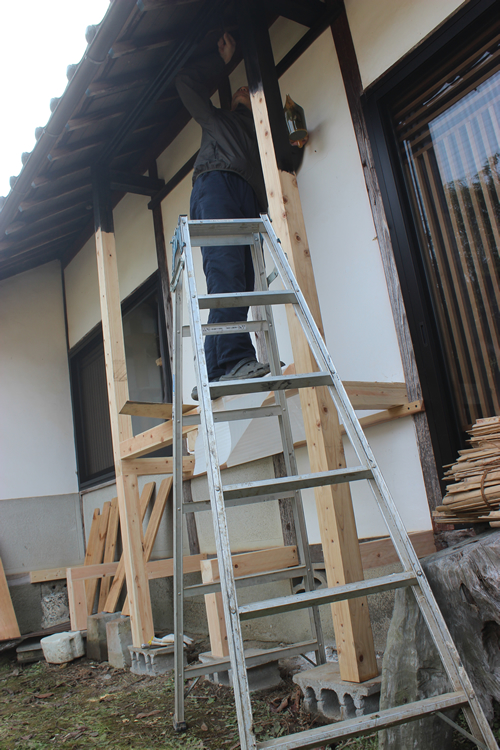 ここを展示スペースにしたことにより、本棚の上や近くの梁、2階窓開閉用の足場なども常に掃除しておく必要性が生じたことになる上、来客が安全に行き来できる手段(梯子は器物破損の観点から来客が扱うのは不可)をも考えなければならない。