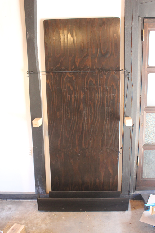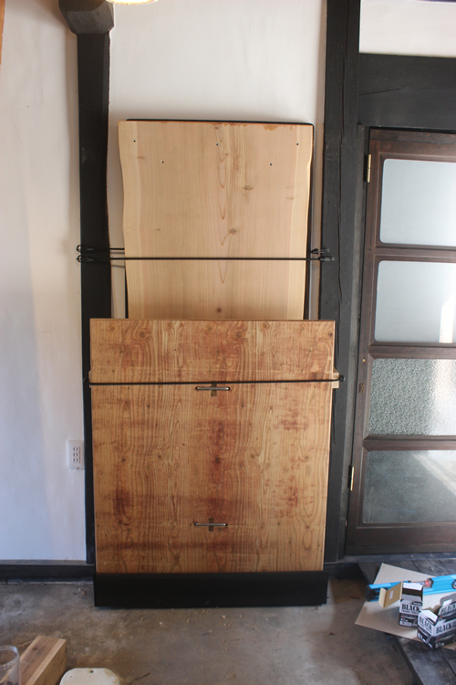 その他には、囲炉裏を使わないときや風の強い日に窓を開ける際に使う囲炉裏用のフタ(作成したときの記事はこちら)も、実際にフタをする機会はあまりないため、普段はどこか邪魔にならない置き場を確保しておきたい。
