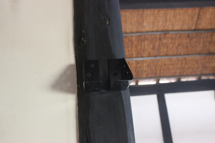 簡単にバラせるために必須なことは鴨居が取り外せることであり、そのための構造として作者が採用したのが、柱に金具を取り付けておいて鴨居はそれに載せるだけにするということだった。