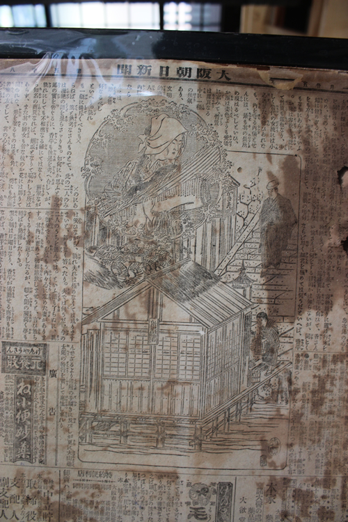 その報告を受けて上貼りを慎重にはがしてみると、下には明治28年当時の新聞が貼られていたことがわかり、完成時の見世物として使おうとここまで保管し続けてきたという経緯がある。