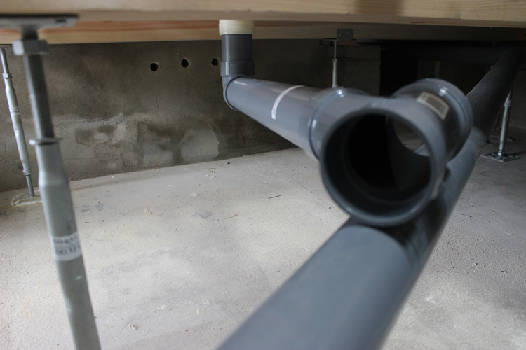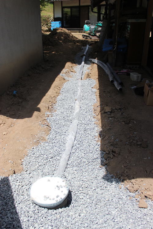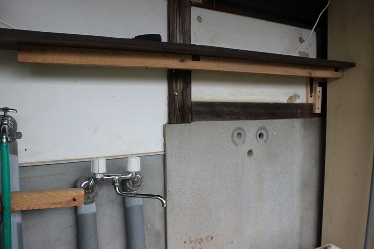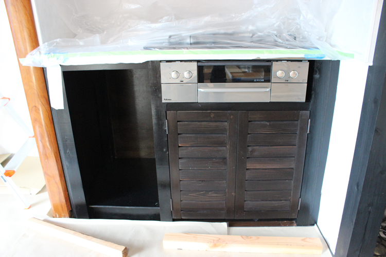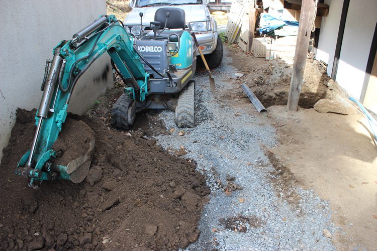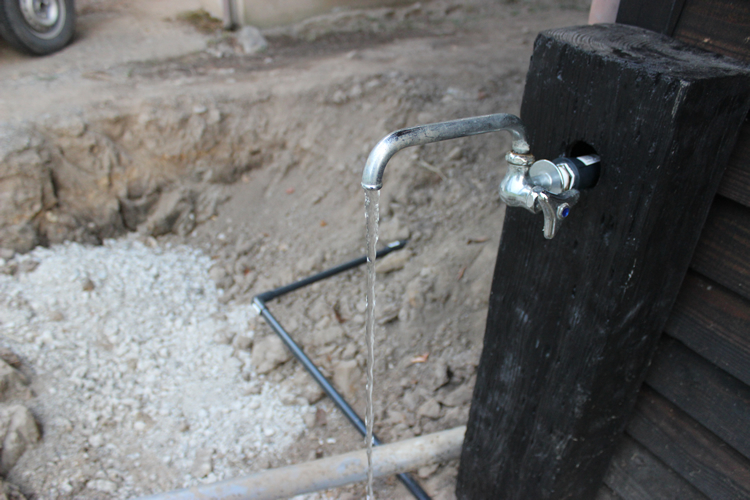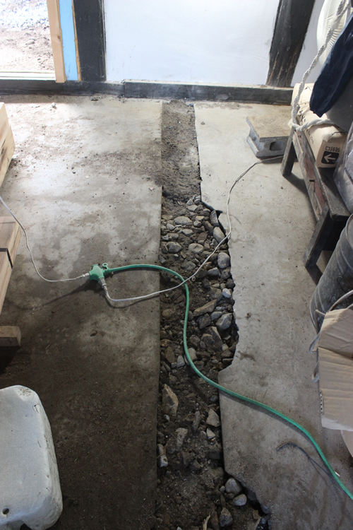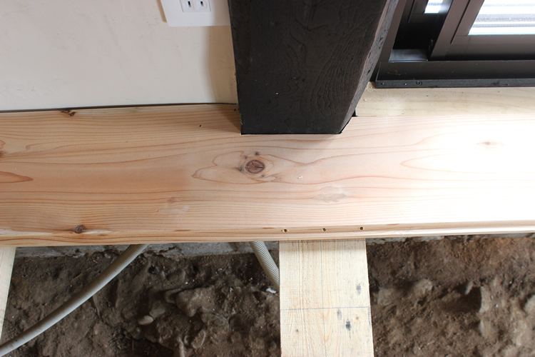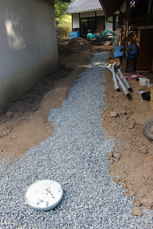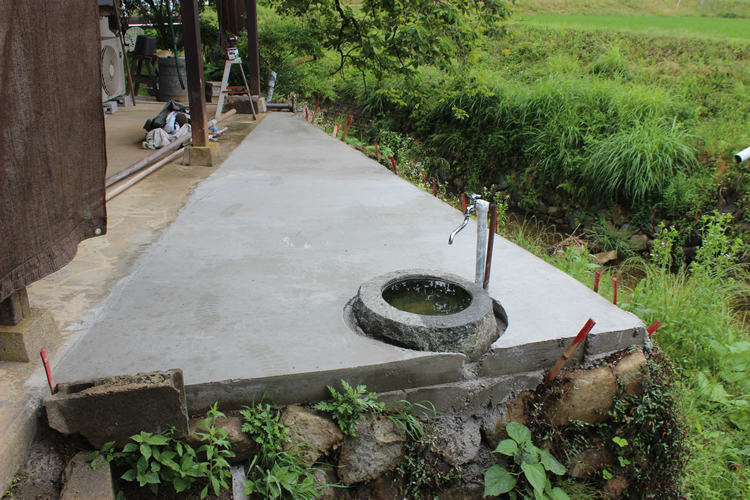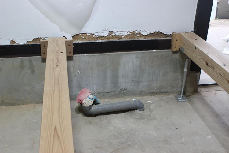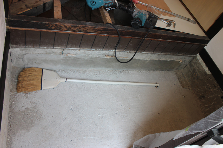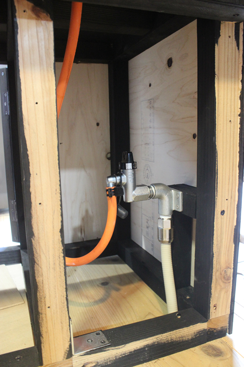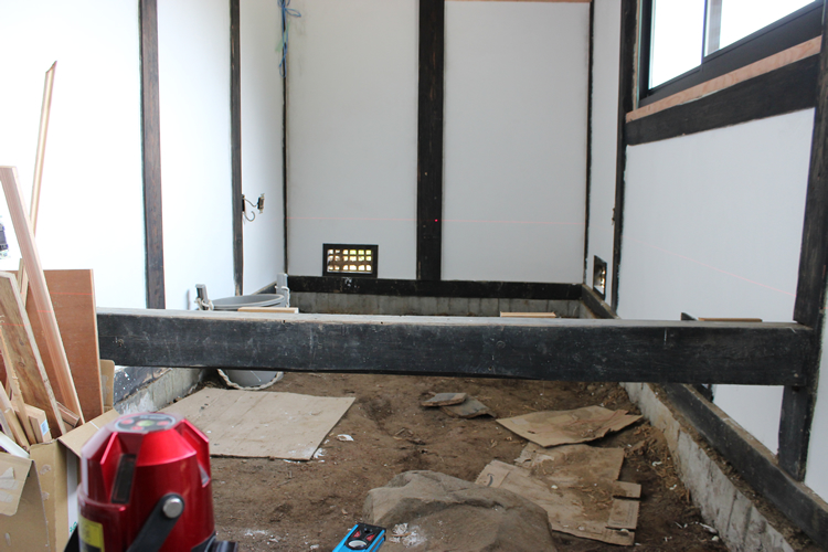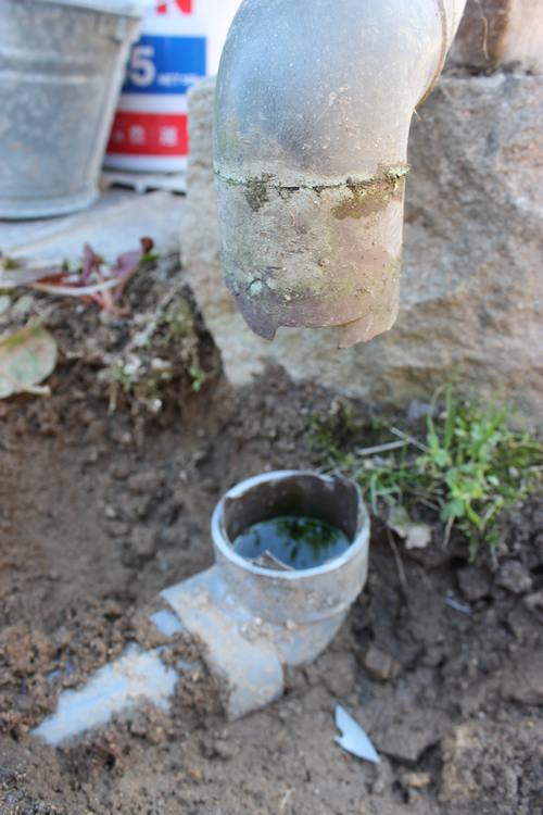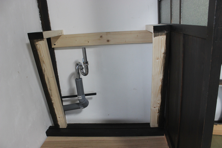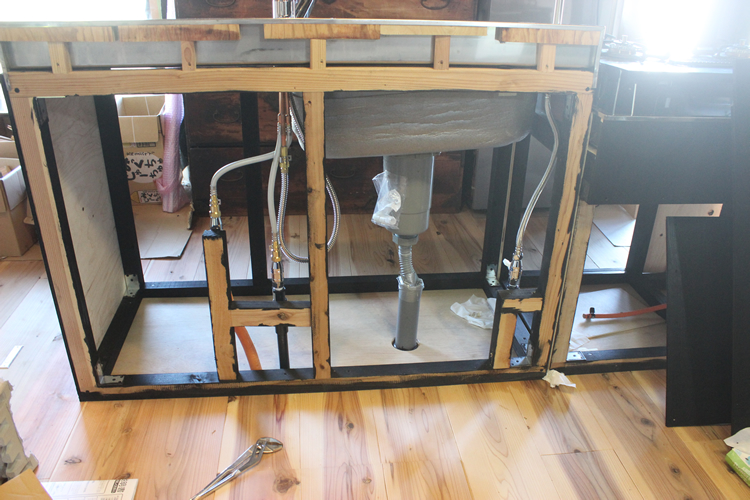 造り替えとなると前述の工程が必要となるが、穴を開け替えるというのは大変な作業で、ここがまだ何も手をつけていない土間の時期だったらまだしも、キッチン周り全てが完成してまだ綺麗な状態である今、それを行えば周囲が土とホコリで充満することになり、かつ残った穴を塞ぐための手間や材料が乾燥するまでの時間を考えると、かなり気が重たくなる作業をしなければならない。