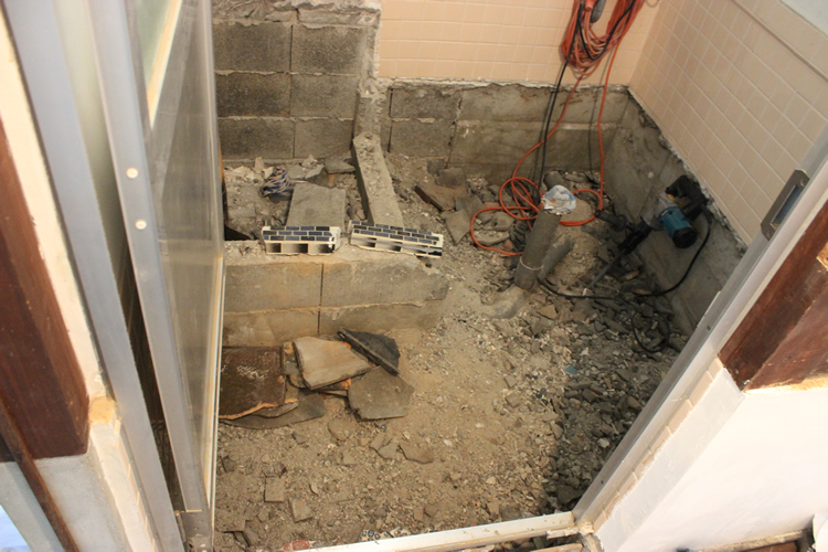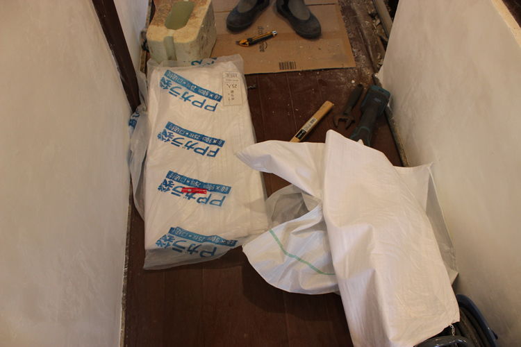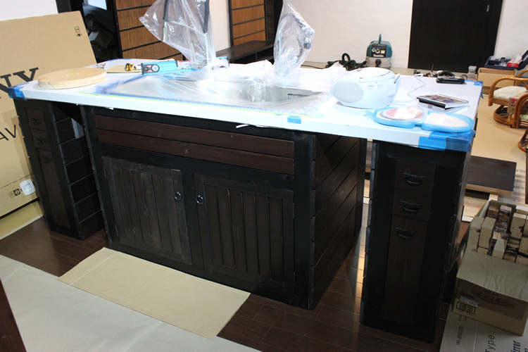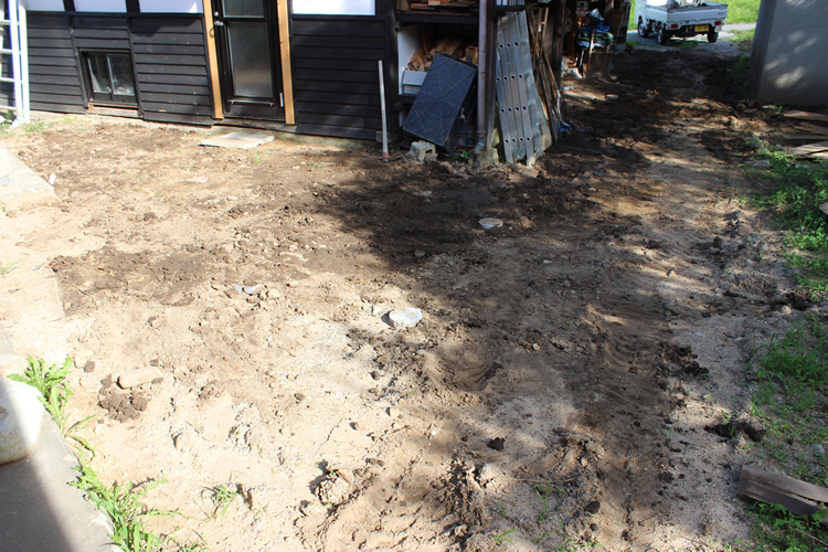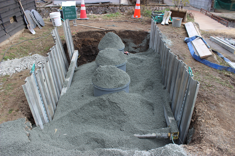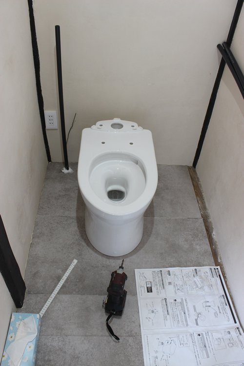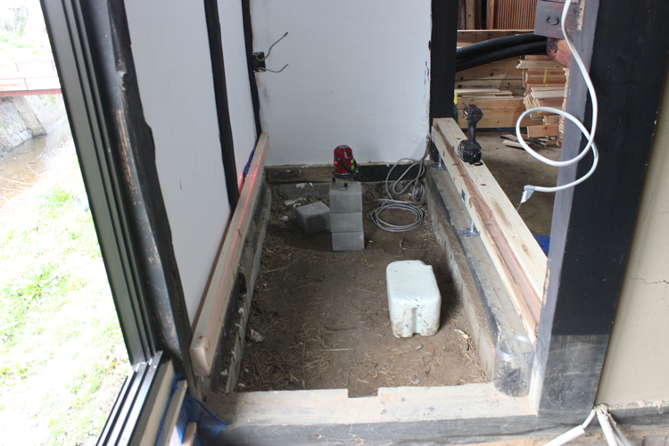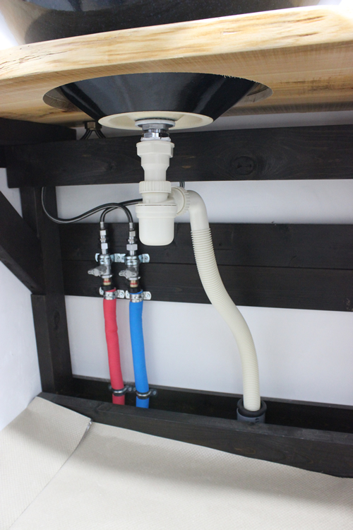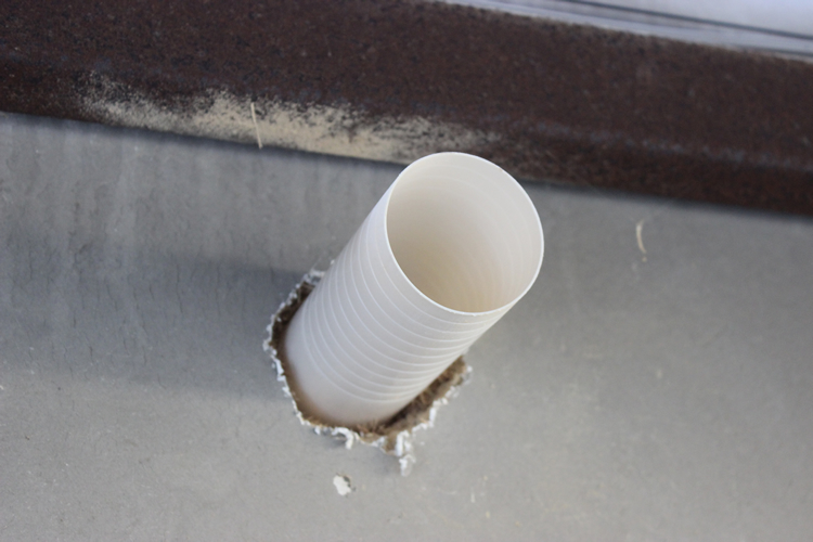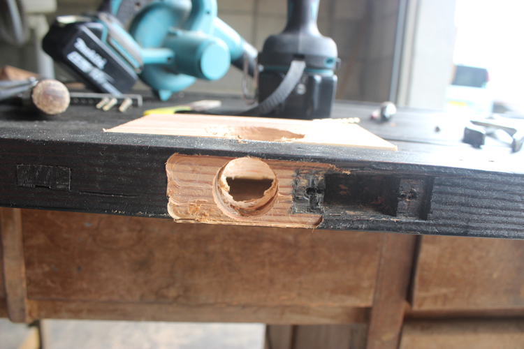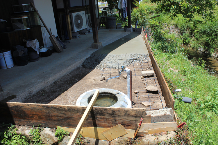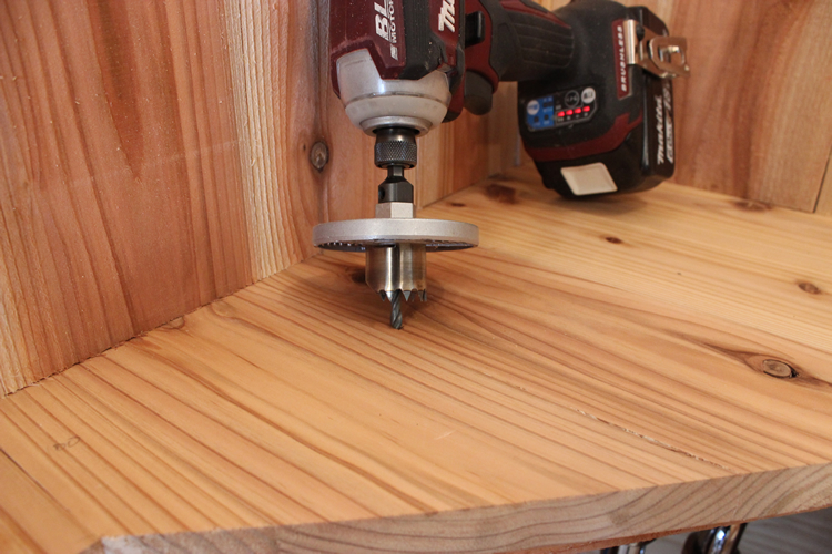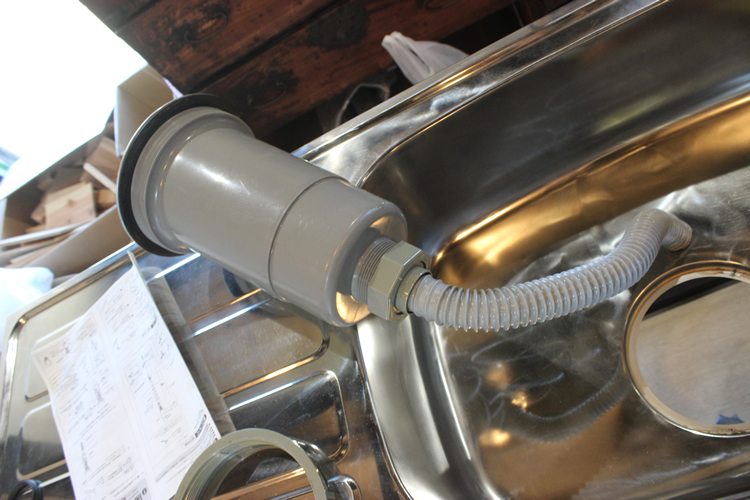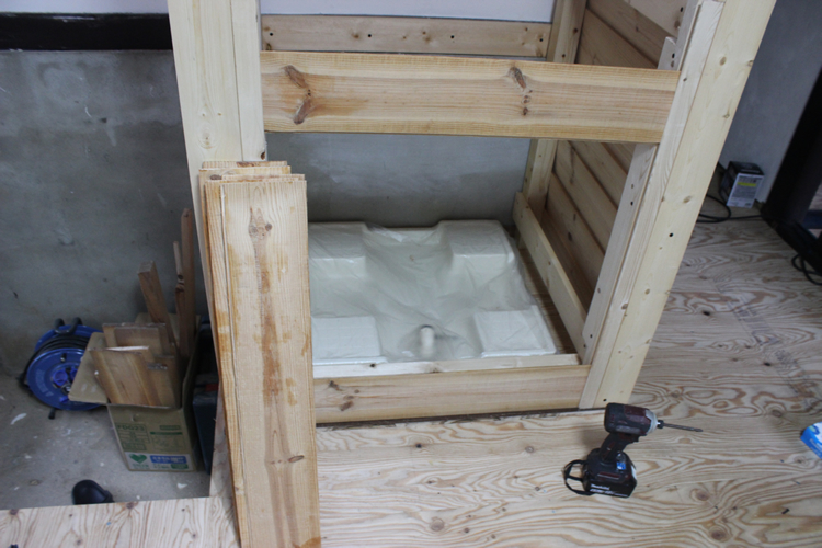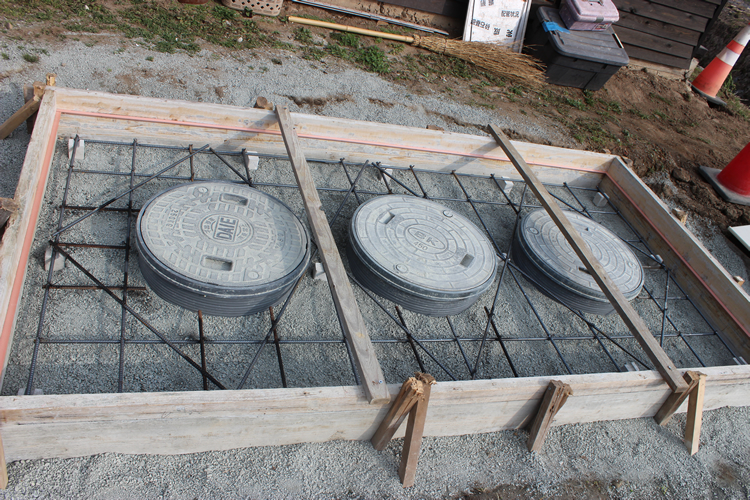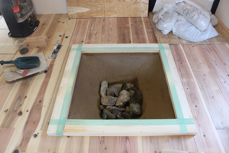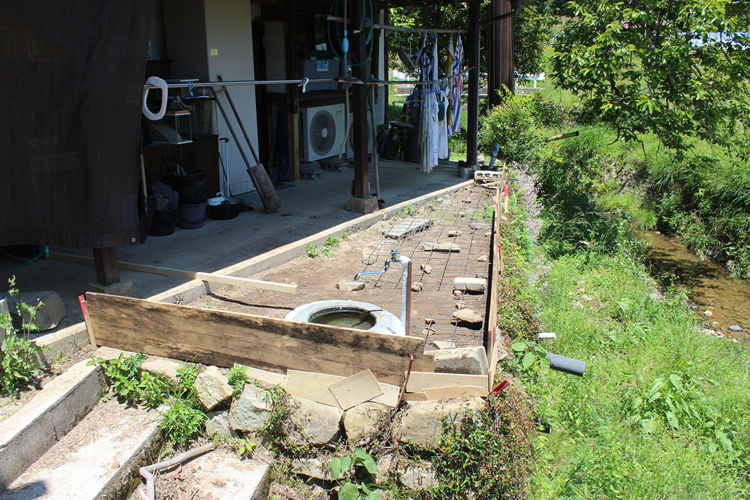 造り替えとなると前述の工程が必要となるが、穴を開け替えるというのは大変な作業で、ここがまだ何も手をつけていない土間の時期だったらまだしも、キッチン周り全てが完成してまだ綺麗な状態である今、それを行えば周囲が土とホコリで充満することになり、かつ残った穴を塞ぐための手間や材料が乾燥するまでの時間を考えると、かなり気が重たくなる作業をしなければならない。