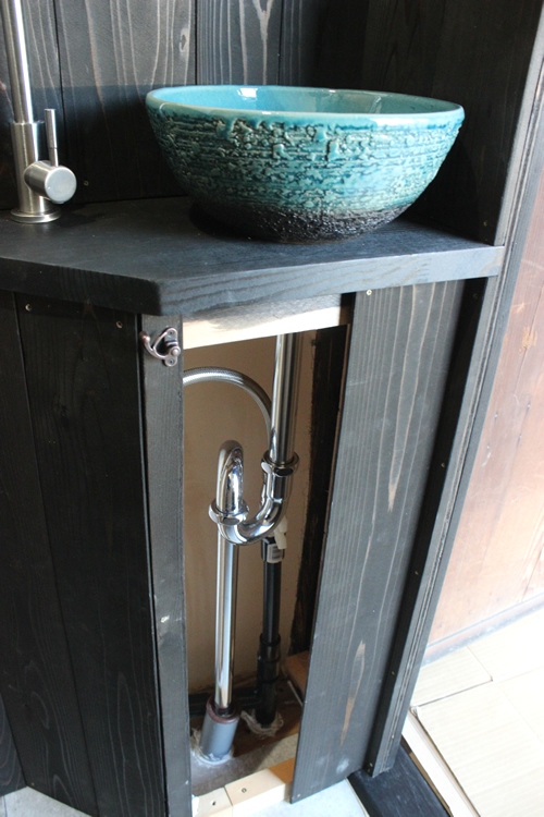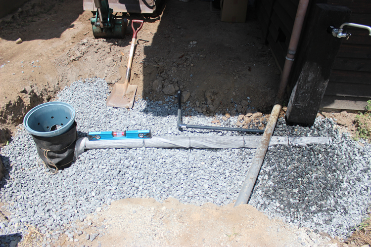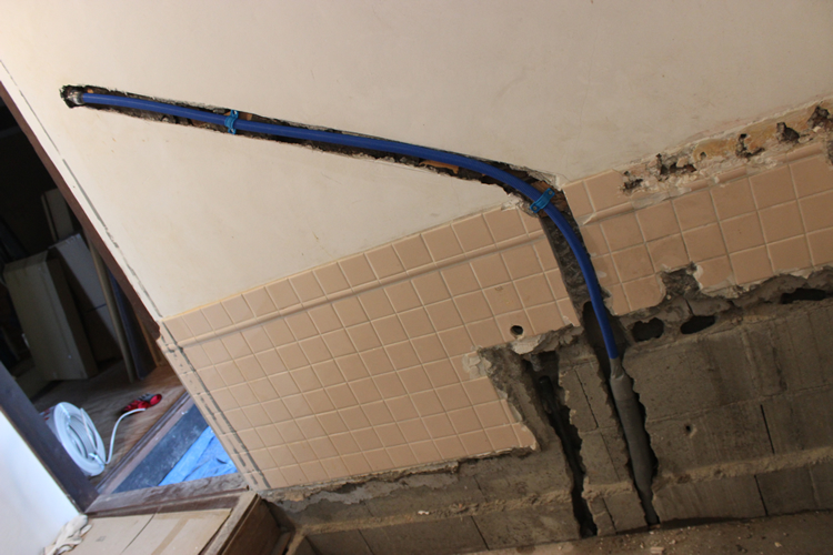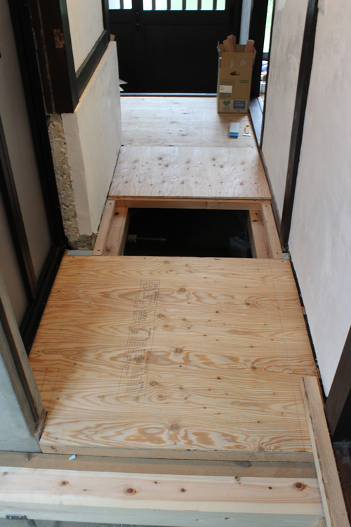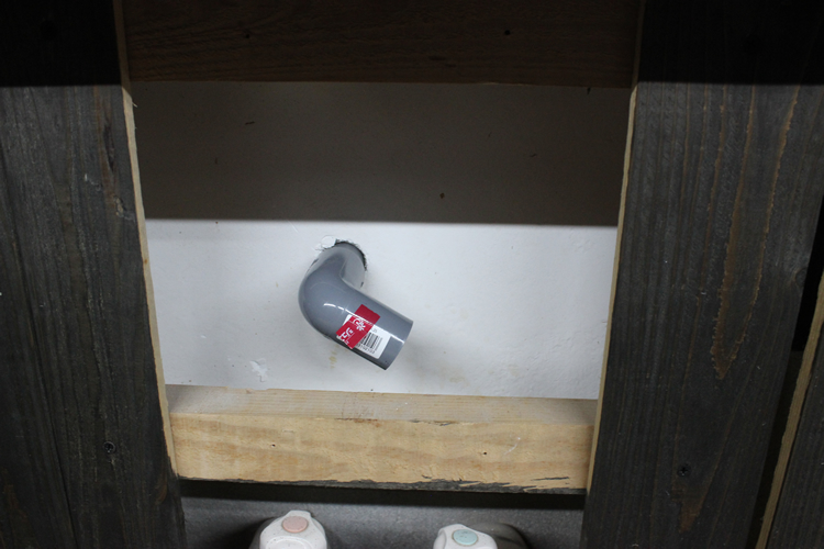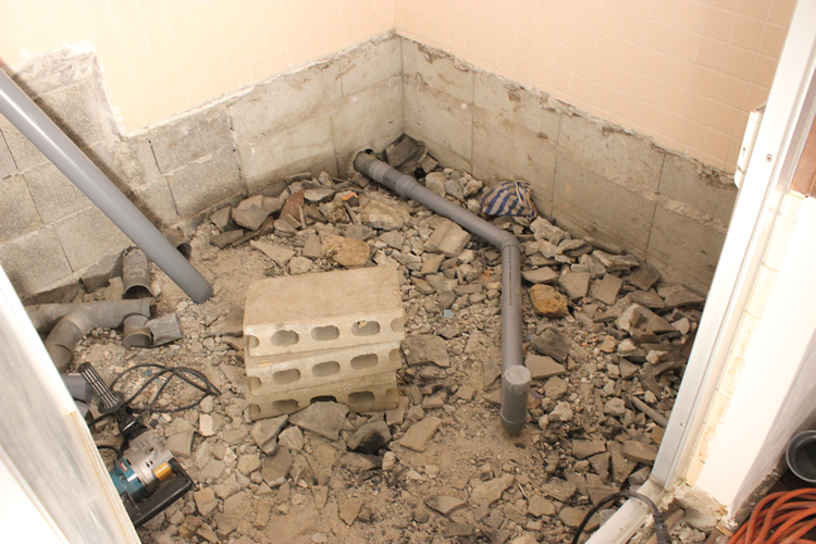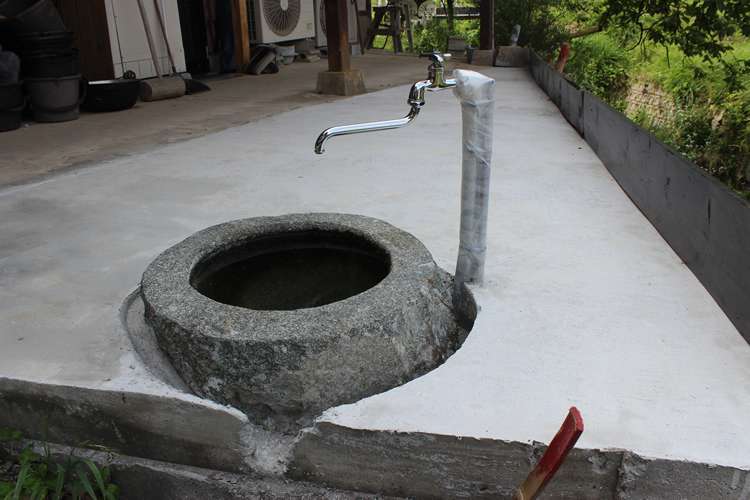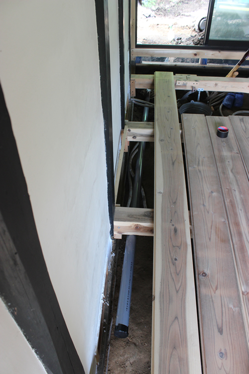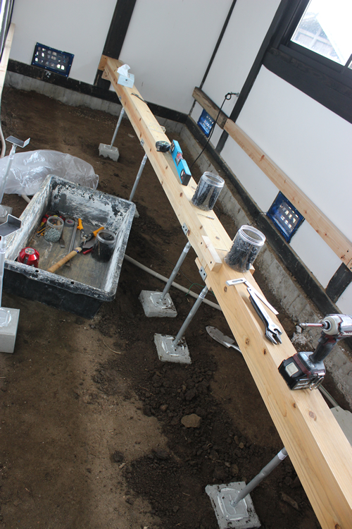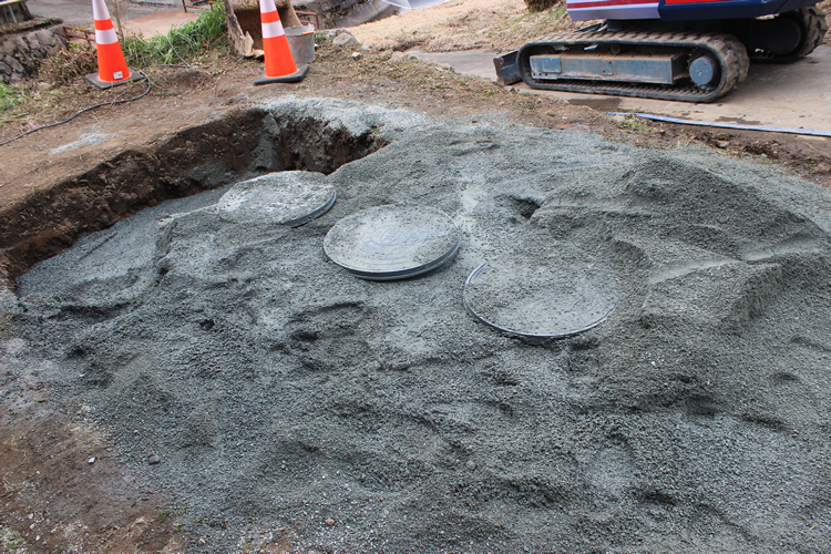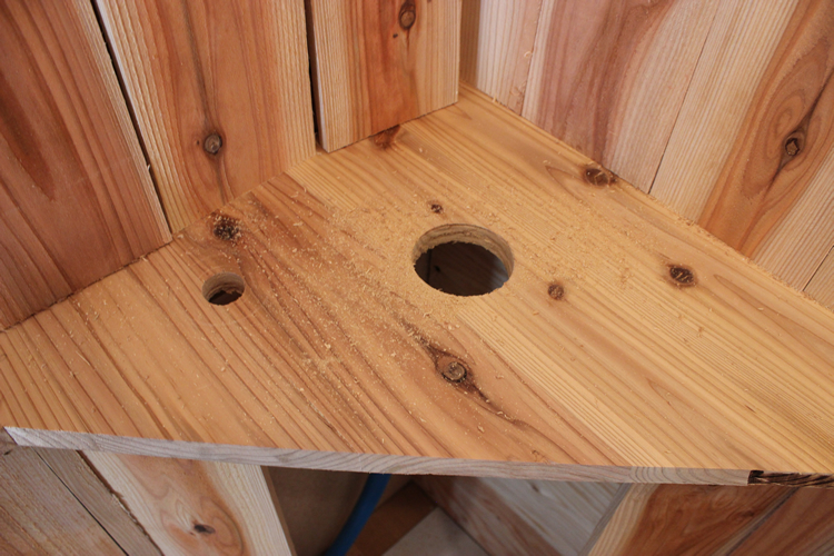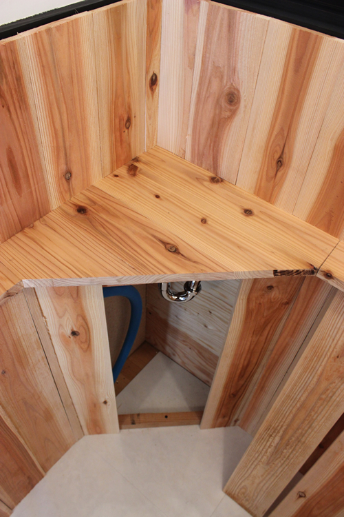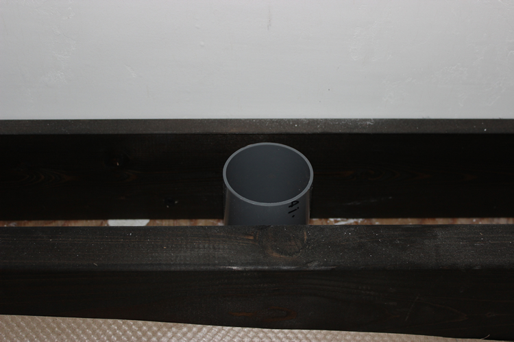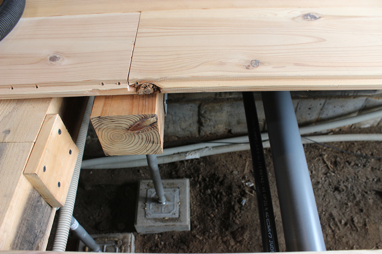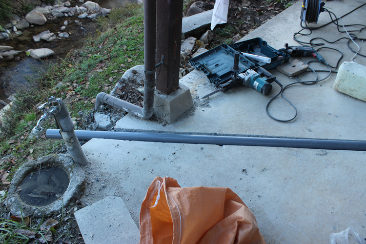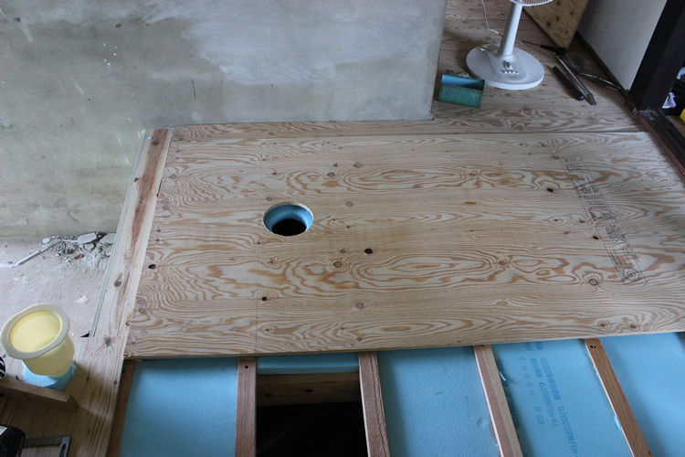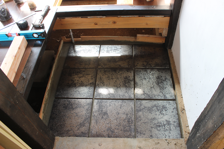造り替えとなると前述の工程が必要となるが、穴を開け替えるというのは大変な作業で、ここがまだ何も手をつけていない土間の時期だったらまだしも、キッチン周り全てが完成してまだ綺麗な状態である今、それを行えば周囲が土とホコリで充満することになり、かつ残った穴を塞ぐための手間や材料が乾燥するまでの時間を考えると、かなり気が重たくなる作業をしなければならない。