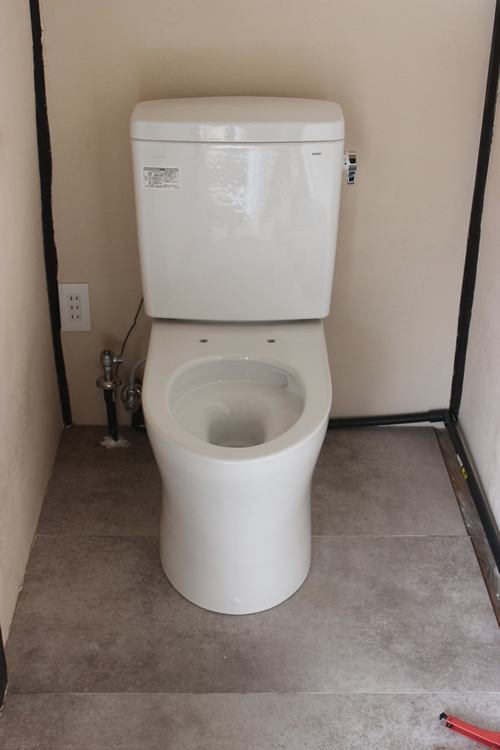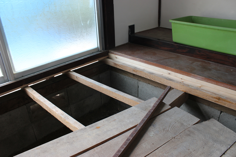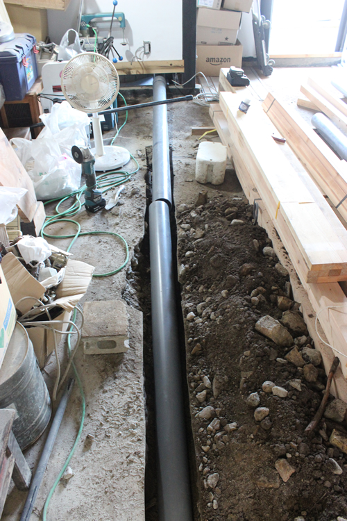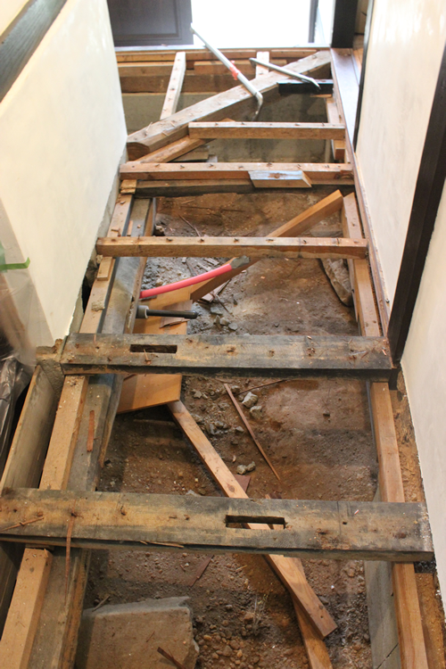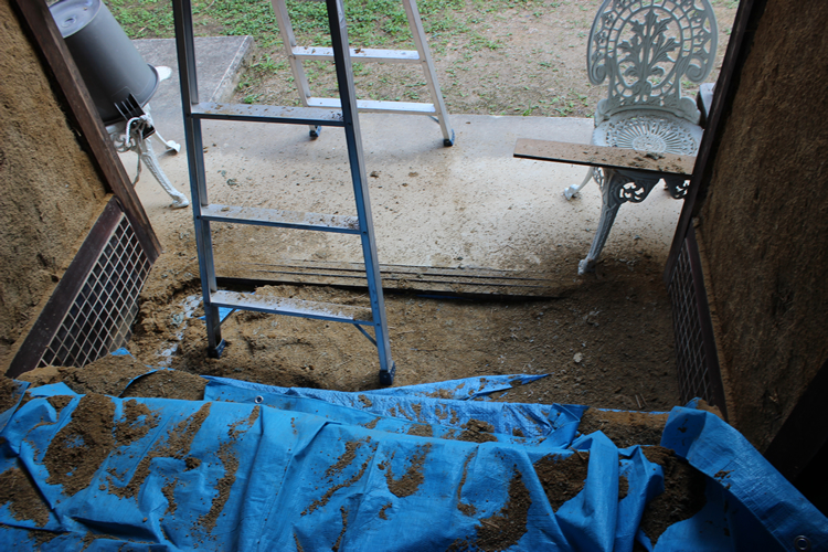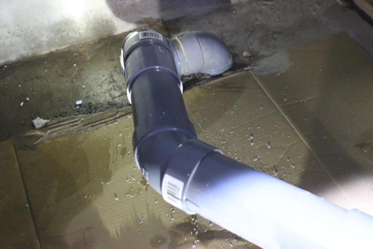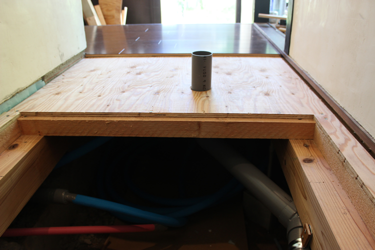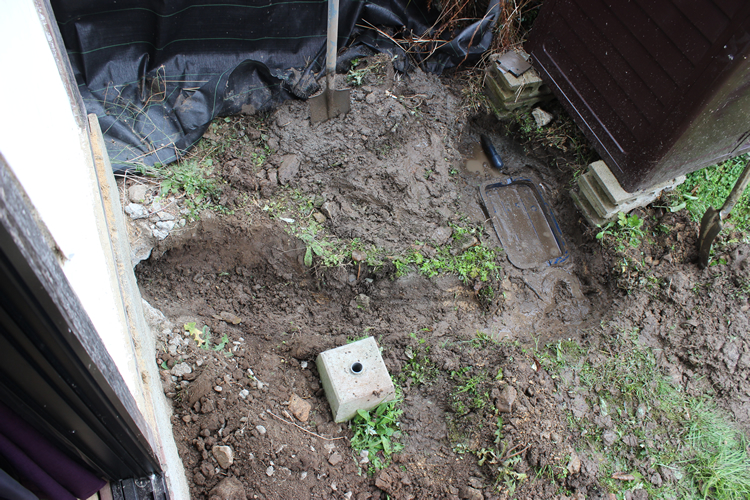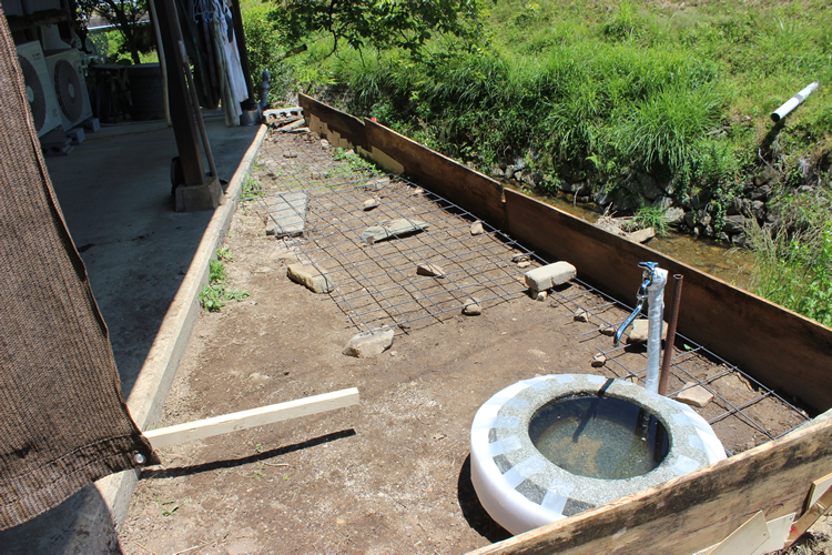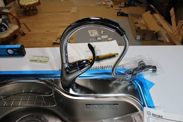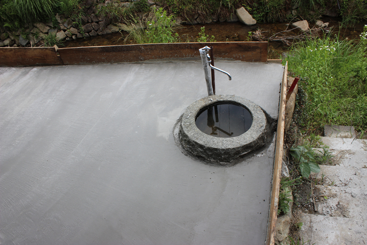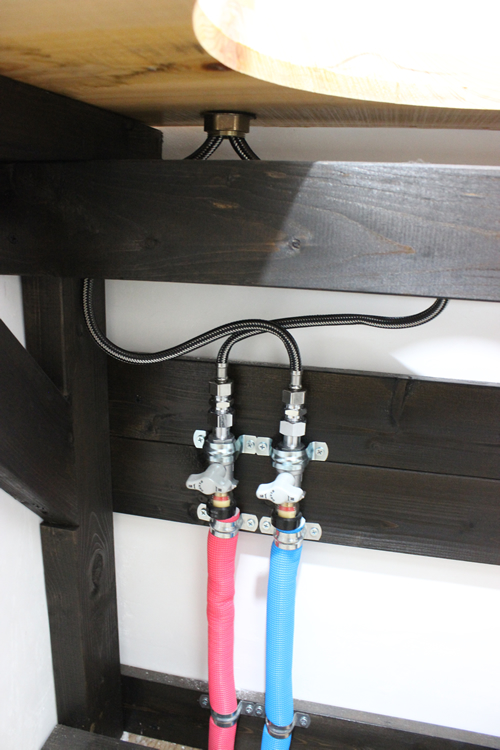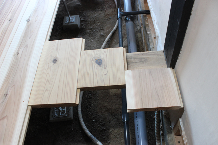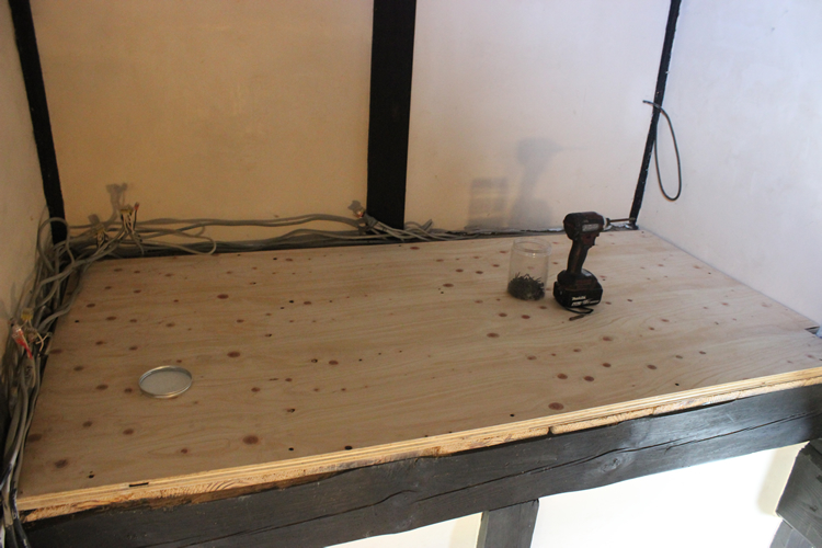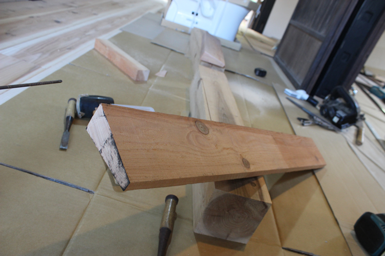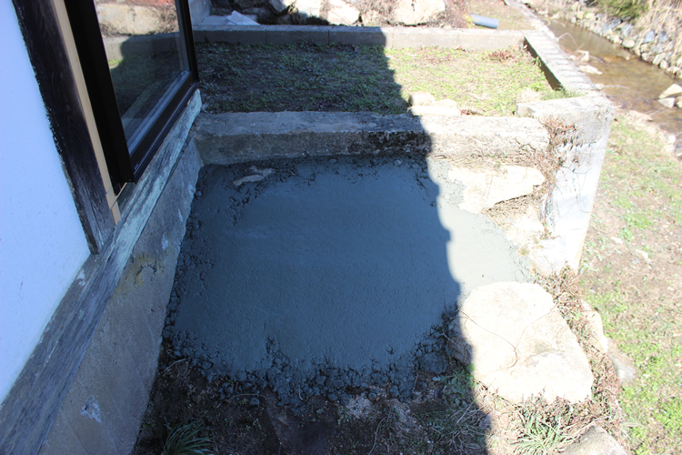 造り替えとなると前述の工程が必要となるが、穴を開け替えるというのは大変な作業で、ここがまだ何も手をつけていない土間の時期だったらまだしも、キッチン周り全てが完成してまだ綺麗な状態である今、それを行えば周囲が土とホコリで充満することになり、かつ残った穴を塞ぐための手間や材料が乾燥するまでの時間を考えると、かなり気が重たくなる作業をしなければならない。