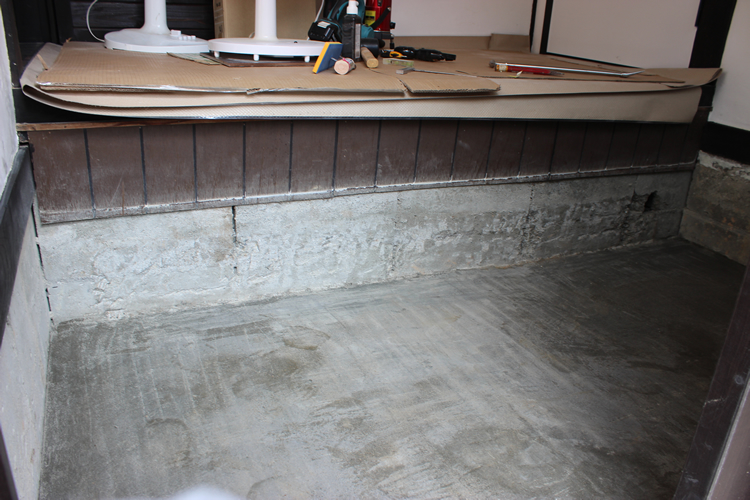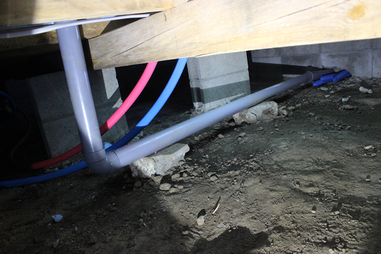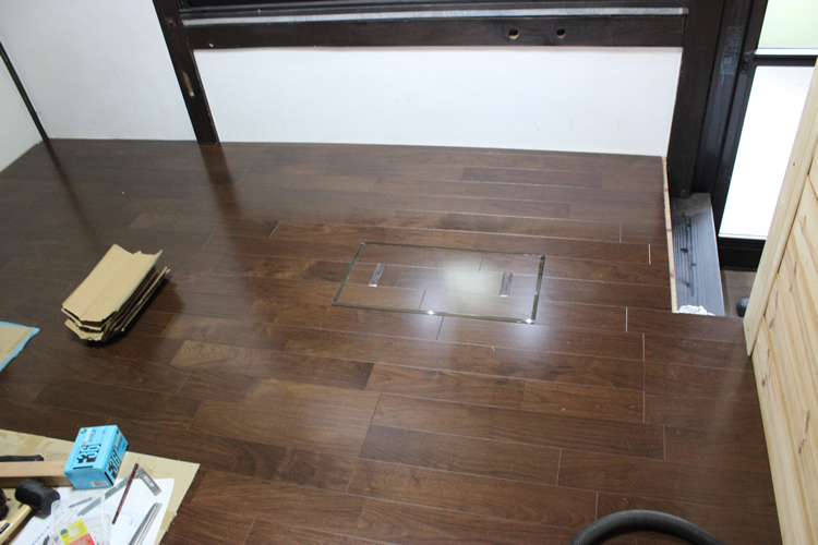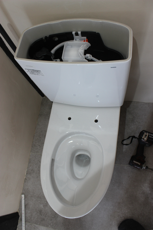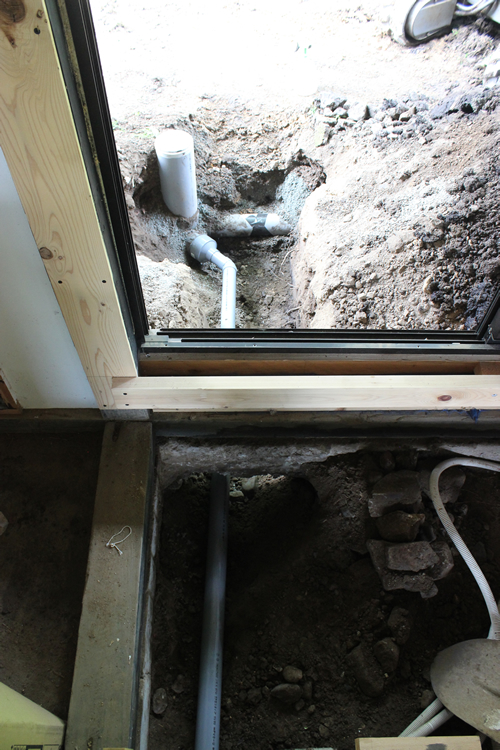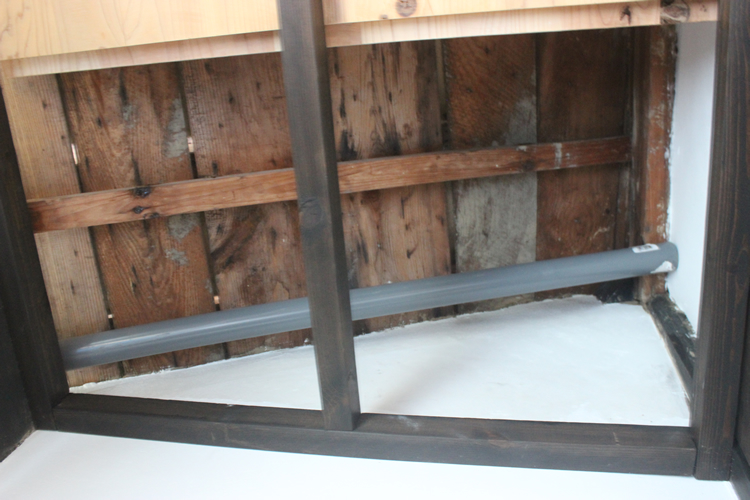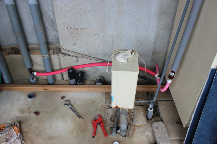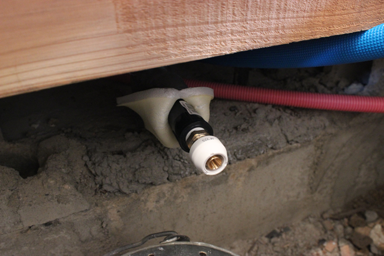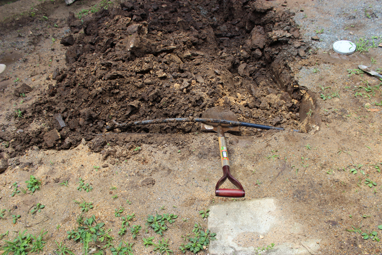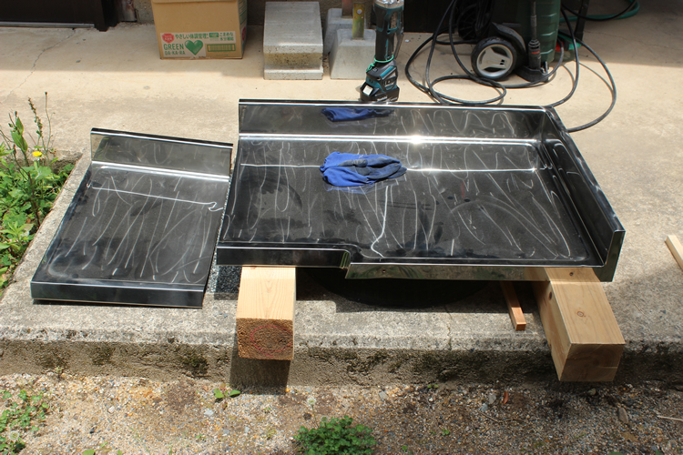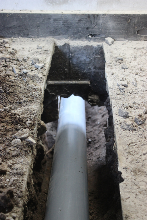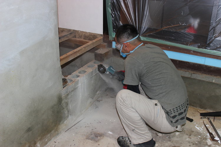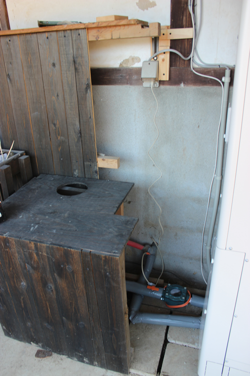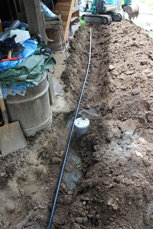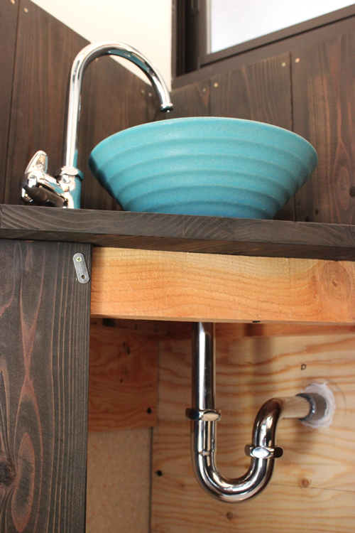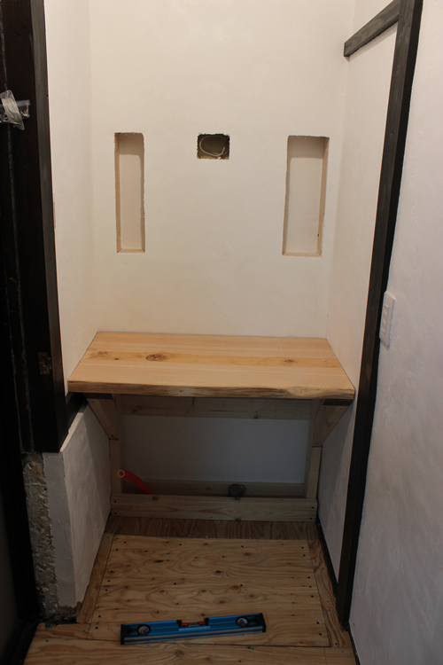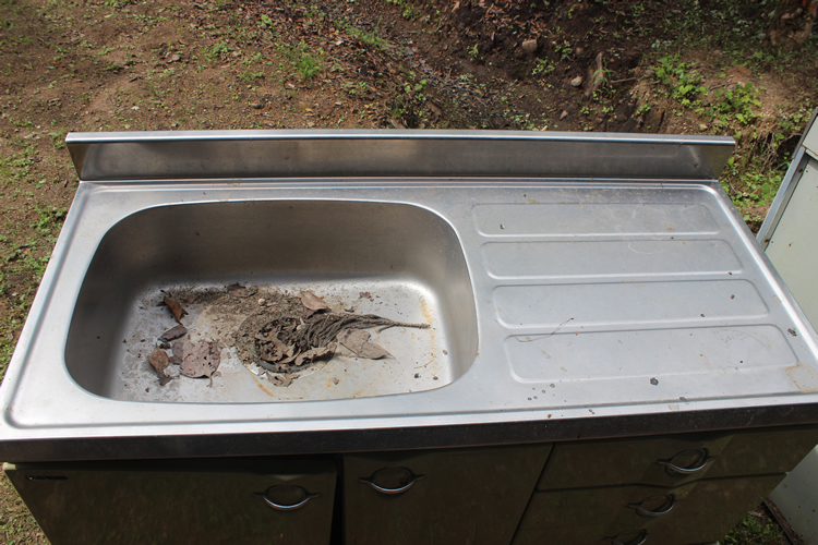 造り替えとなると前述の工程が必要となるが、穴を開け替えるというのは大変な作業で、ここがまだ何も手をつけていない土間の時期だったらまだしも、キッチン周り全てが完成してまだ綺麗な状態である今、それを行えば周囲が土とホコリで充満することになり、かつ残った穴を塞ぐための手間や材料が乾燥するまでの時間を考えると、かなり気が重たくなる作業をしなければならない。