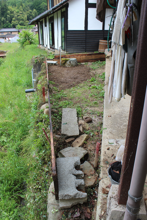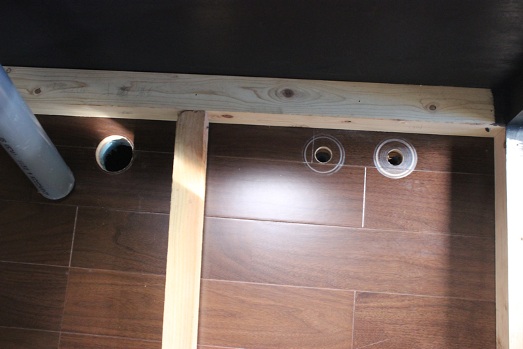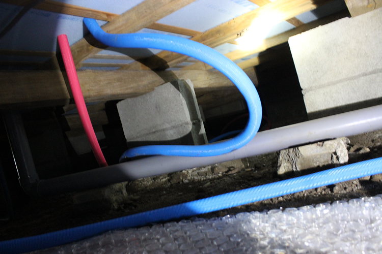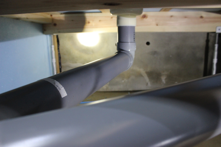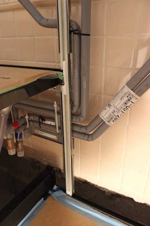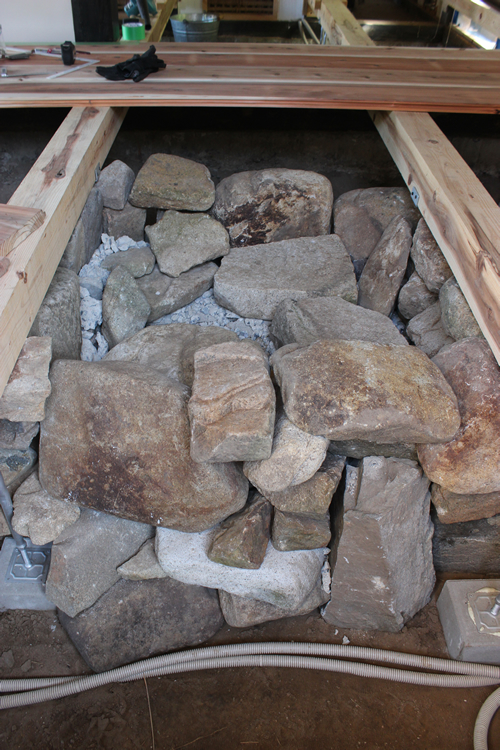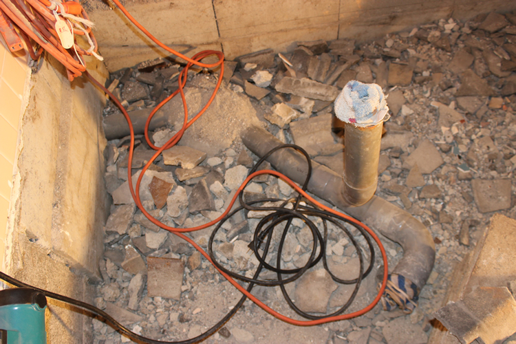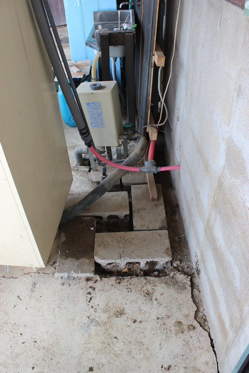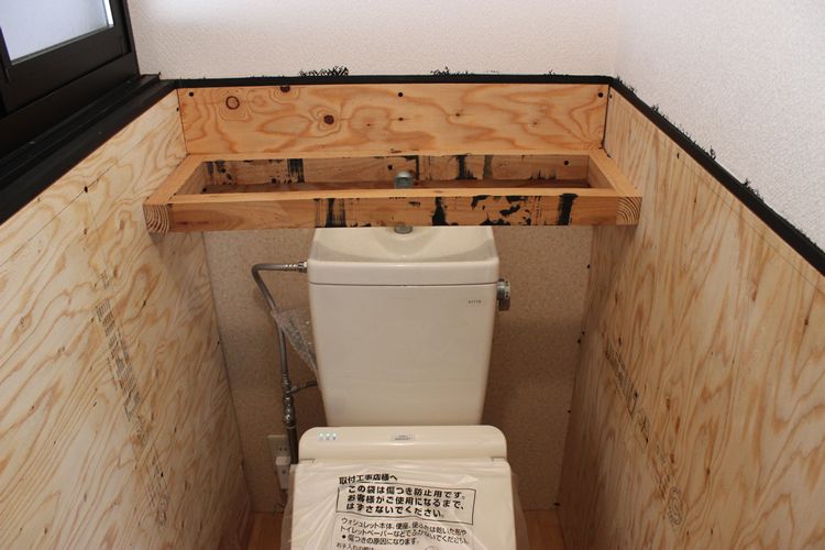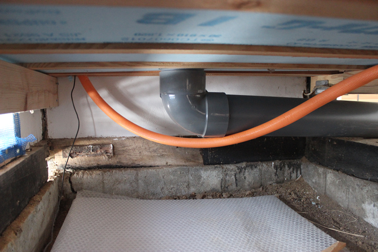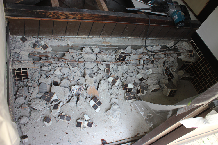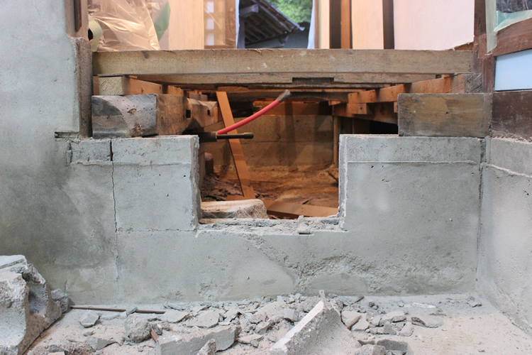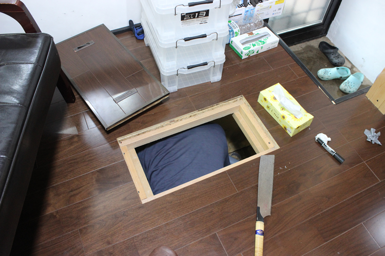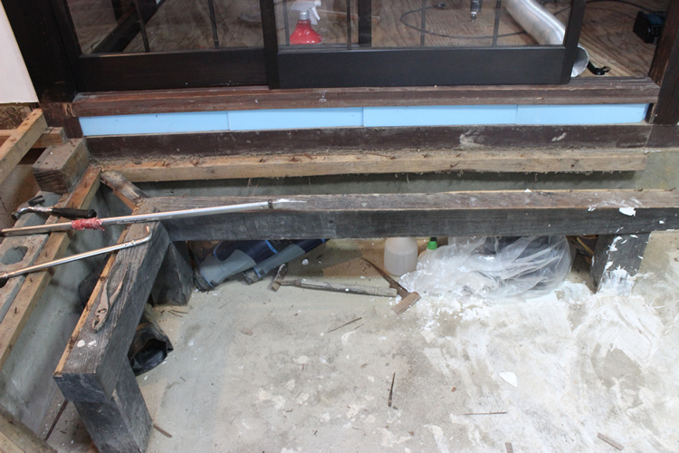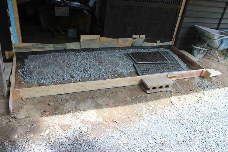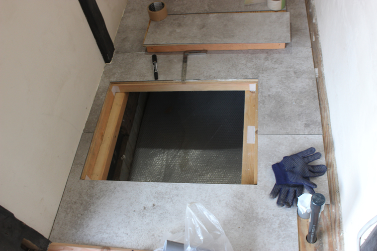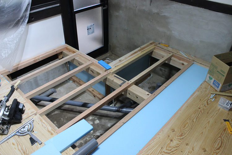 造り替えとなると前述の工程が必要となるが、穴を開け替えるというのは大変な作業で、ここがまだ何も手をつけていない土間の時期だったらまだしも、キッチン周り全てが完成してまだ綺麗な状態である今、それを行えば周囲が土とホコリで充満することになり、かつ残った穴を塞ぐための手間や材料が乾燥するまでの時間を考えると、かなり気が重たくなる作業をしなければならない。