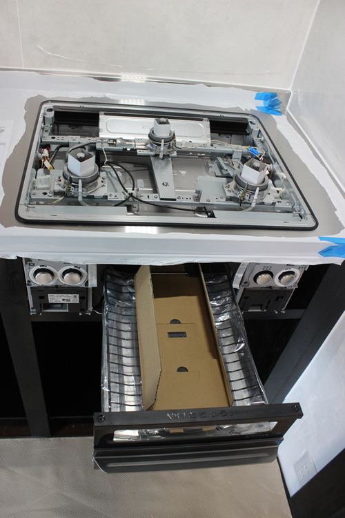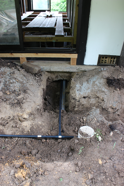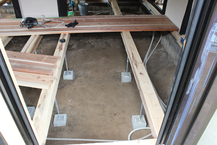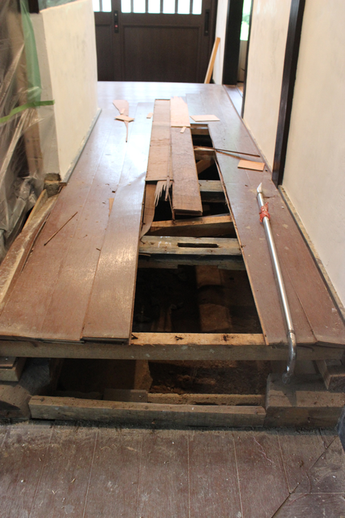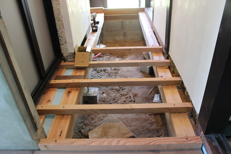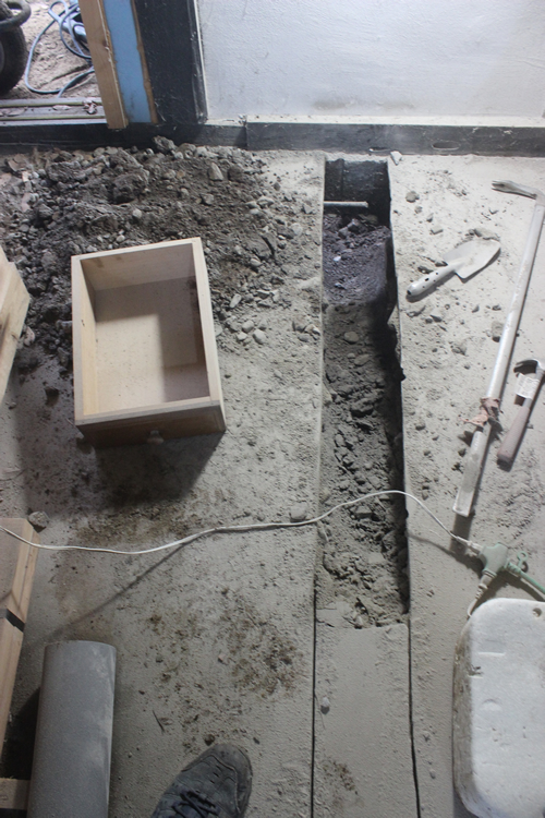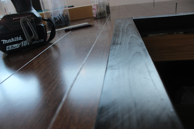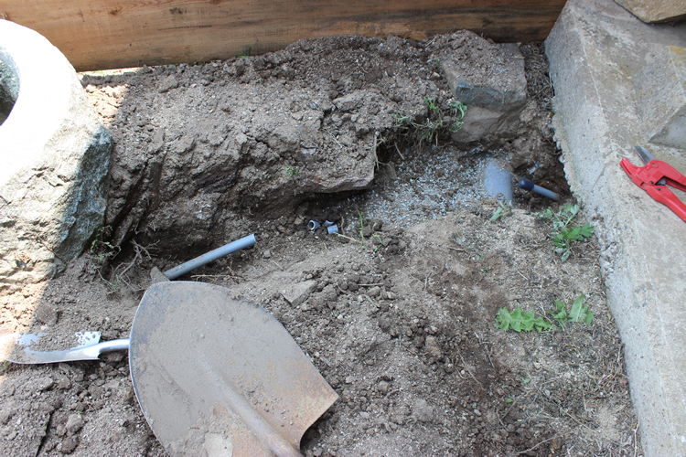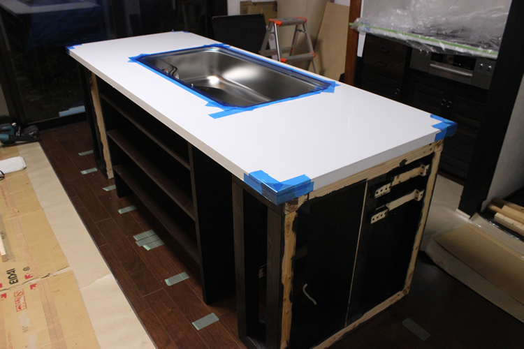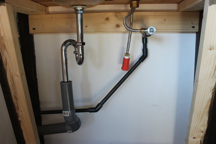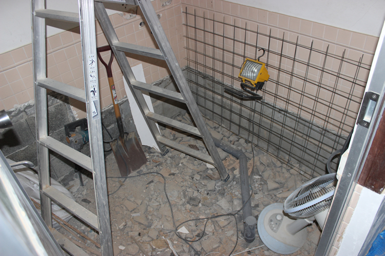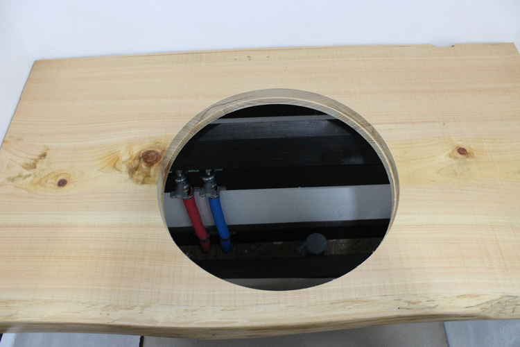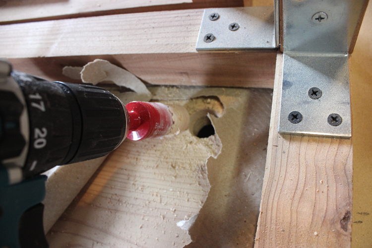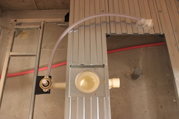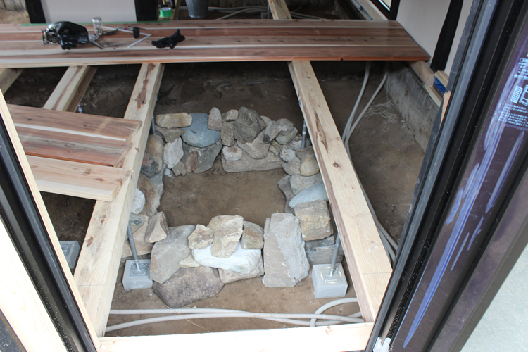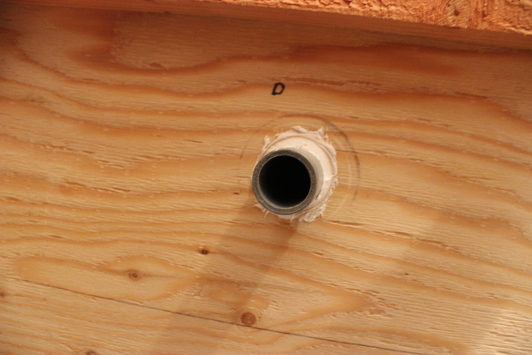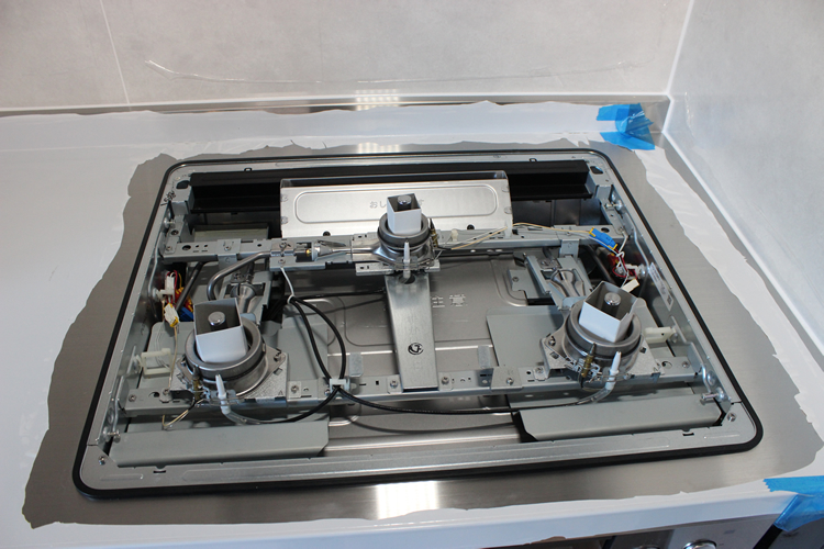 造り替えとなると前述の工程が必要となるが、穴を開け替えるというのは大変な作業で、ここがまだ何も手をつけていない土間の時期だったらまだしも、キッチン周り全てが完成してまだ綺麗な状態である今、それを行えば周囲が土とホコリで充満することになり、かつ残った穴を塞ぐための手間や材料が乾燥するまでの時間を考えると、かなり気が重たくなる作業をしなければならない。