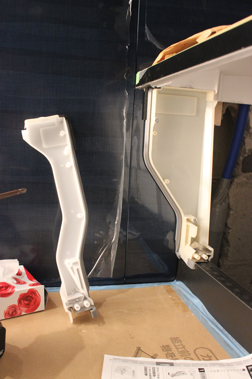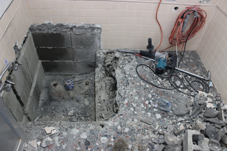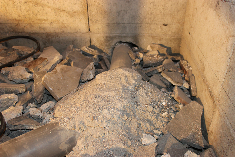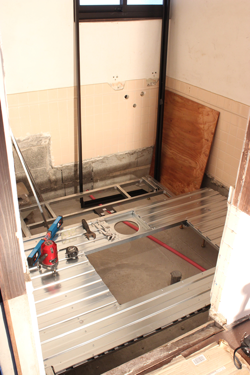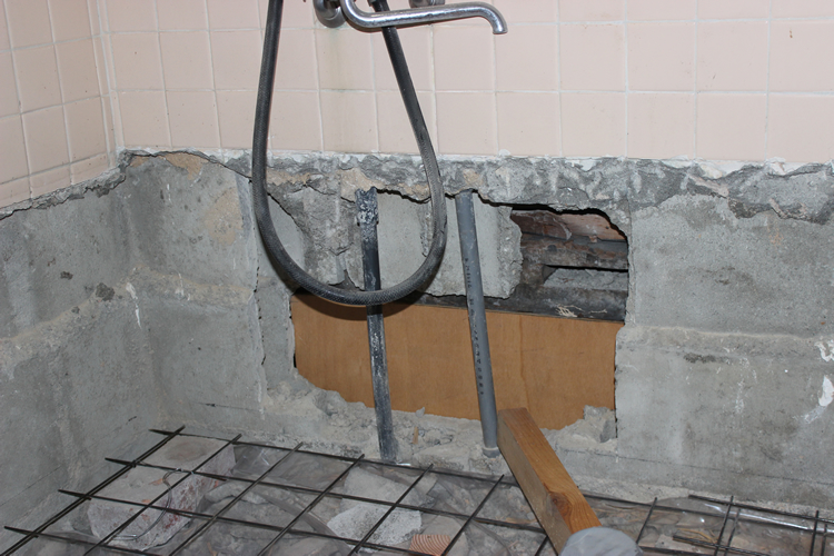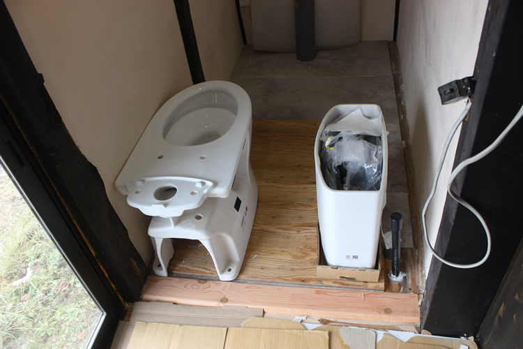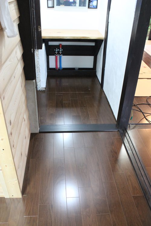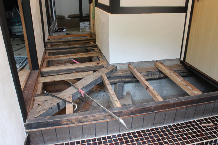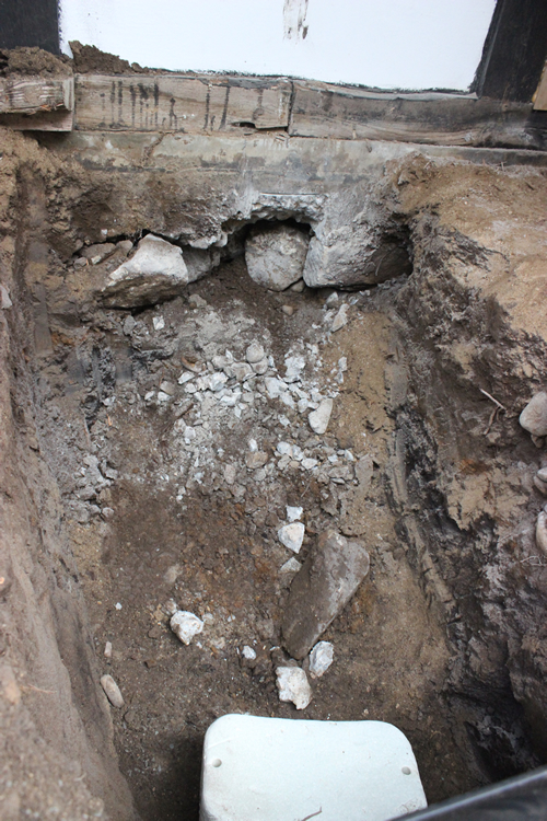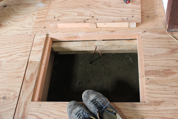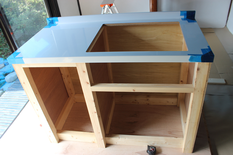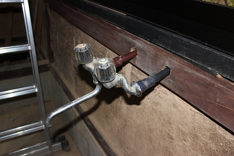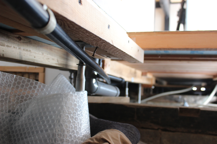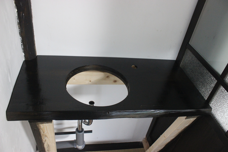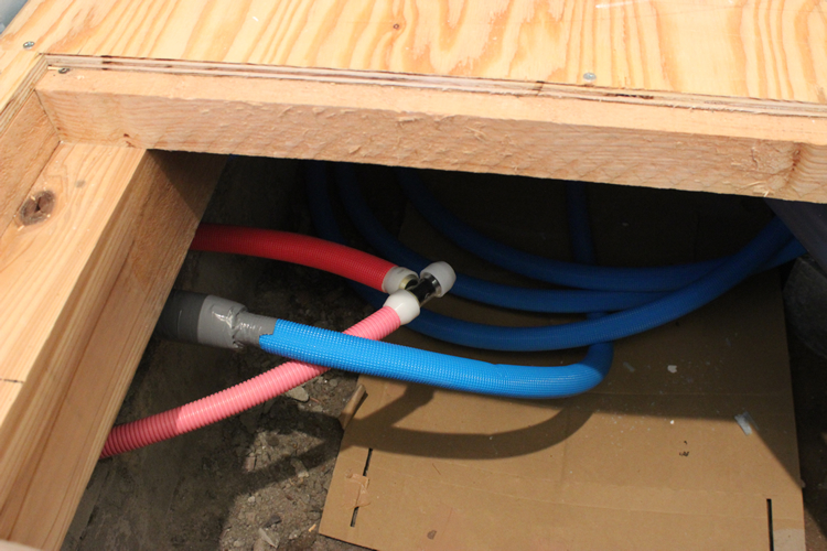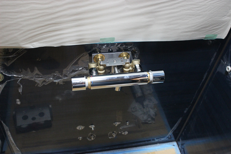 造り替えとなると前述の工程が必要となるが、穴を開け替えるというのは大変な作業で、ここがまだ何も手をつけていない土間の時期だったらまだしも、キッチン周り全てが完成してまだ綺麗な状態である今、それを行えば周囲が土とホコリで充満することになり、かつ残った穴を塞ぐための手間や材料が乾燥するまでの時間を考えると、かなり気が重たくなる作業をしなければならない。