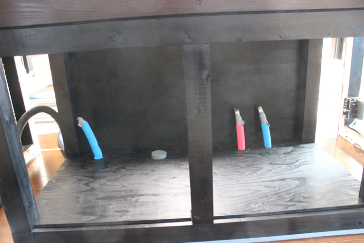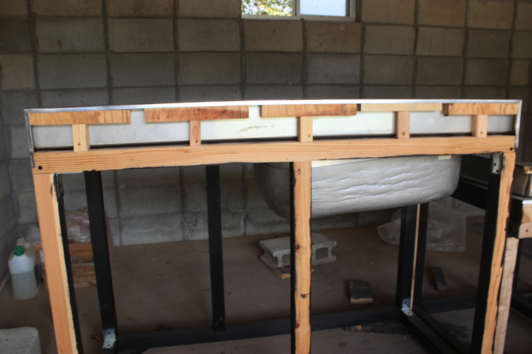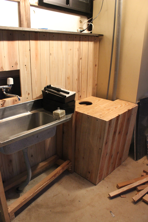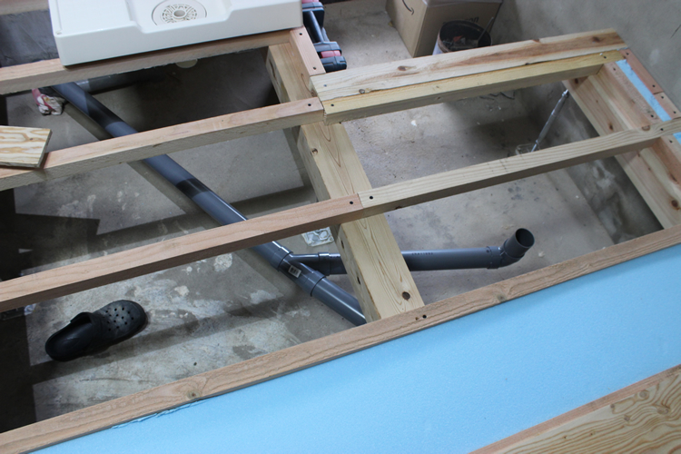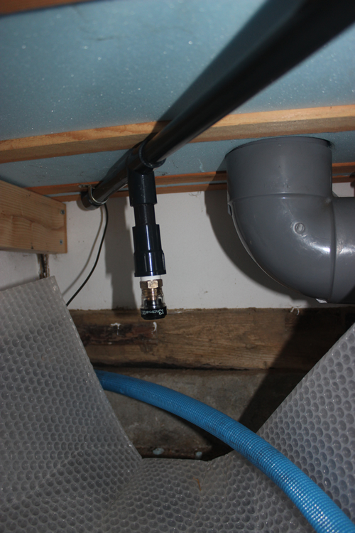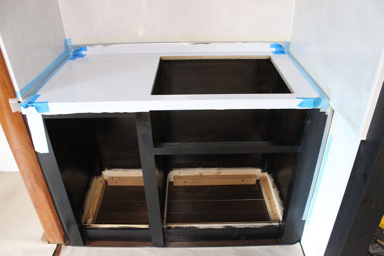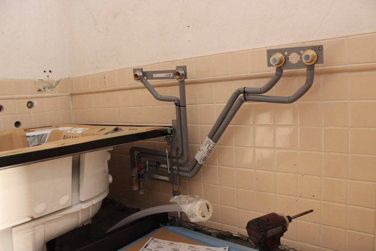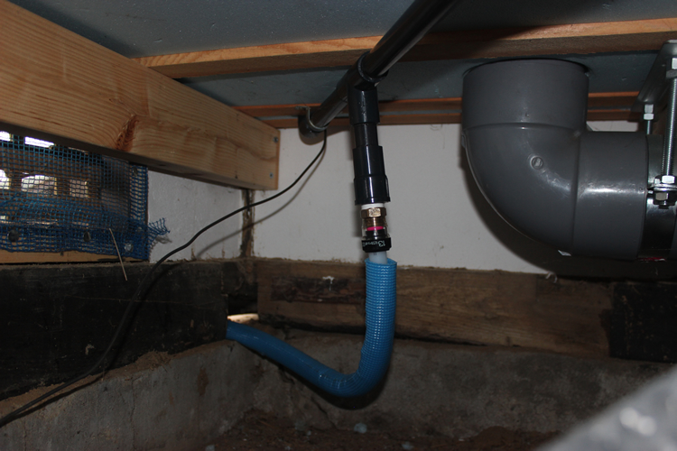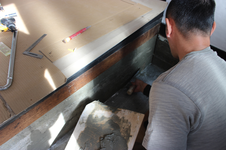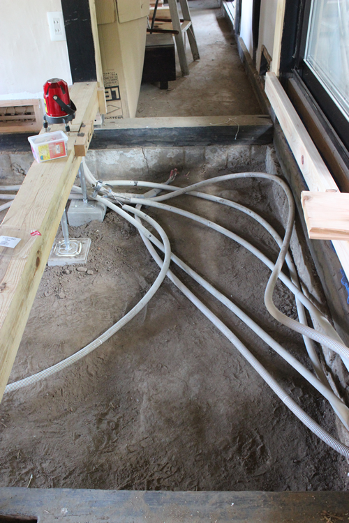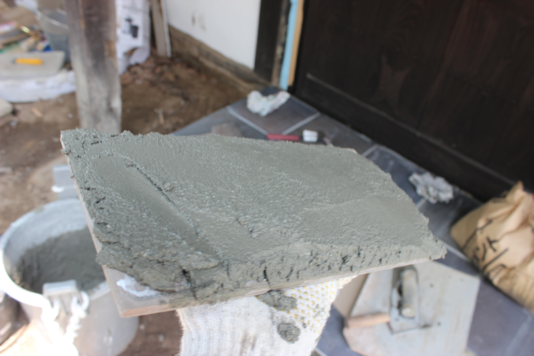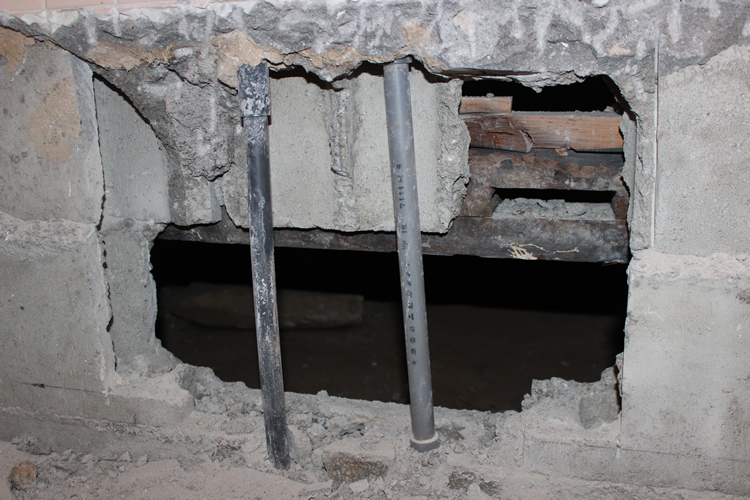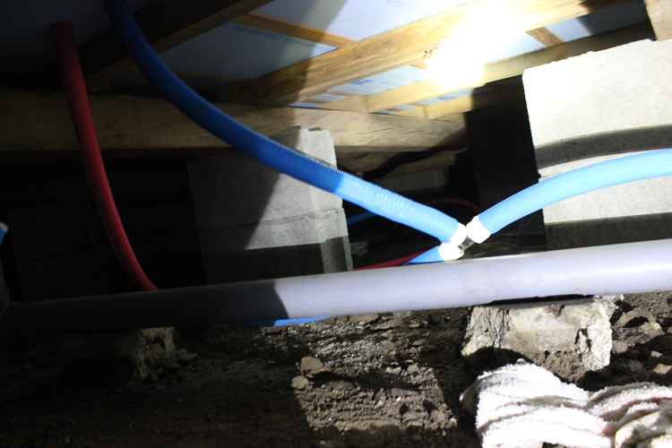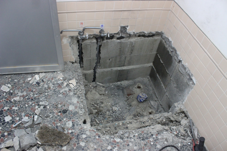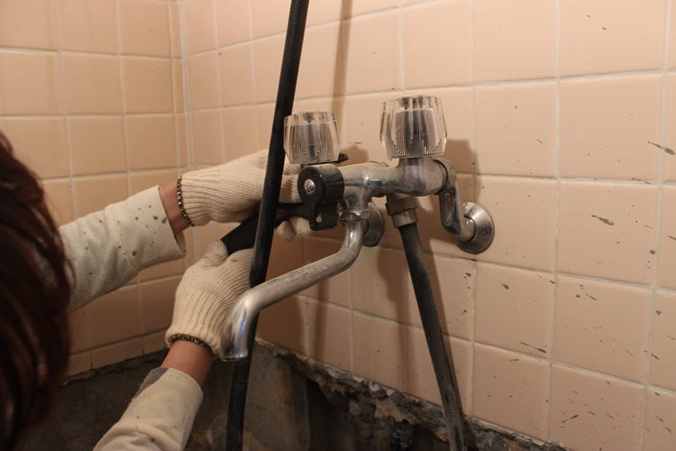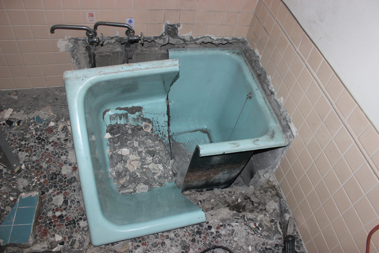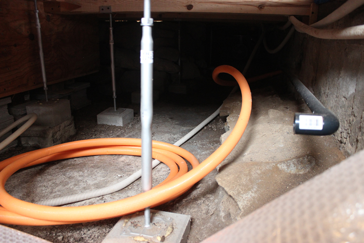 造り替えとなると前述の工程が必要となるが、穴を開け替えるというのは大変な作業で、ここがまだ何も手をつけていない土間の時期だったらまだしも、キッチン周り全てが完成してまだ綺麗な状態である今、それを行えば周囲が土とホコリで充満することになり、かつ残った穴を塞ぐための手間や材料が乾燥するまでの時間を考えると、かなり気が重たくなる作業をしなければならない。
