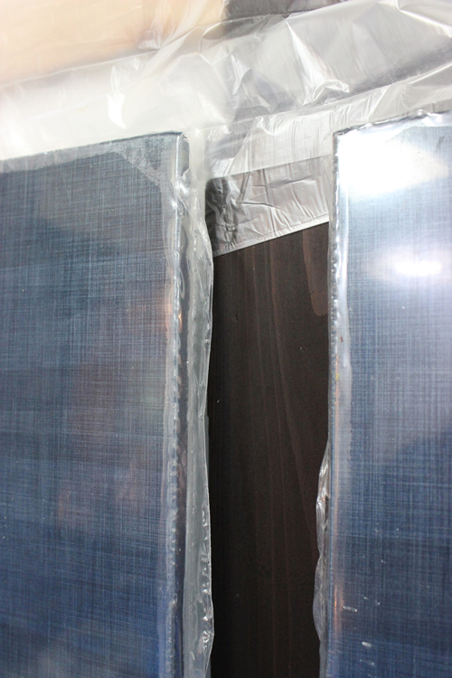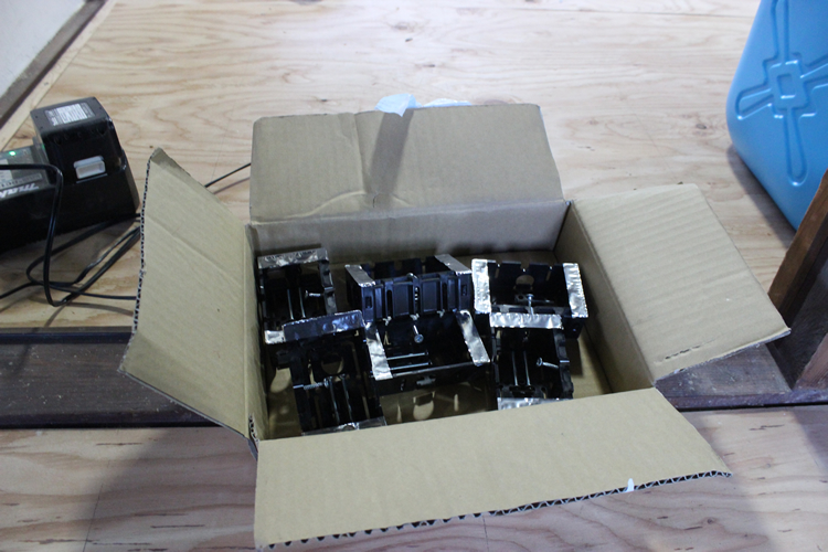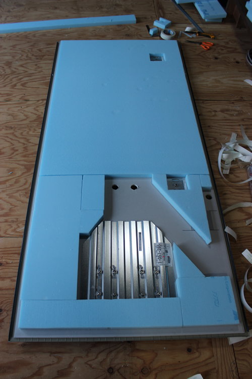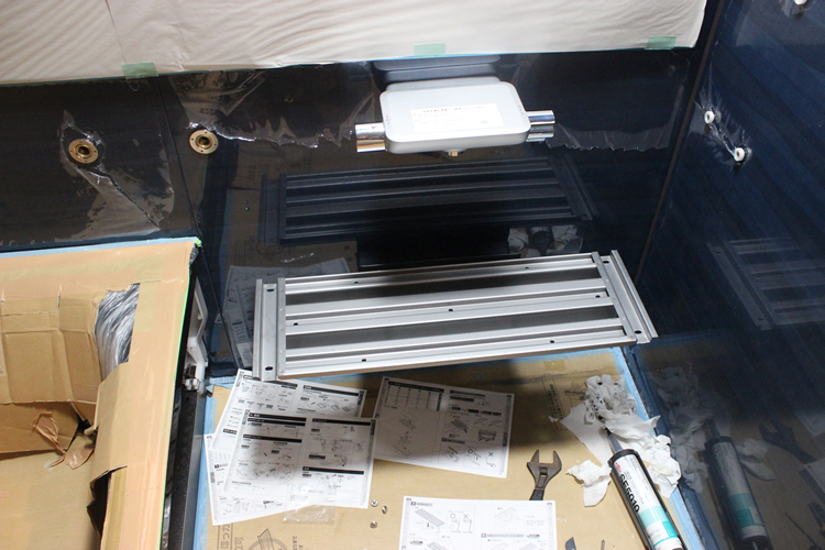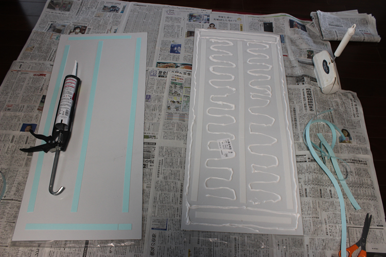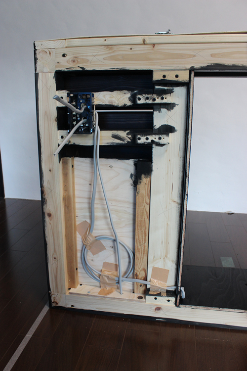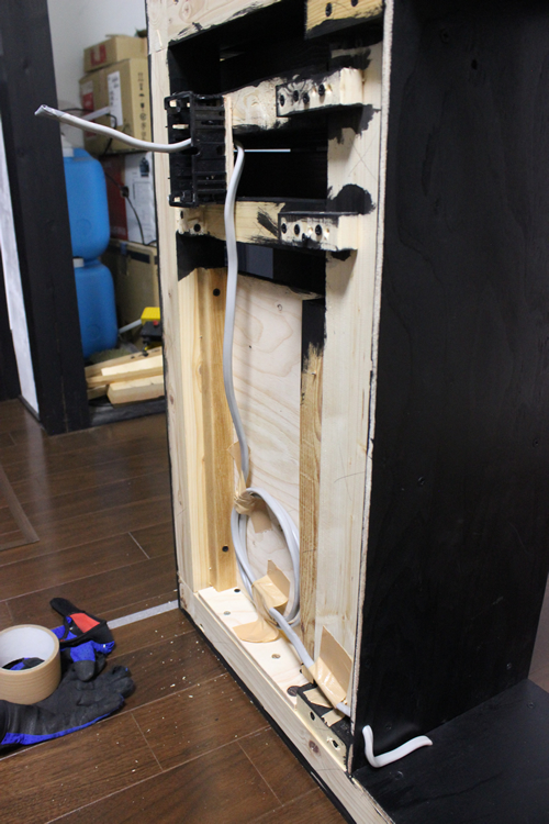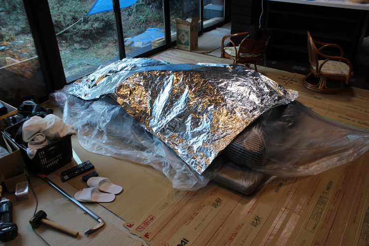 それらはさすがにむき出しでは使いたくなかったため、必要充分な被覆だけしてアルミテープで覆い隠したのが右の写真。