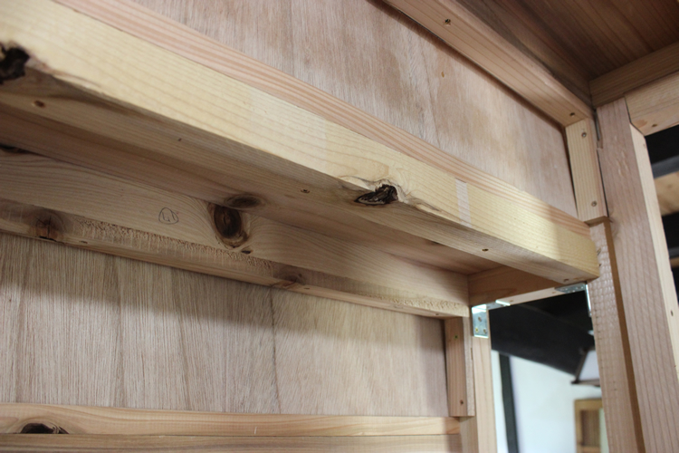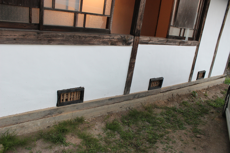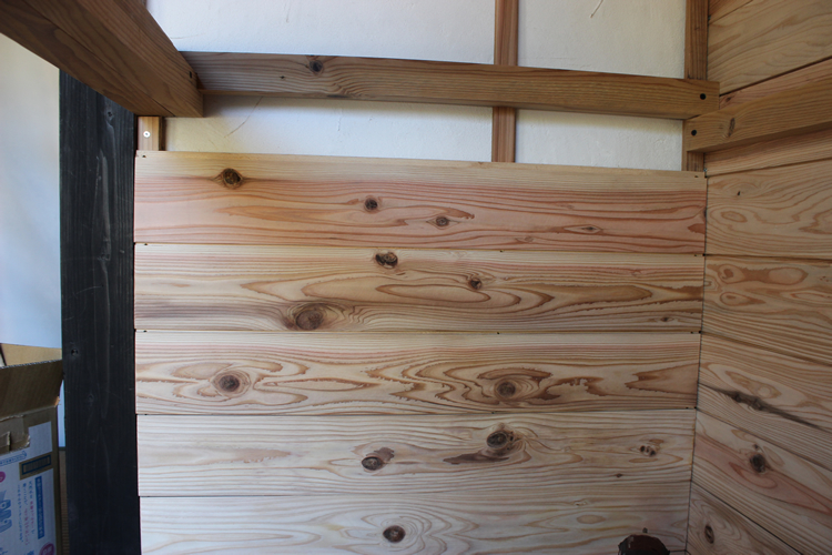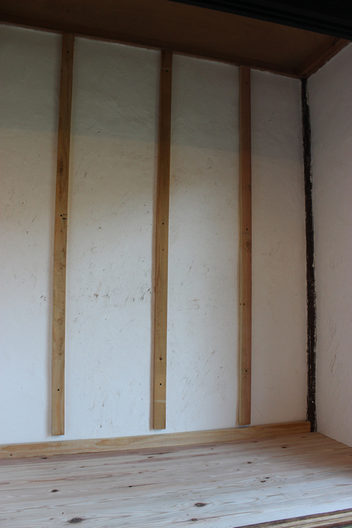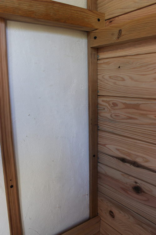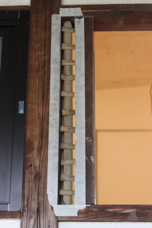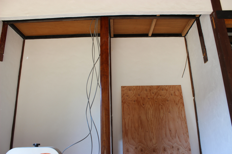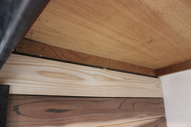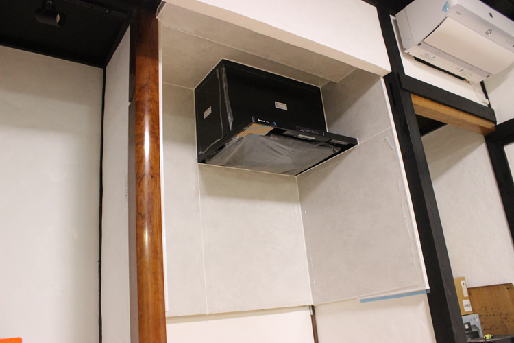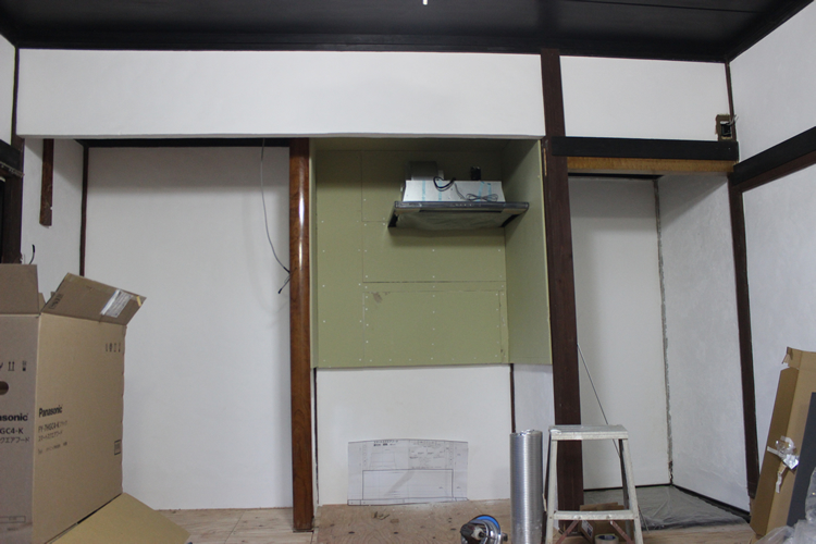 白状すると、離隔距離確保を怠った自分を棚に上げて、担当官をなじりたい気持ちになったものである。2センチ。そのくらい容赦しろよと。母家のフード設置の際消防に確認したとき、壁を構成している貫や竹はもっとダクトとの距離が近く、さらに壁付けタイプのレンジフードの場合、フード自体を固定するための下地となる木材がダクトのすぐ横を通る設計になっている。