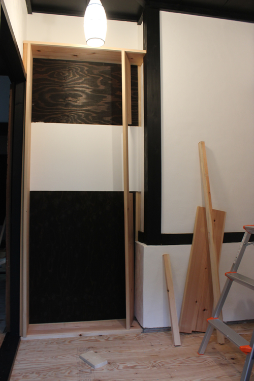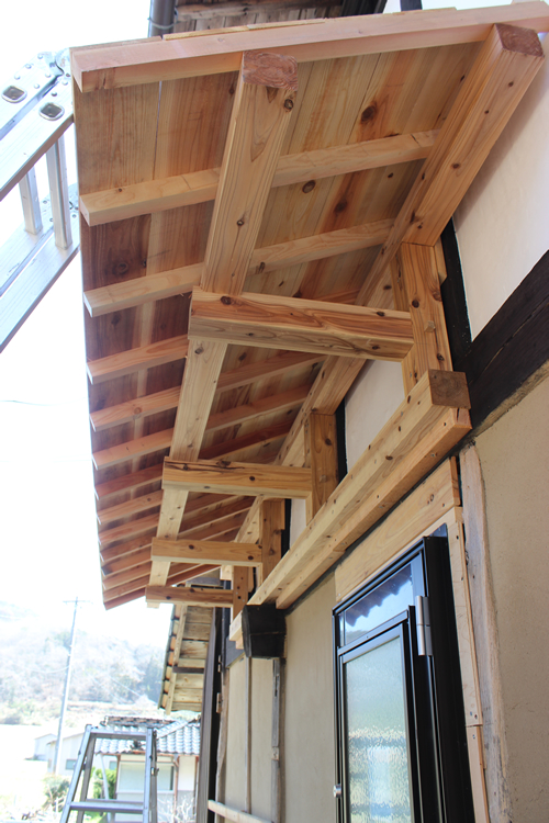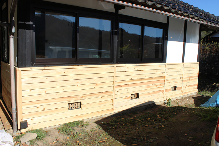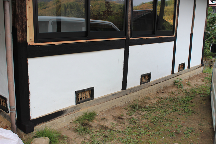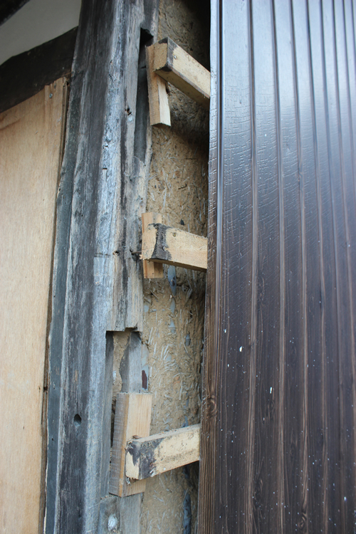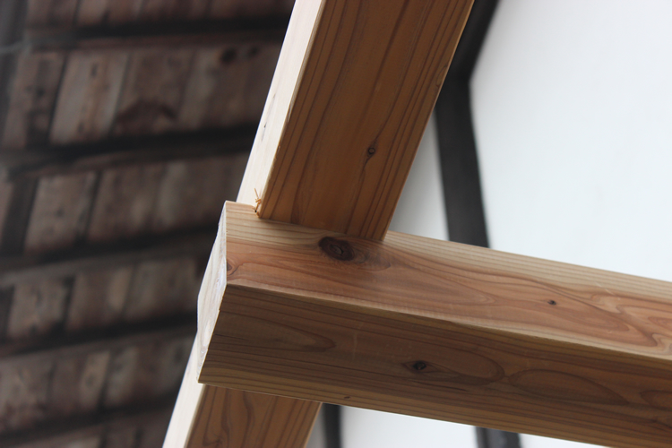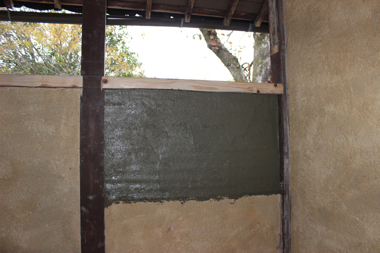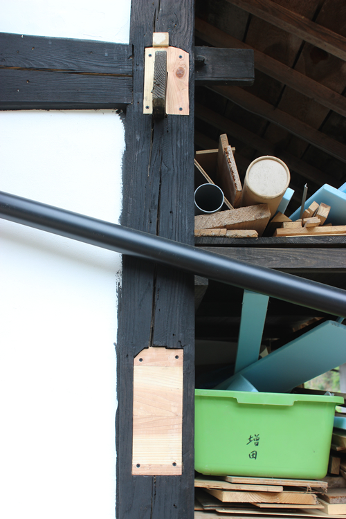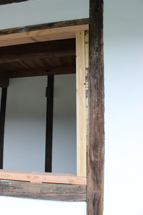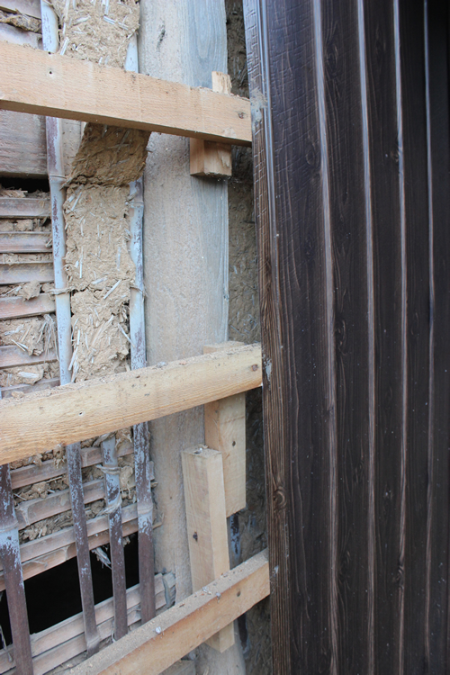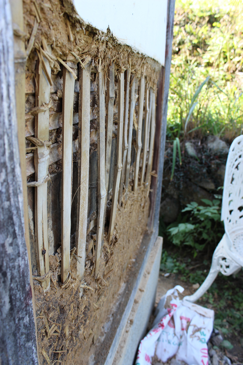 白状すると、離隔距離確保を怠った自分を棚に上げて、担当官をなじりたい気持ちになったものである。2センチ。そのくらい容赦しろよと。母家のフード設置の際消防に確認したとき、壁を構成している貫や竹はもっとダクトとの距離が近く、さらに壁付けタイプのレンジフードの場合、フード自体を固定するための下地となる木材がダクトのすぐ横を通る設計になっている。