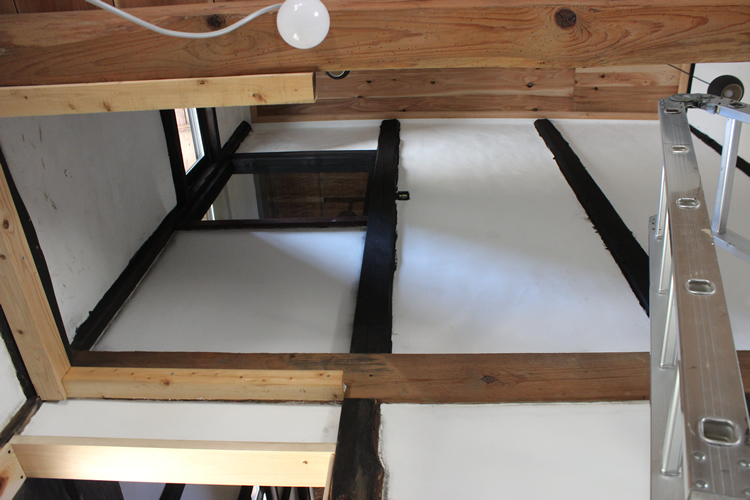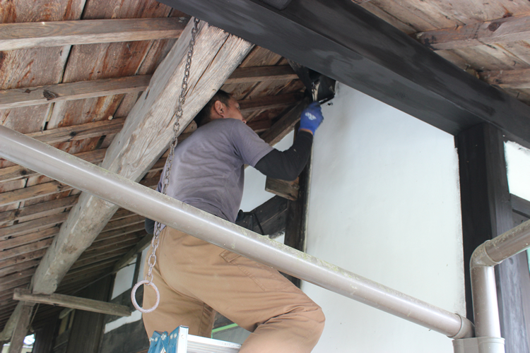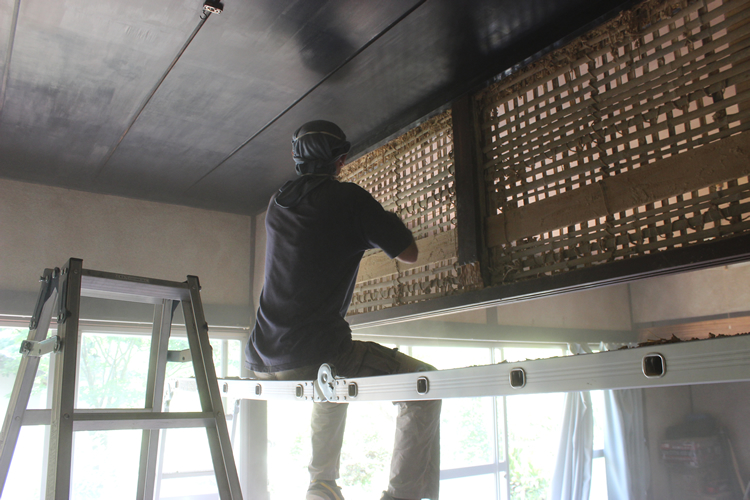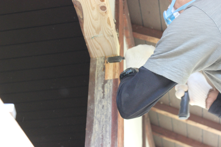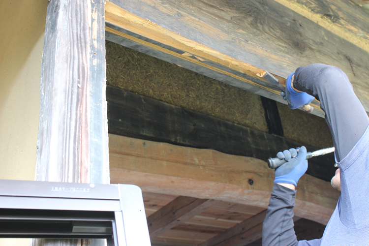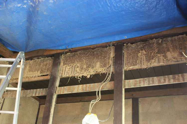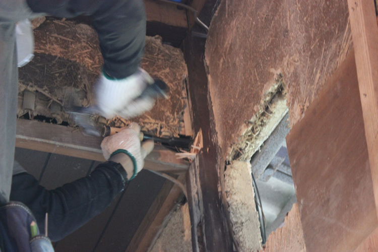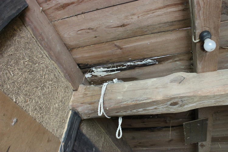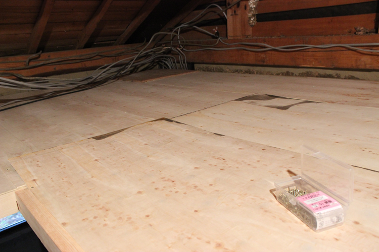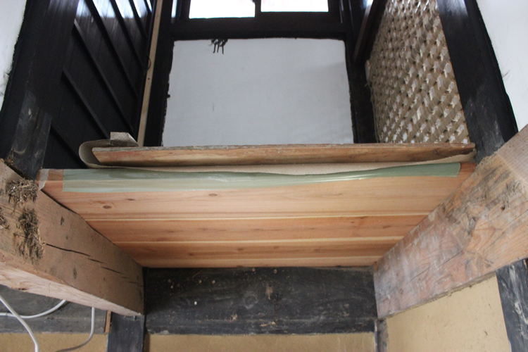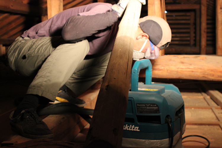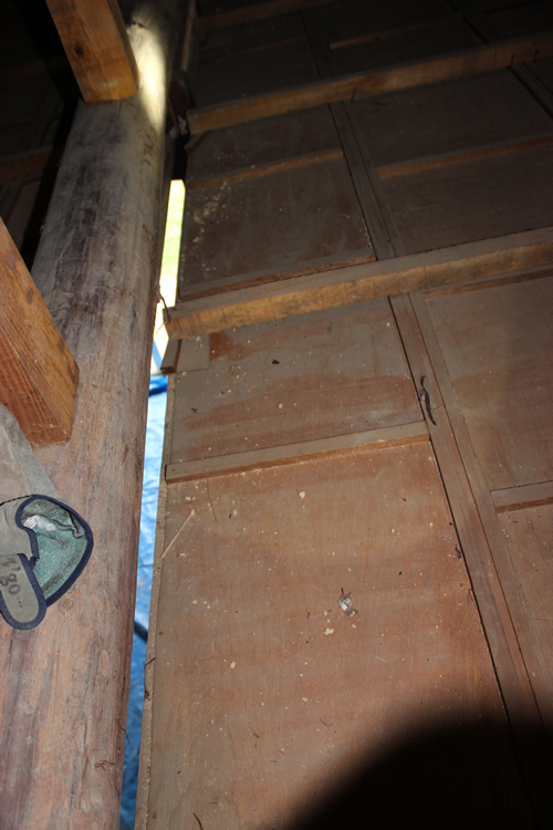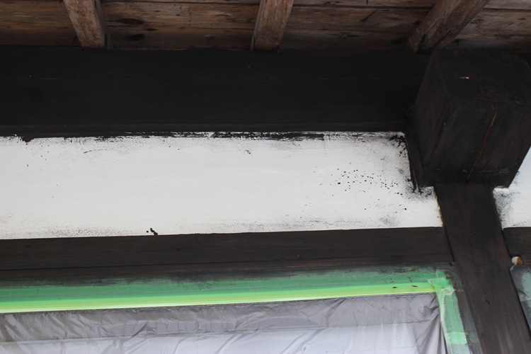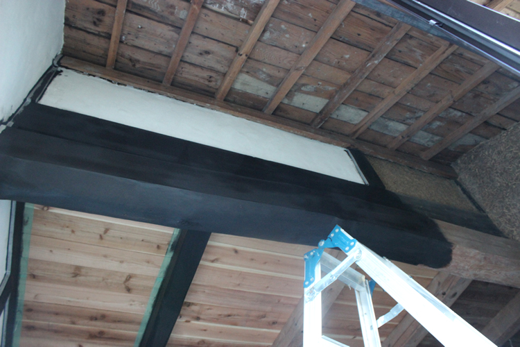 狭いスペースの作業でもあり荒々しい仕上げになっているが、どうせ見切れないためこれで良しとした。そしてこの屋根裏スペースに関しては、担当官にも表側と同様の処置をとれば良いのかどうか確認したが、少し口を濁したようにそれで良いとのことだった。