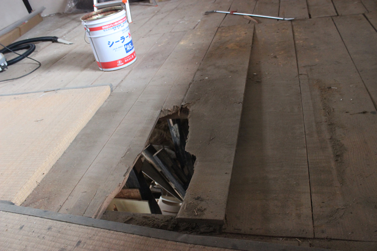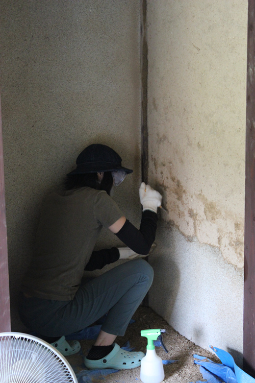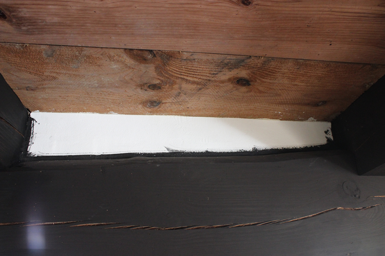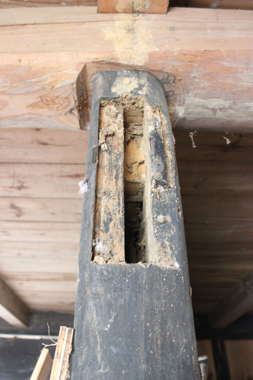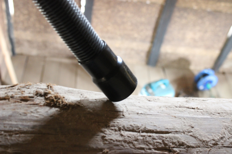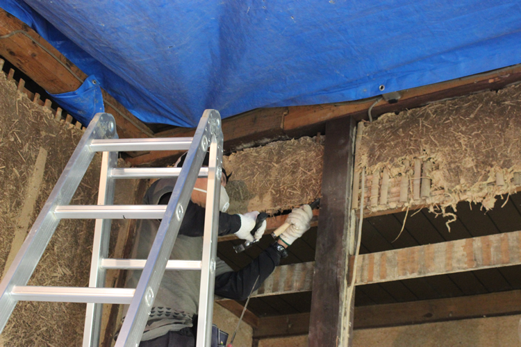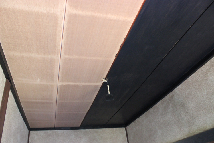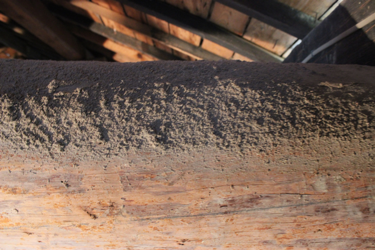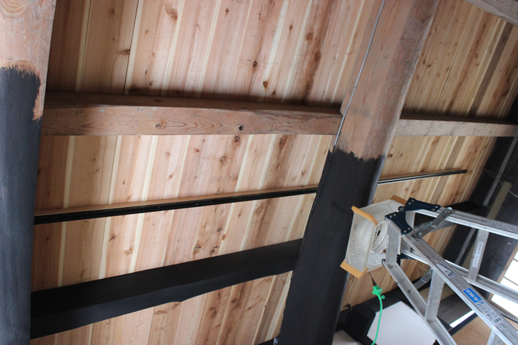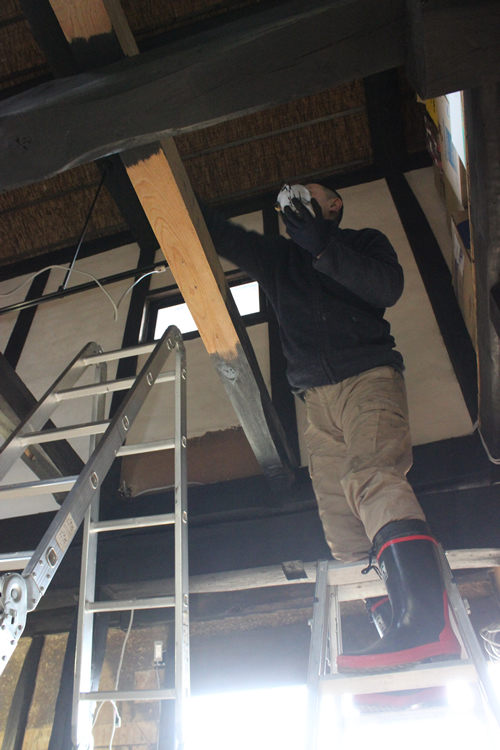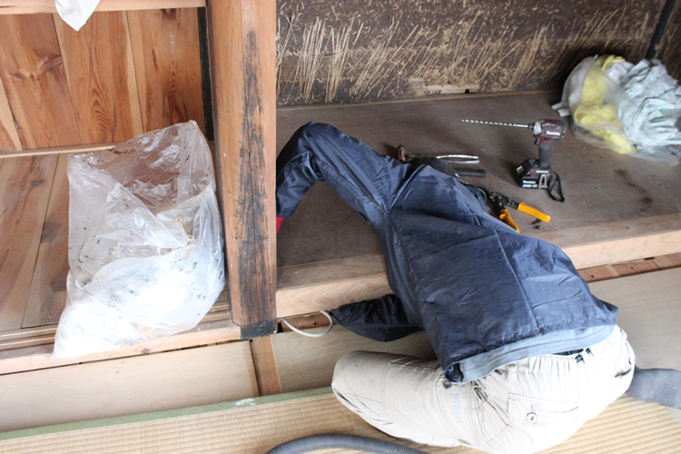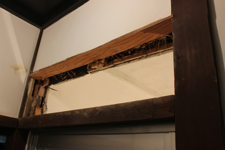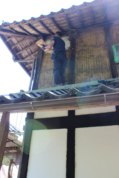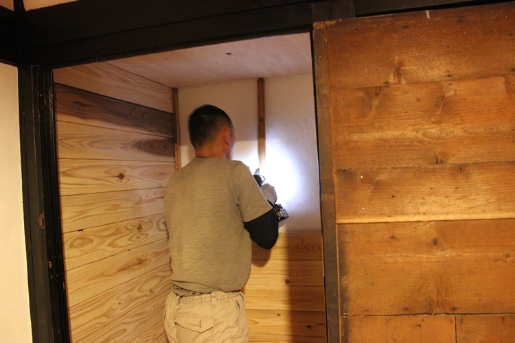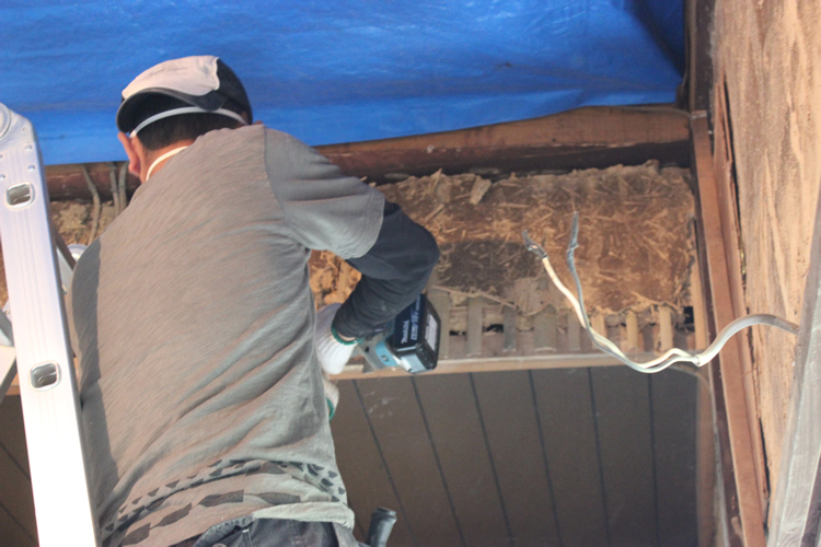 狭いスペースの作業でもあり荒々しい仕上げになっているが、どうせ見切れないためこれで良しとした。そしてこの屋根裏スペースに関しては、担当官にも表側と同様の処置をとれば良いのかどうか確認したが、少し口を濁したようにそれで良いとのことだった。