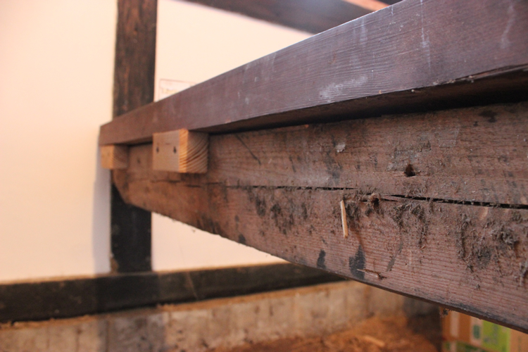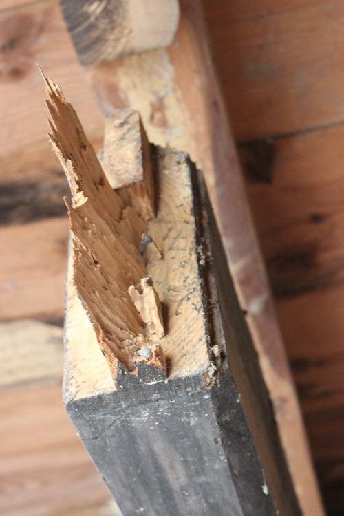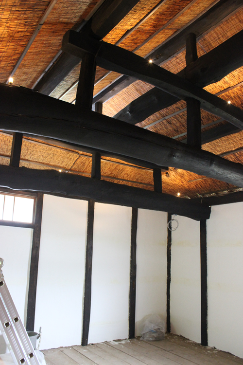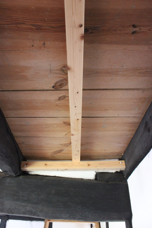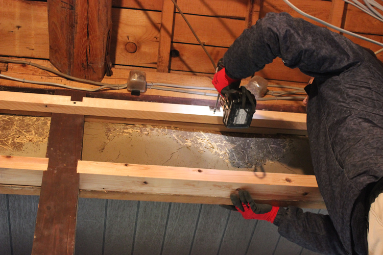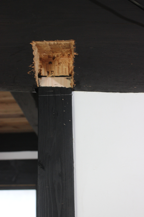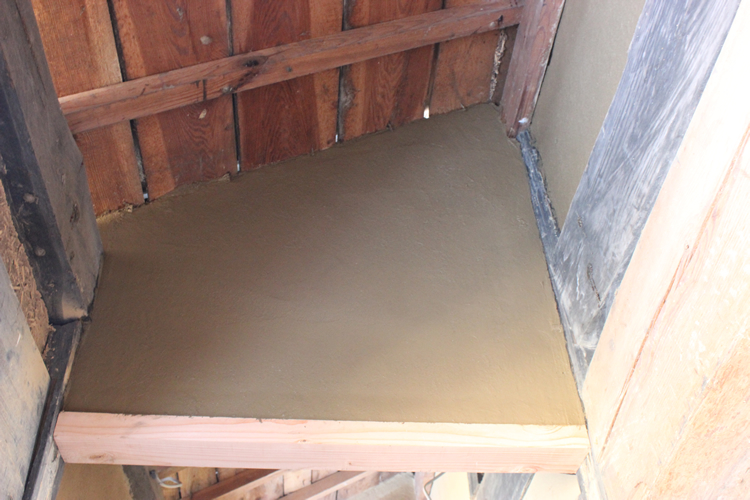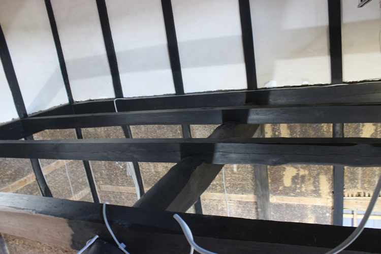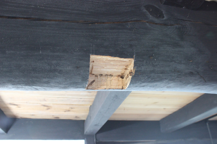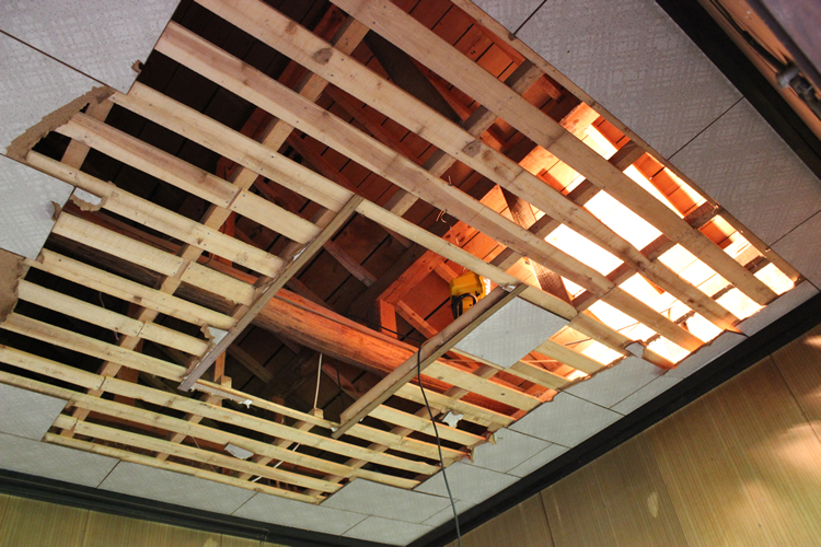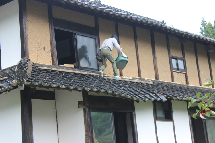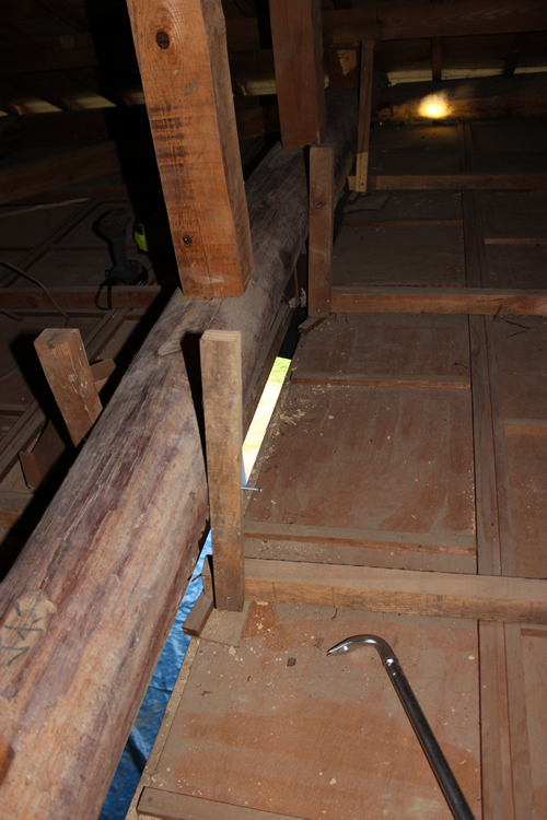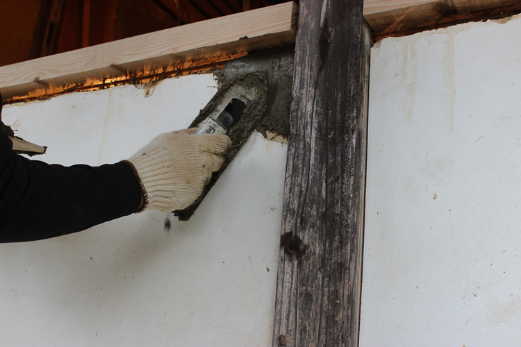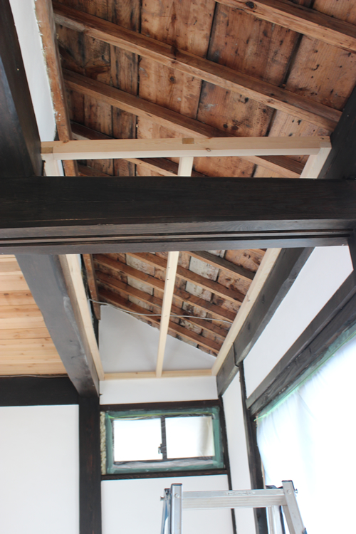 狭いスペースの作業でもあり荒々しい仕上げになっているが、どうせ見切れないためこれで良しとした。そしてこの屋根裏スペースに関しては、担当官にも表側と同様の処置をとれば良いのかどうか確認したが、少し口を濁したようにそれで良いとのことだった。
