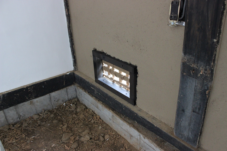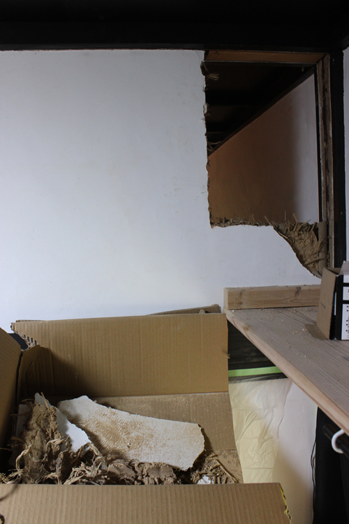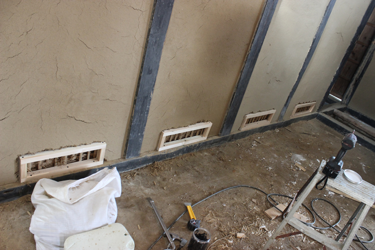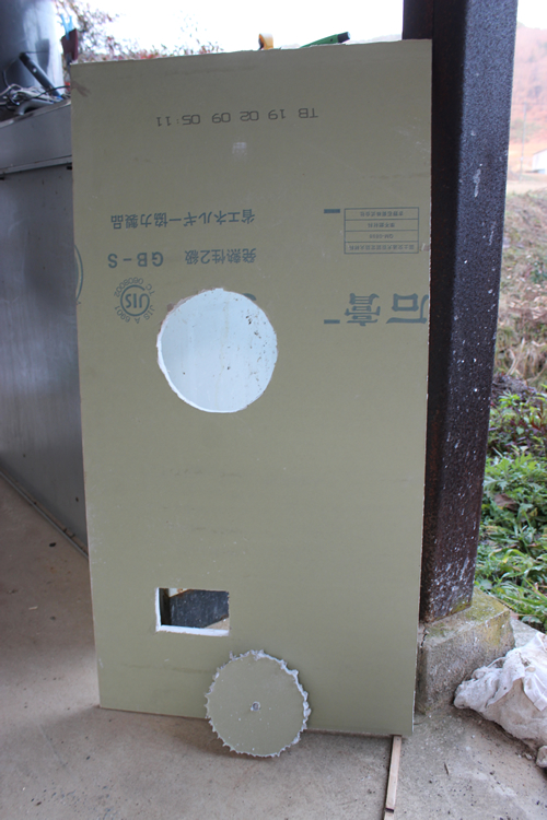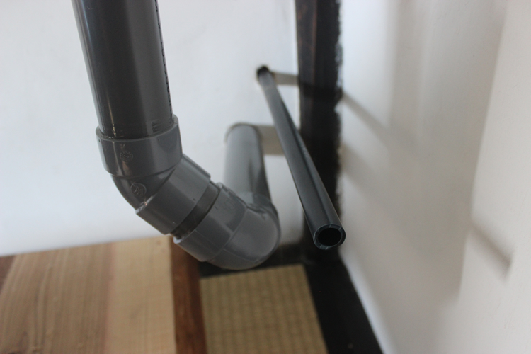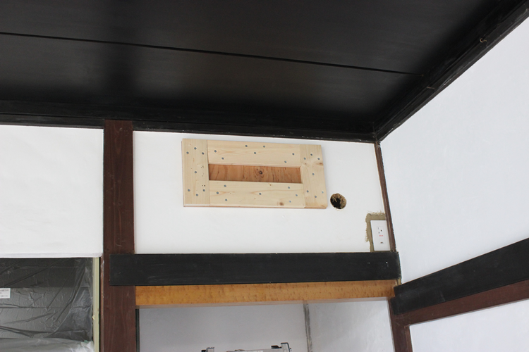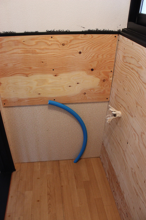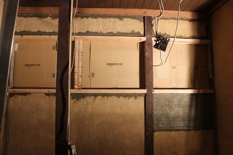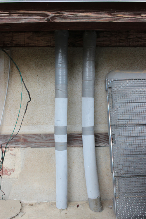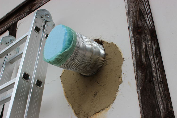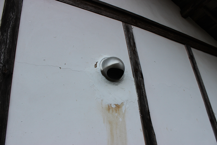 改めて指摘を受けてみて作者がここの寸法を測ったところ、最短で8センチほどで、つまり2センチ足りない。この指摘を受けたときの作者の心境はなかなかに絶望的で、取り付けたものをいったん外して開いている穴をずらして開けなおし、それで使わなくなった穴の空間を土壁と漆喰で塞いでから再度ダクトをつけなおす、といった手順がすぐに頭の中を駆け巡った。