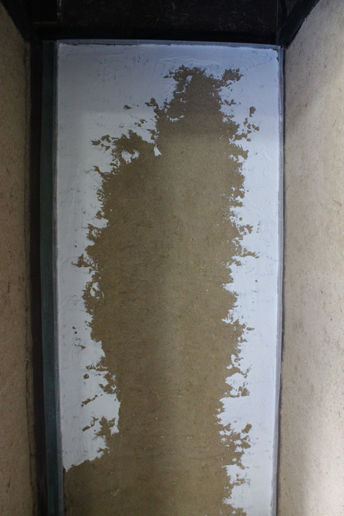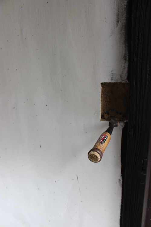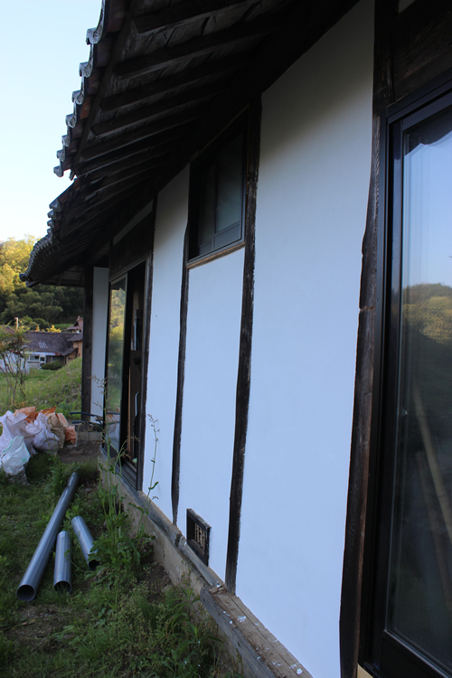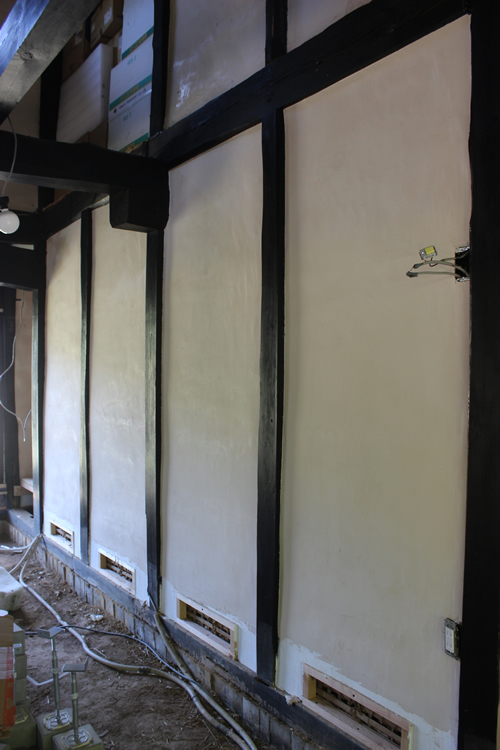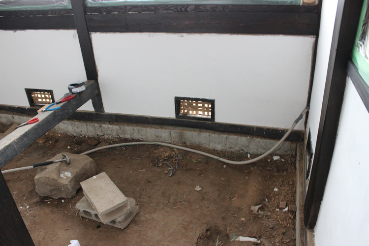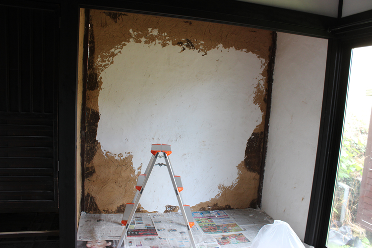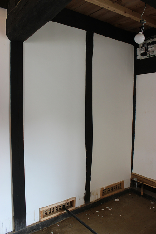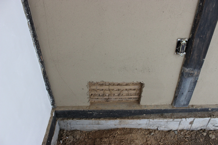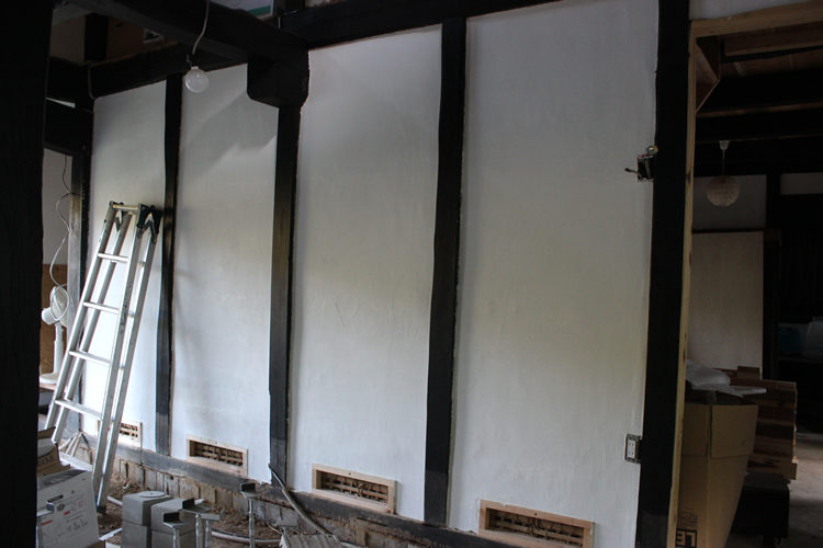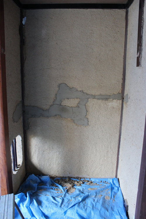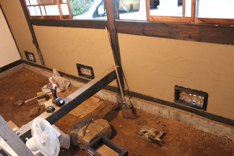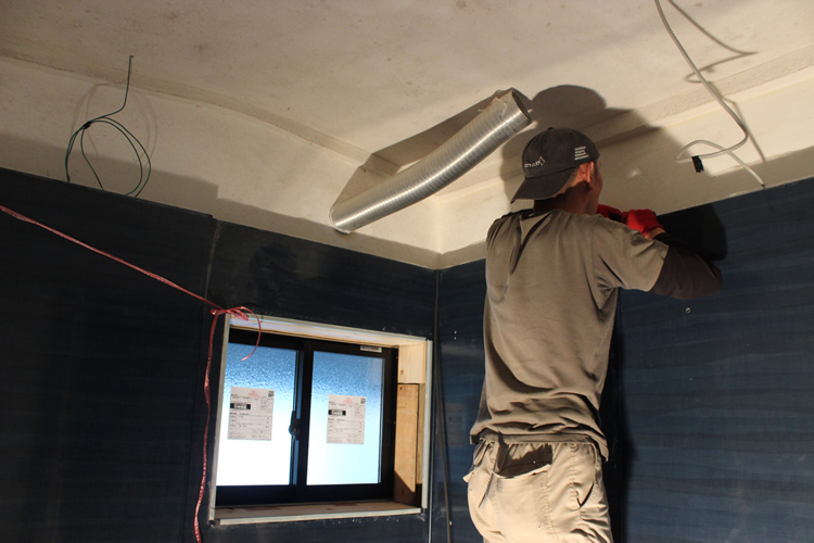 改めて指摘を受けてみて作者がここの寸法を測ったところ、最短で8センチほどで、つまり2センチ足りない。この指摘を受けたときの作者の心境はなかなかに絶望的で、取り付けたものをいったん外して開いている穴をずらして開けなおし、それで使わなくなった穴の空間を土壁と漆喰で塞いでから再度ダクトをつけなおす、といった手順がすぐに頭の中を駆け巡った。