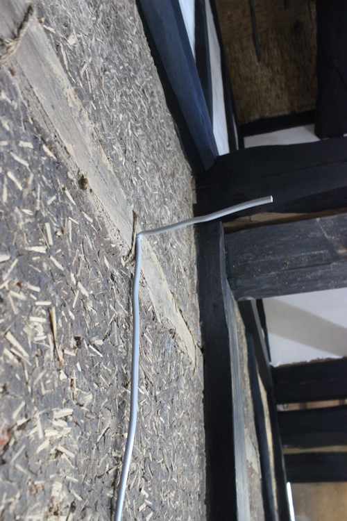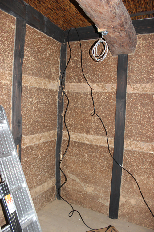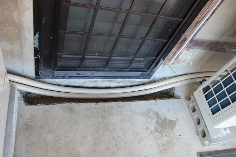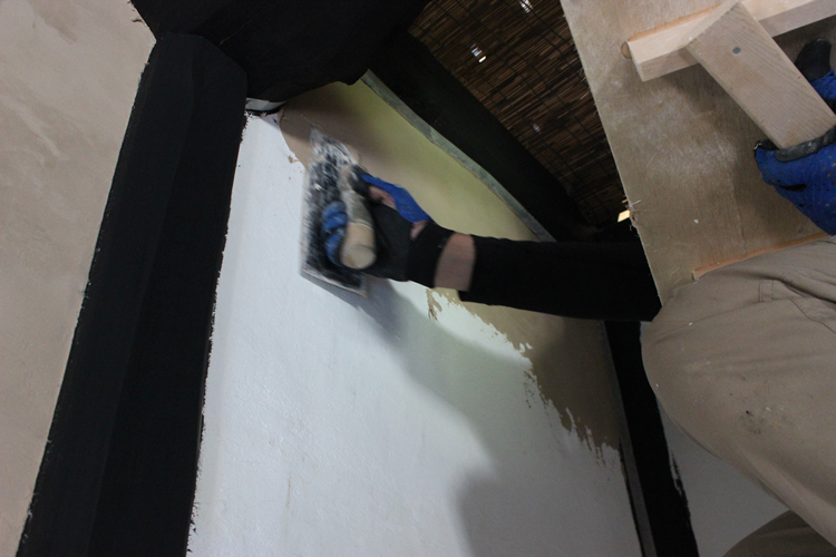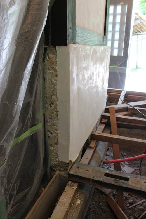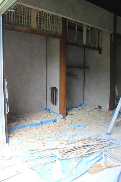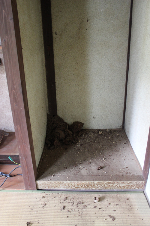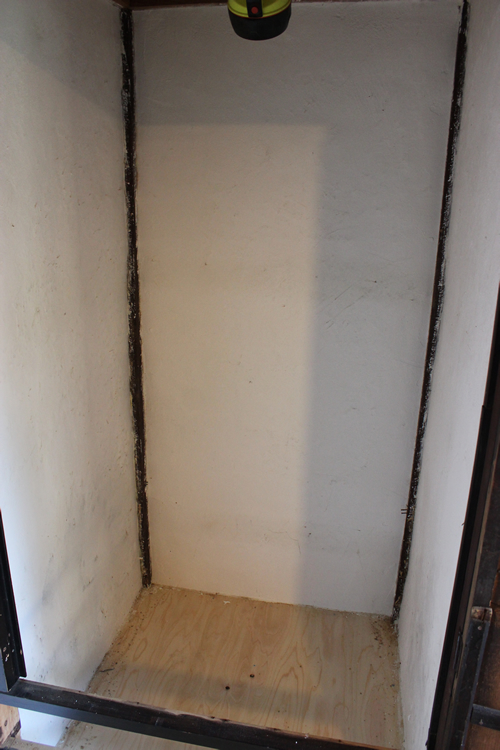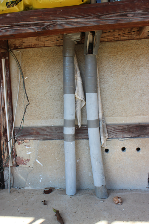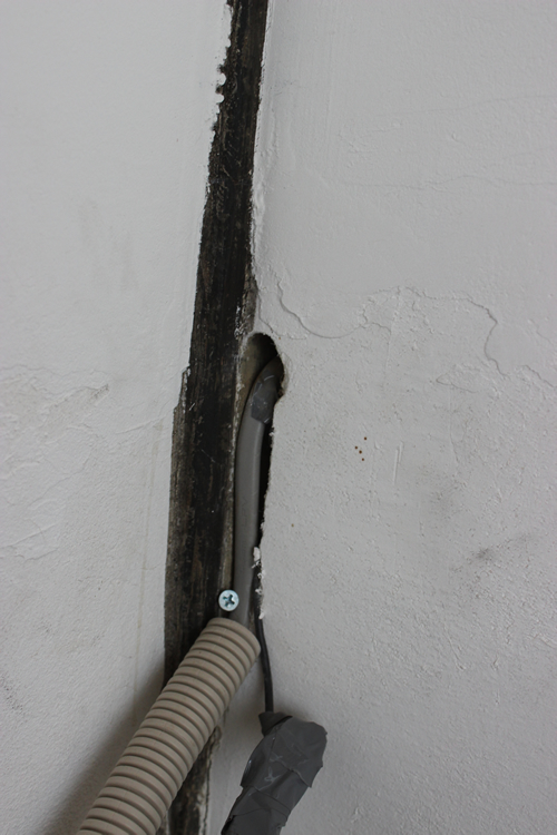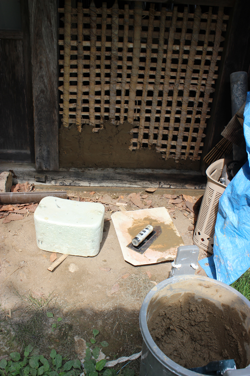 改めて指摘を受けてみて作者がここの寸法を測ったところ、最短で8センチほどで、つまり2センチ足りない。この指摘を受けたときの作者の心境はなかなかに絶望的で、取り付けたものをいったん外して開いている穴をずらして開けなおし、それで使わなくなった穴の空間を土壁と漆喰で塞いでから再度ダクトをつけなおす、といった手順がすぐに頭の中を駆け巡った。
