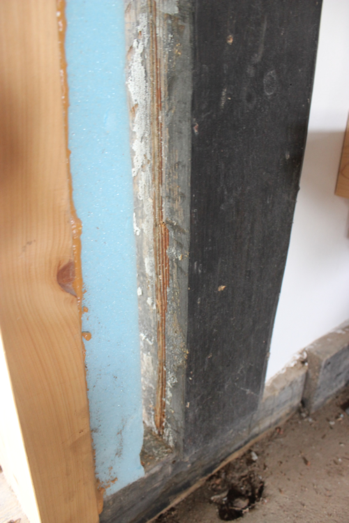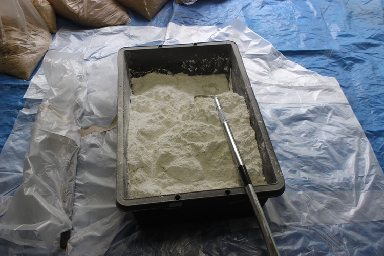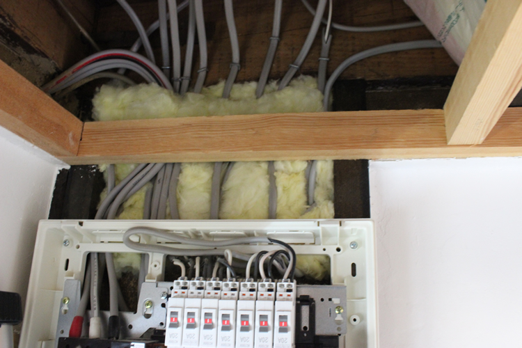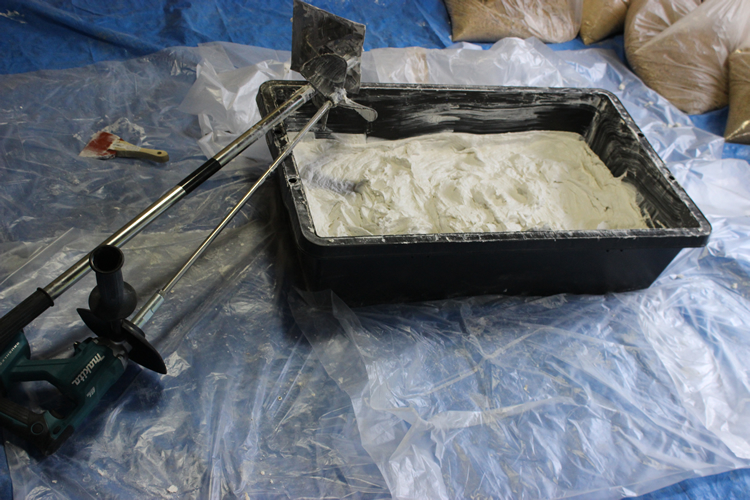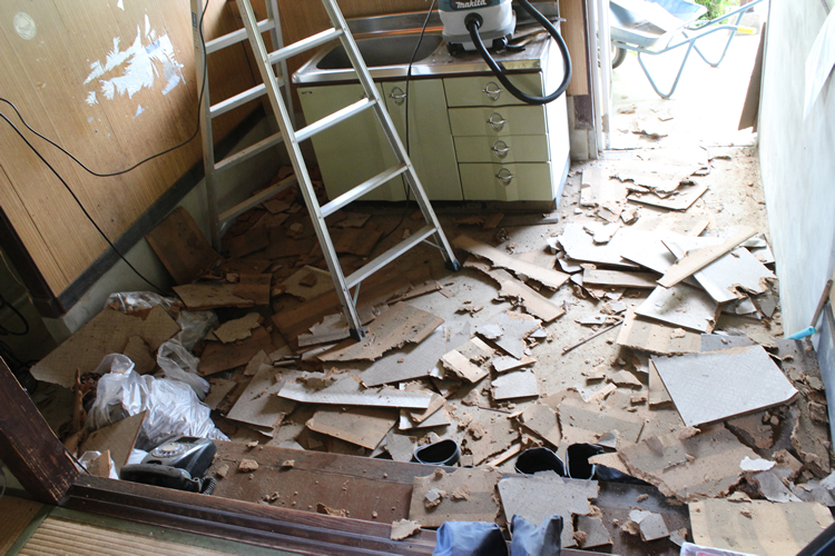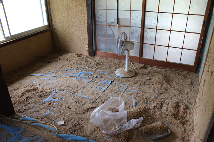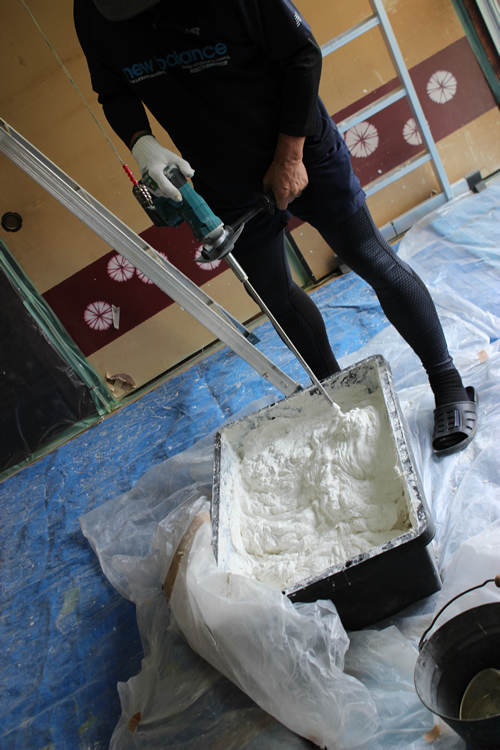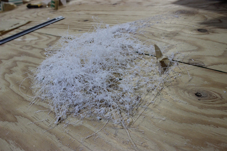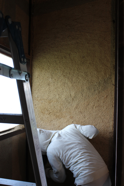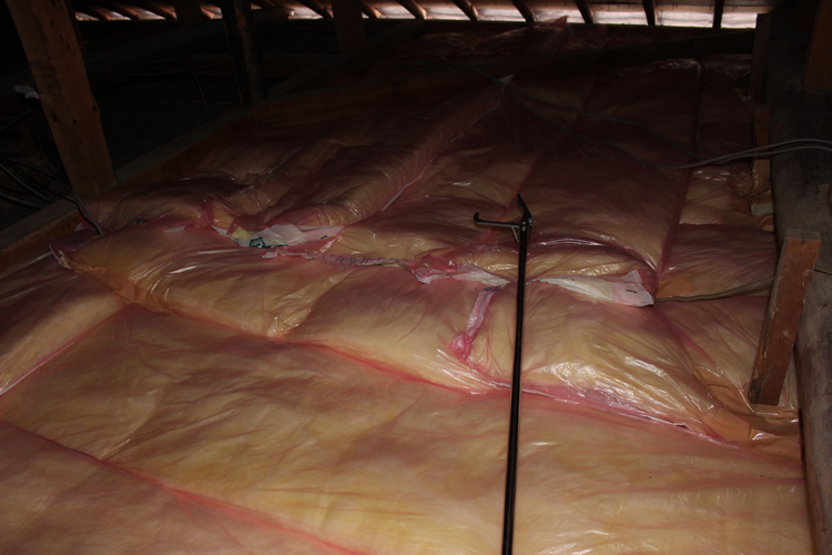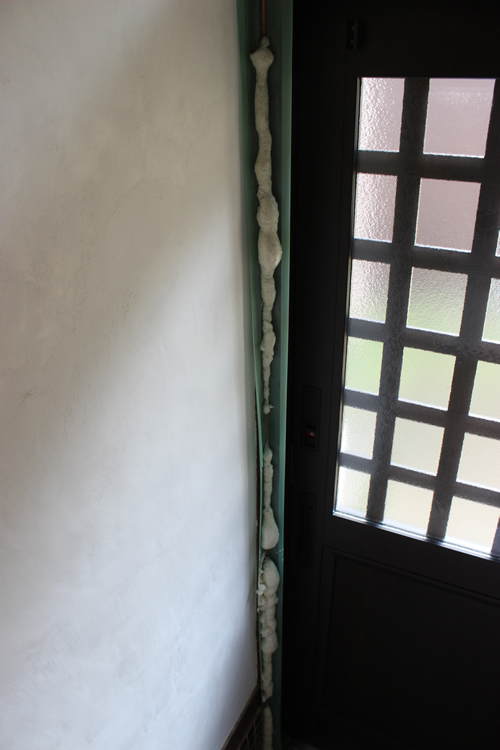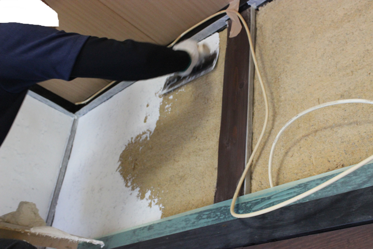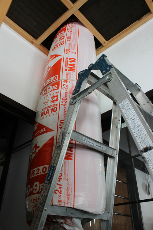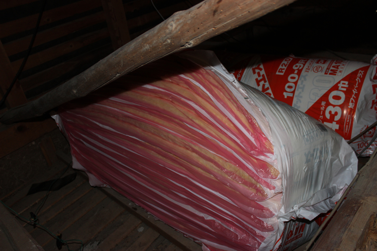 これはロックウールという素材で、昔流行していた石綿(アスベスト含有素材)保温材と似たようなものだ。石綿とは違い、一応人体には無害であると謳われているが、素材はかなり細かい綿みたいなもので構成され、素手で触るとかなりチクチクする。