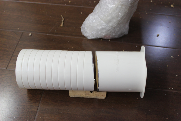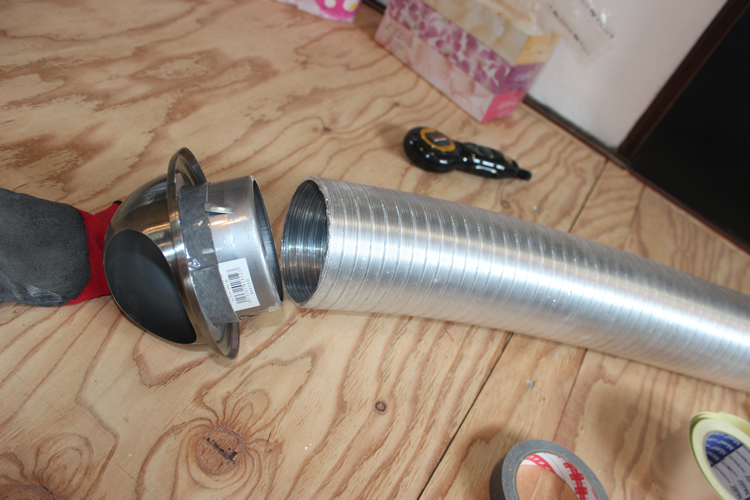 ちなみに、作者が使ったアルミフレキは径が200ミリほどあり、それに合う形状のロックウールは探すのが困難で、径が大きくなると値の上がり方も半端なく、やむを得ず90ミリ弱の商品を購入して切り張りしている。