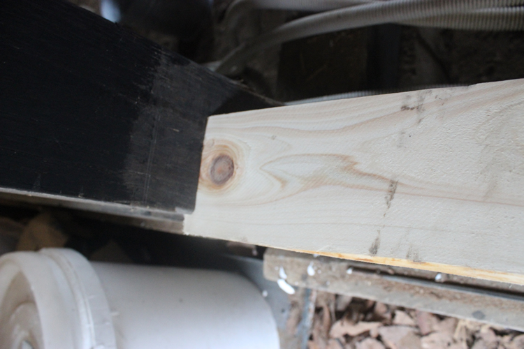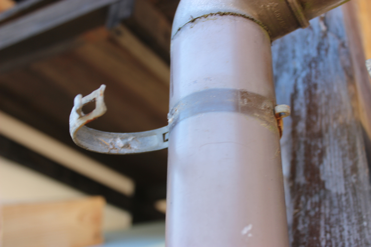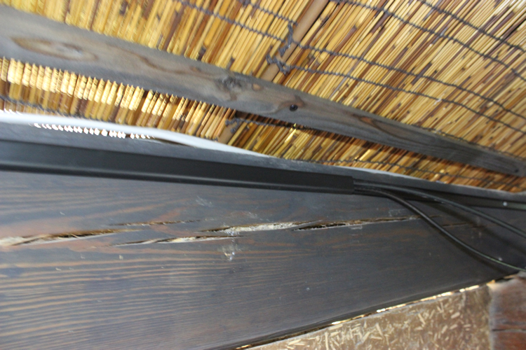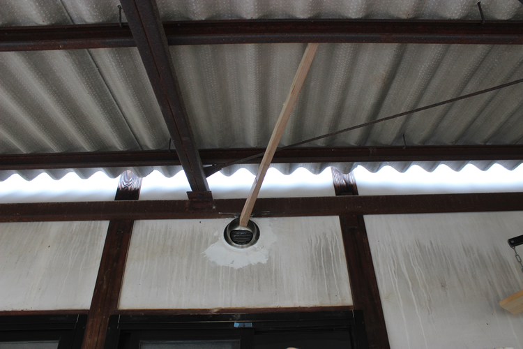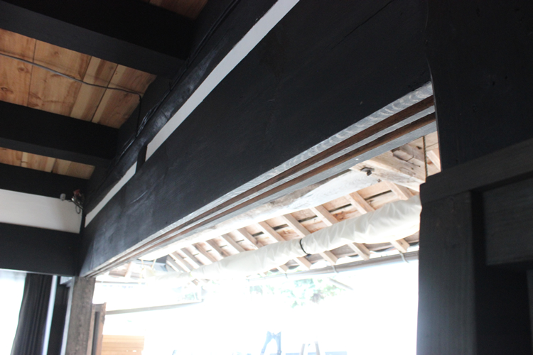この場合の離隔距離は、「可燃性のものから10センチ以上離す」ということで、写真を見るだけでは寸法を測りかねるかもしれないが、ダクトと桁の間がその指摘を受けたところとなる。