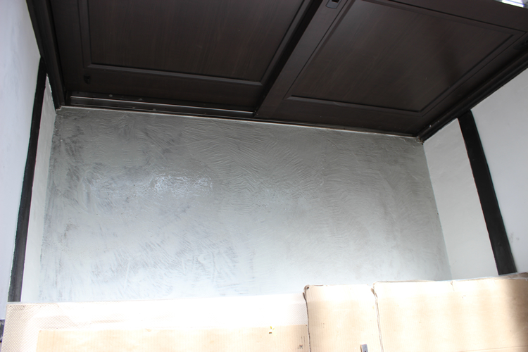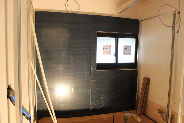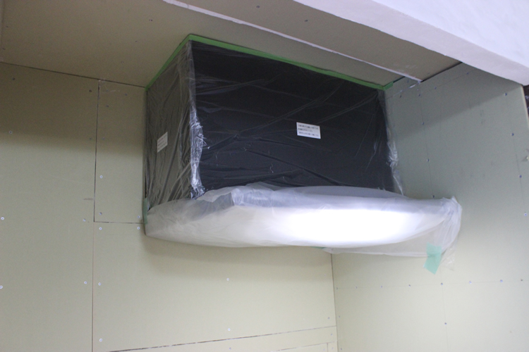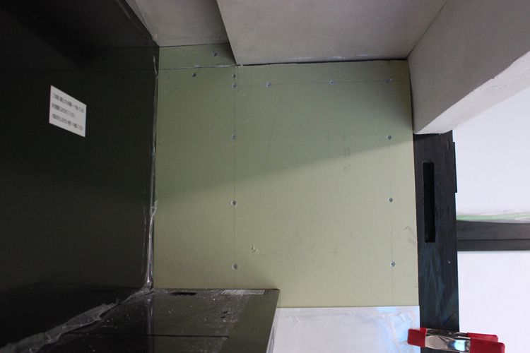 一応消防の指摘では離隔距離が足りない部分だけで良い、ということだったため、全体を被覆するかどうか迷ったが、必要厚が5センチもあり、必要ないのであれば全体を被覆するのはコスト的にも勿体ないと判断した。