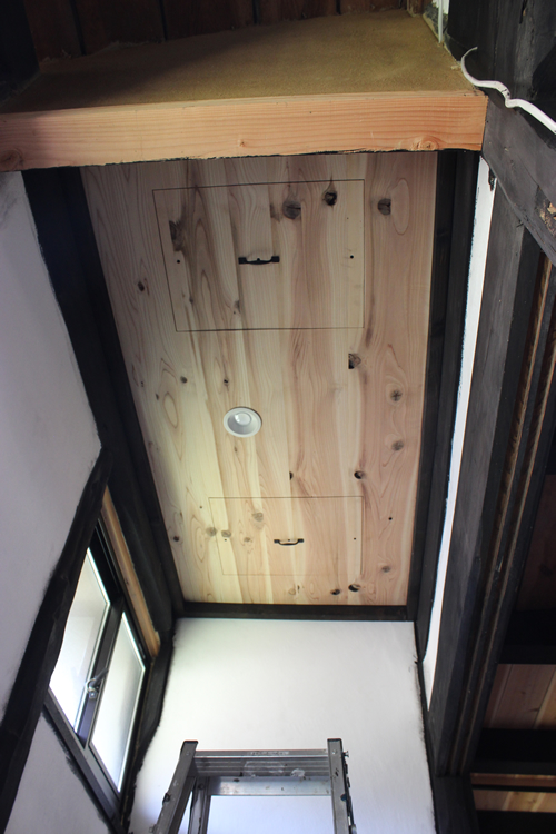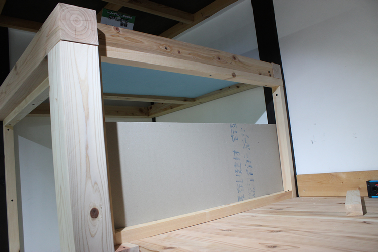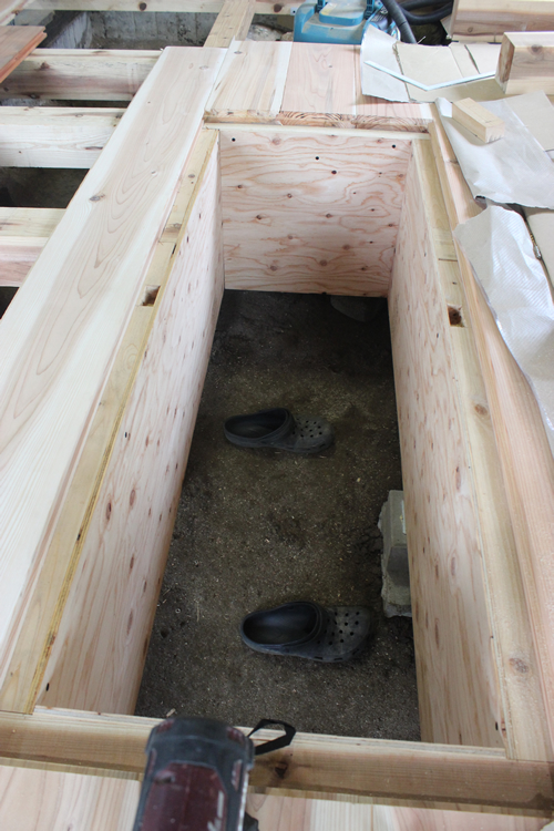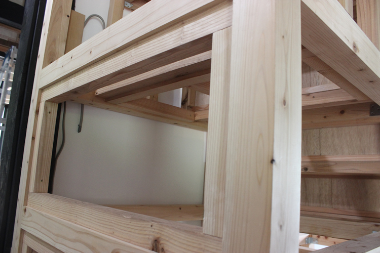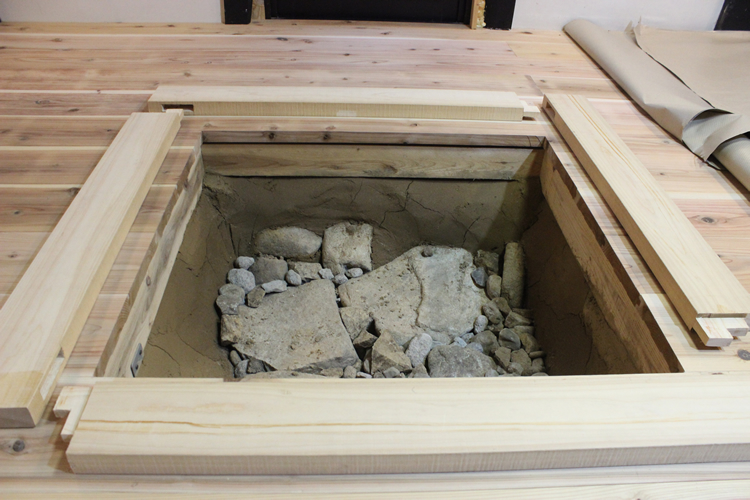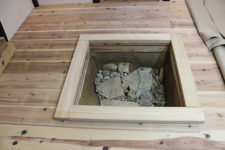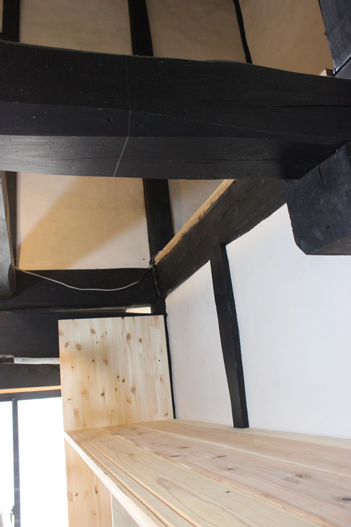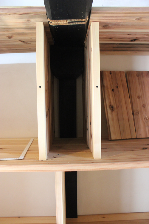 もっと言うと、この囲炉裏部屋には最大の出火原因となり得る囲炉裏(よくあるお洒落囲炉裏ではなく、実際に焚き火レベルの火を扱う)があり、それを考えても1階の天井にあたる付近に設置するべきだと考えた。