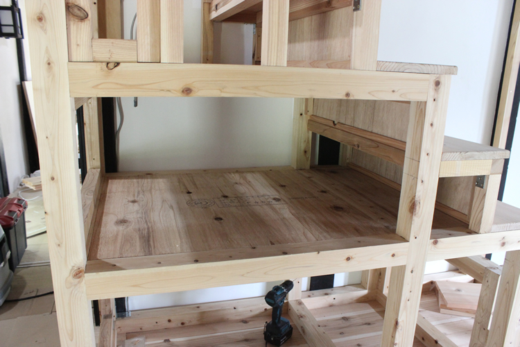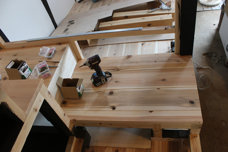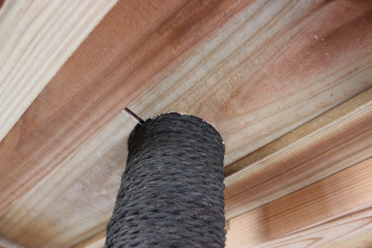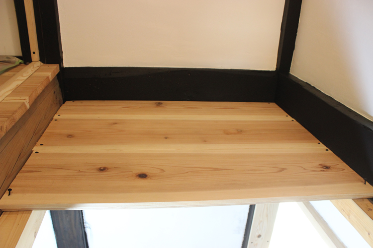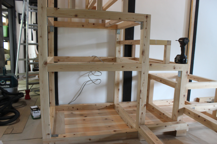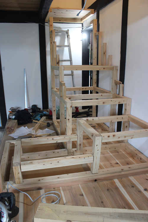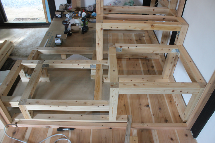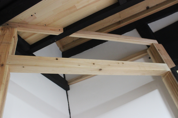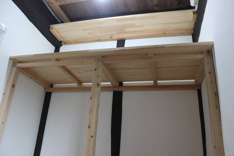 もっと言うと、この囲炉裏部屋には最大の出火原因となり得る囲炉裏(よくあるお洒落囲炉裏ではなく、実際に焚き火レベルの火を扱う)があり、それを考えても1階の天井にあたる付近に設置するべきだと考えた。