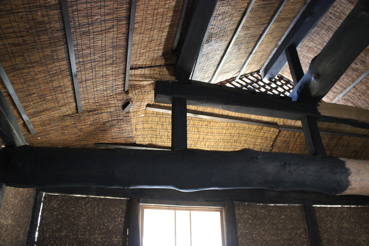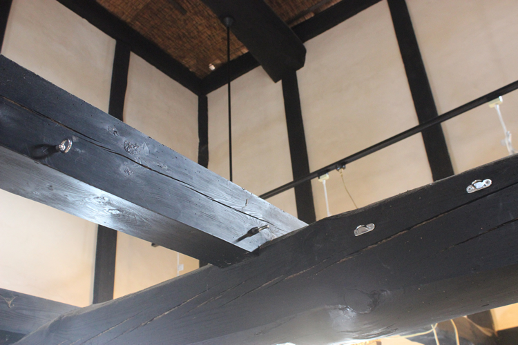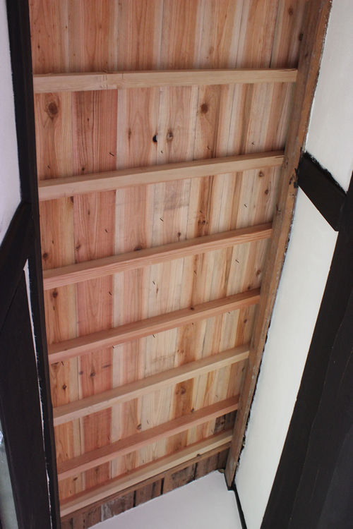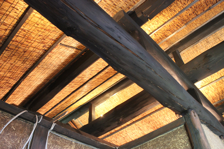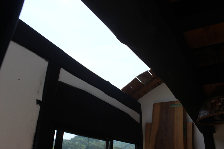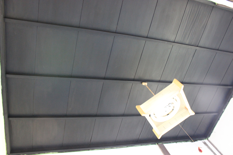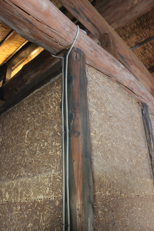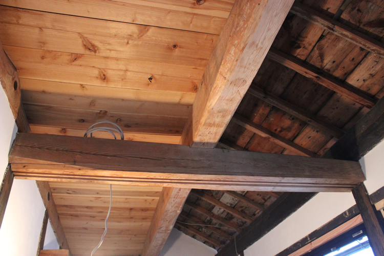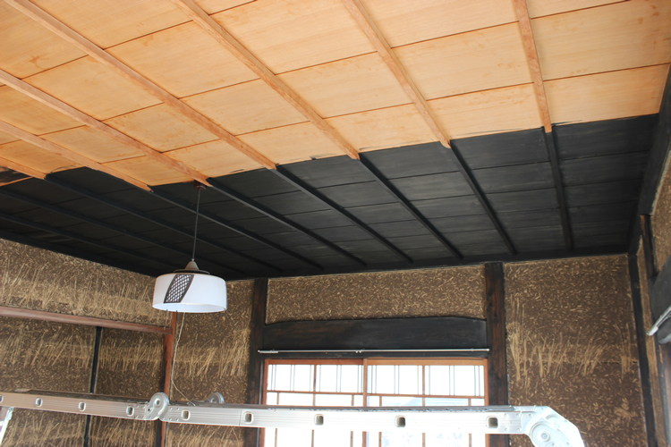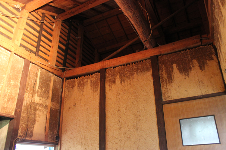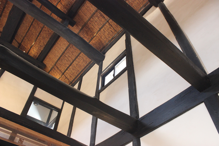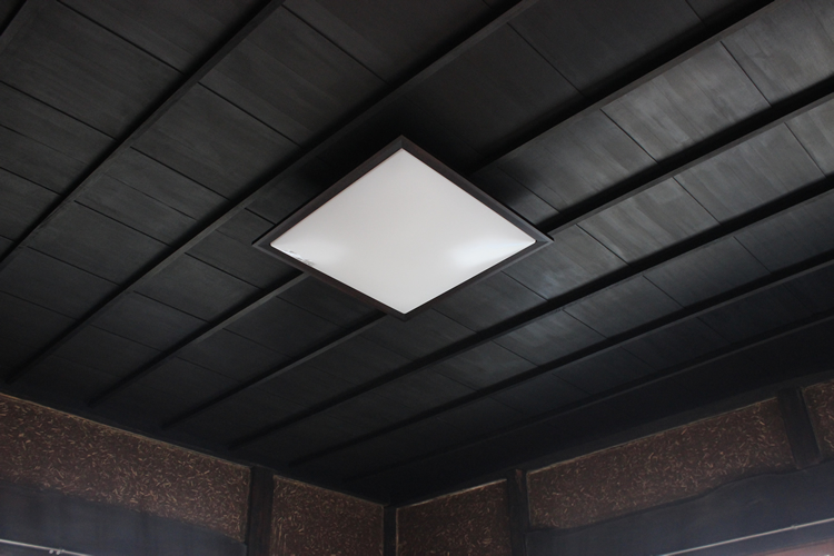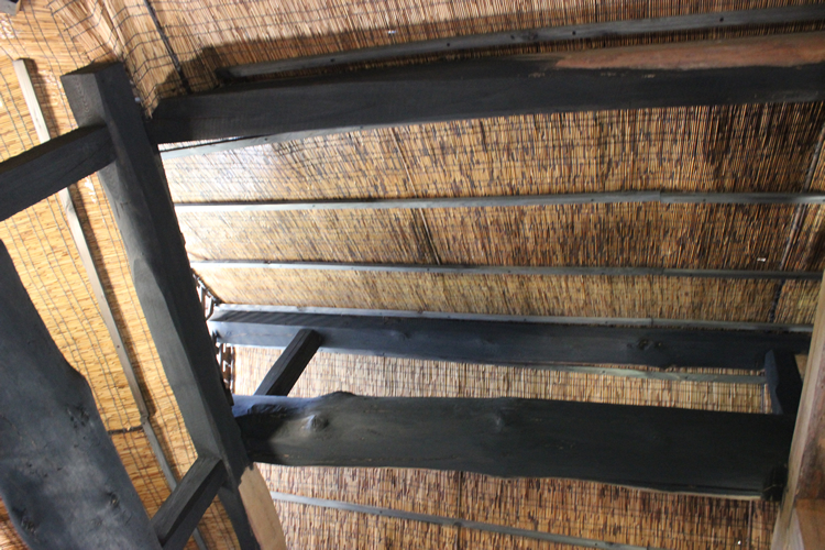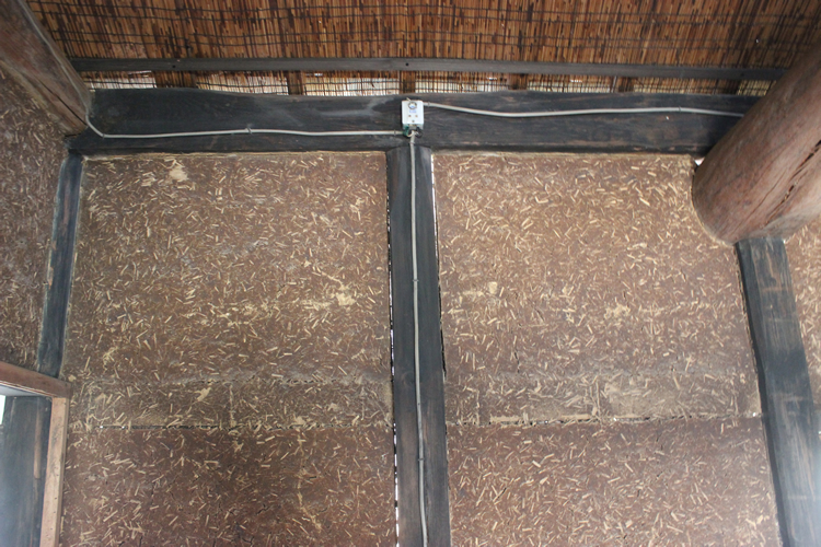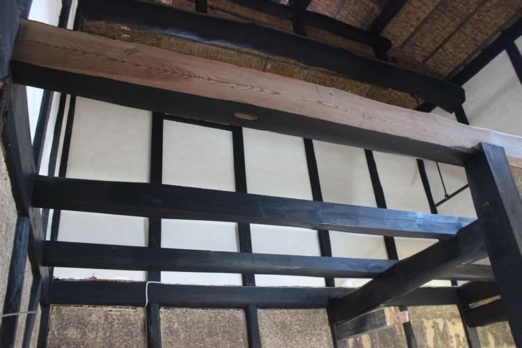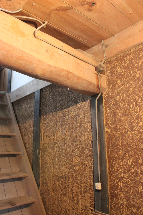 左の写真をご覧いただければわかると思うが、この報知器は囲炉裏の間の吹き抜けの棟木に取り付けている。報知器の設置位置基準はかなり細かく設定されており、この場合作者が問題視したいのは「天井」という定義についてだ。