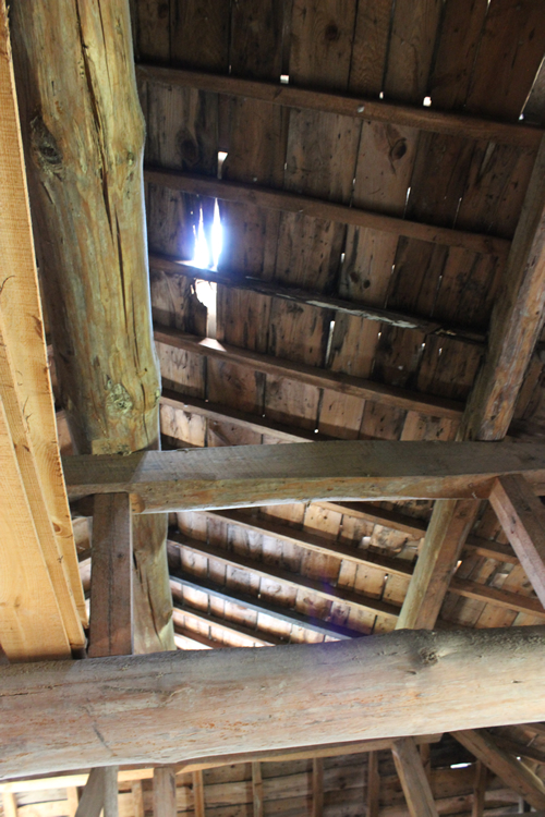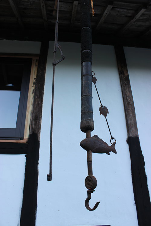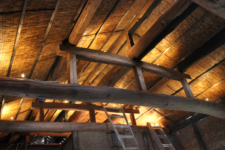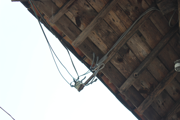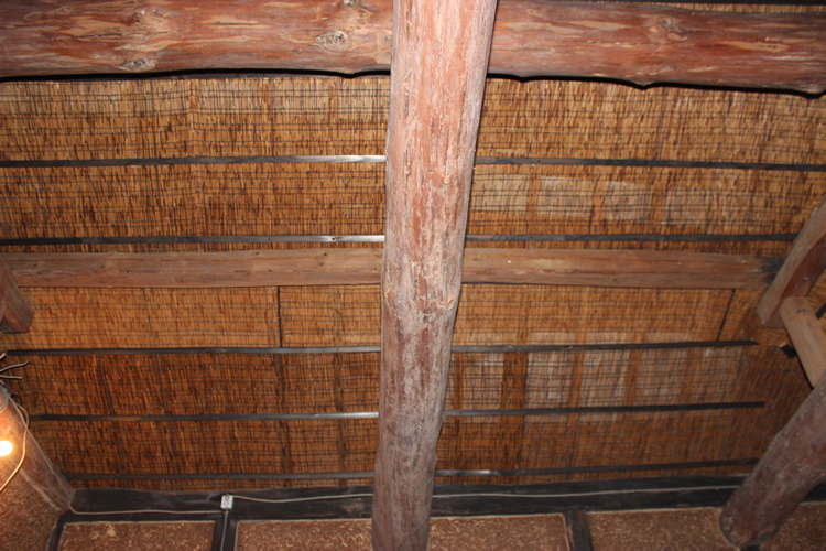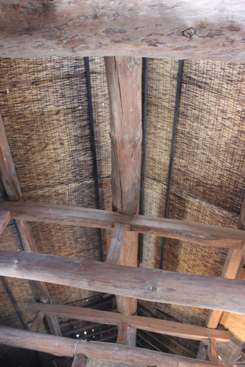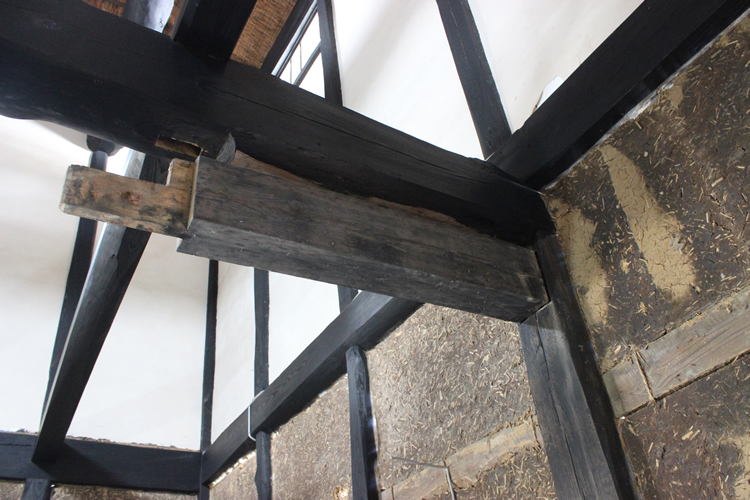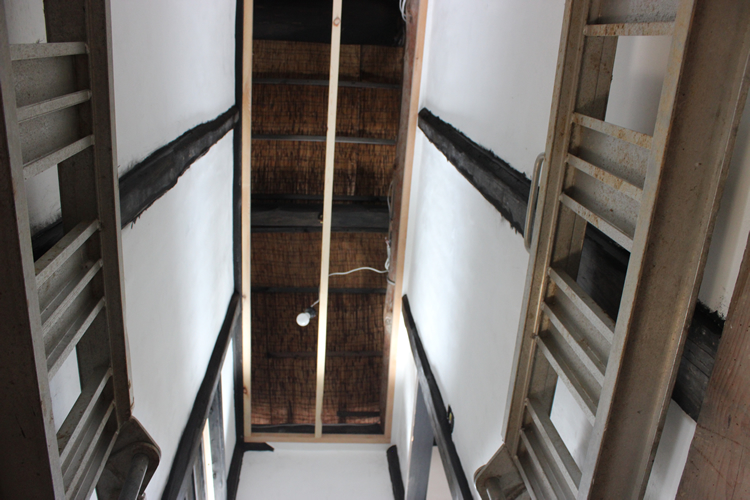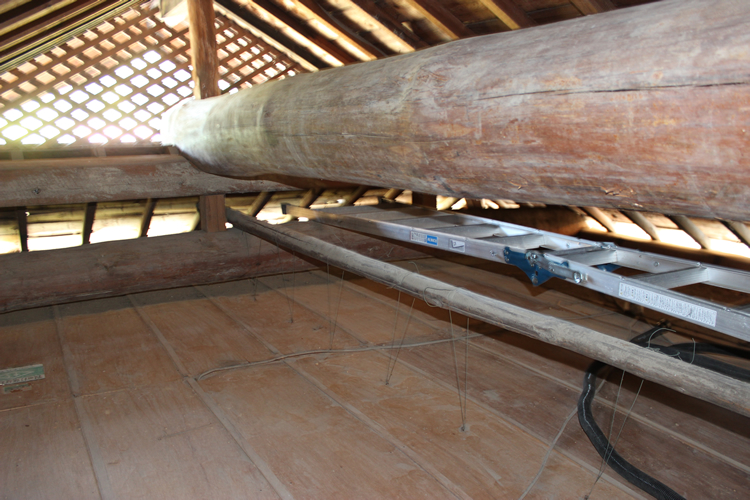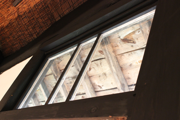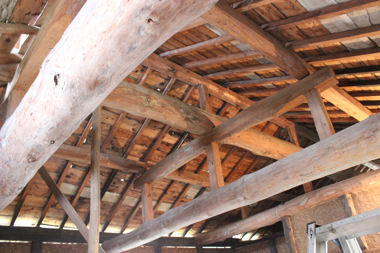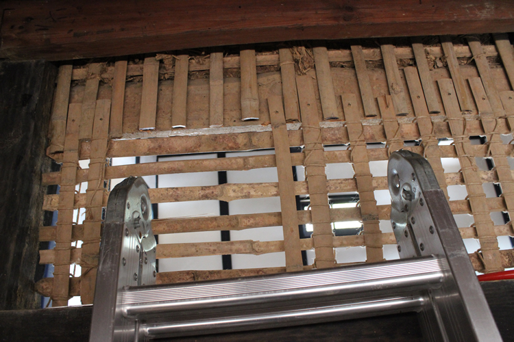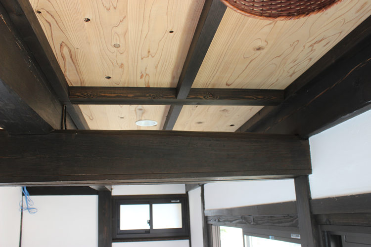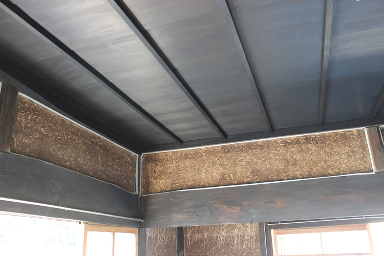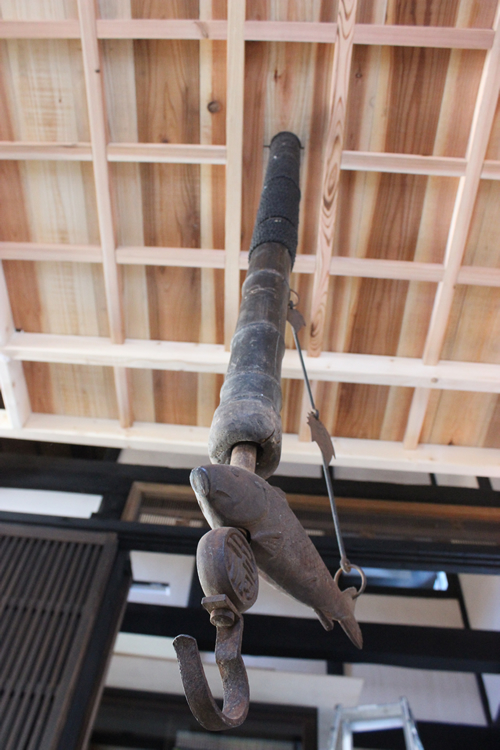 左の写真をご覧いただければわかると思うが、この報知器は囲炉裏の間の吹き抜けの棟木に取り付けている。報知器の設置位置基準はかなり細かく設定されており、この場合作者が問題視したいのは「天井」という定義についてだ。