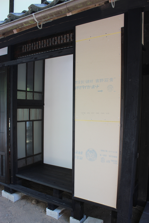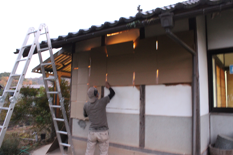 だが現代建築でもこういったダクト周りにはこれが広く使われる。今回とった措置というのは、離隔距離が足りない部分にこれを巻く、ということで、それを実施したのが左の写真だ。