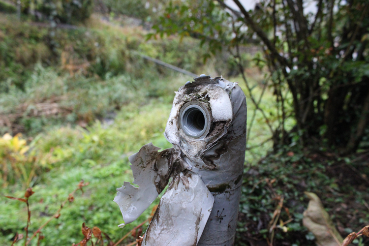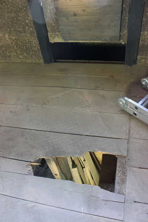 この、納屋でも最も高い位置の、それも熱感知式の報知器が作動するということは、ほとんどこの建物が全焼する直前ということになり、「燃え尽きました」と報告するに等しい場所だと思う。