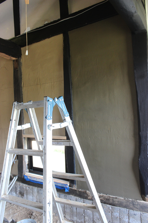 前回のブログでトイレの壁を造っていったのと平行して、納屋に残っている最後の荒壁の部分にも中塗りを施していくことにした。