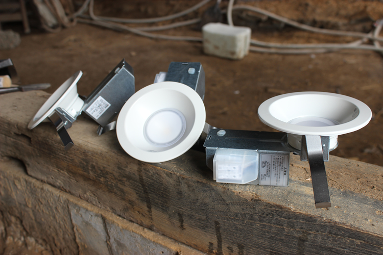 この天井で使う照明も他で使ってきたダウンライトと同様のものを使うことにした。使っているのはNECのダウンライトで、最初にアマゾンでお試し購入したものが想像以上に明るく、値段も考慮して必要十分の性能を持っていると思う。