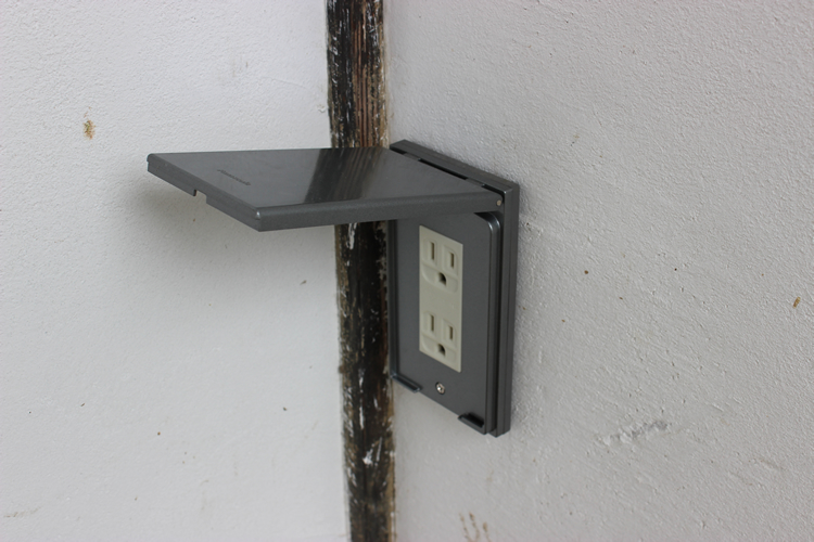 つまり、このポンプは常に作動しておかなければならないものであり、それの電源をこのコンセントからとることになる都合上、こういった使わないときはフタをするタイプのコンセントでは完全な雨養生ができないことになるのである。