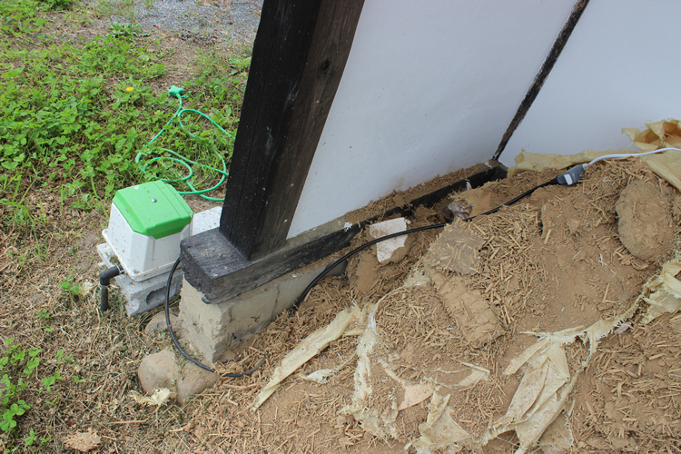 とはいえ、それは今回の報告には関係のない話。今回の話で注目してもらいたいのは、その土のうが崩れてしまっているより奥の方に見えている電気配線の部分である。