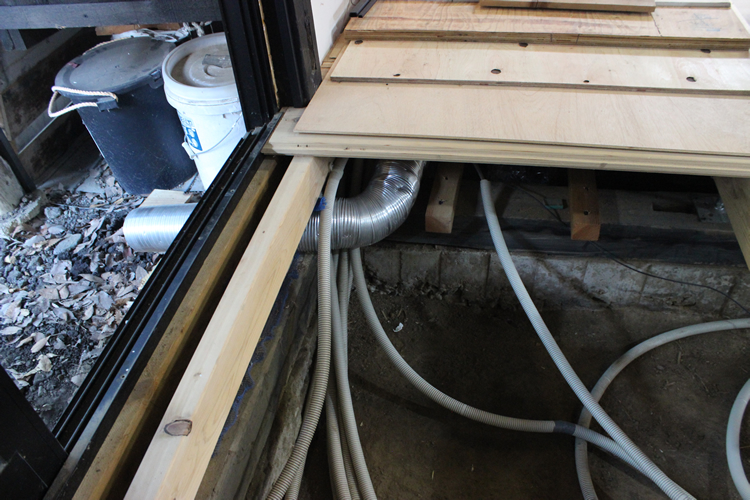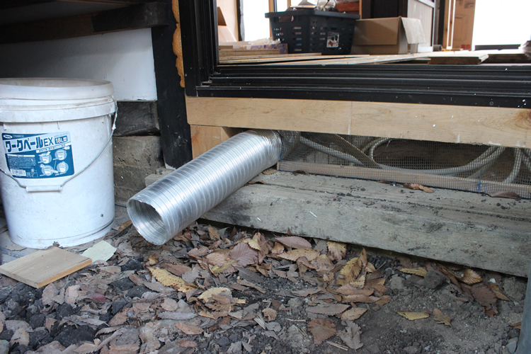 ちなみに、この窓の外は将来的に縁側を造って踏み板のようにする予定で、それを設置することでこのダクトは100パーセント隠れることになる。ただ、可能性としては向きを90度変えて左にある薪置き場の方に風を逃がすことも視野に入れ、そのときの状況で見極めることにした。