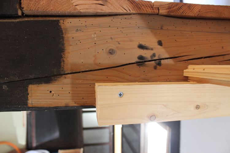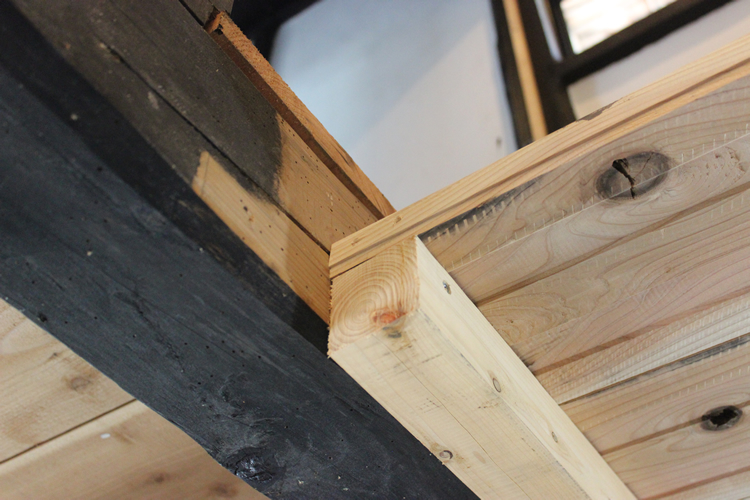 ただここは色々と考えた挙句、ここには蹴込板をつけることに決定。恐らく根太掛けの強度は問題ないと判断して床板の出面でカットするだけとした。こうなると今度はカットした後、ここの梁の塗装も考えておかなければ統一性がなくなってしまう。