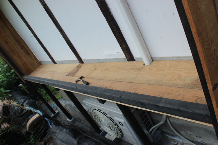 前回で骨組みに対して板張りが終わった状態が冒頭の写真になるが、このような感じでヤッツケ仕事が進んでいる。壁との取り合いを気にするでもなく、密封性は皆無である。