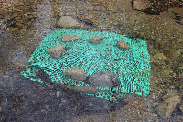 というのがこの区画内には魚の隠れ家になりそうなボサや大きな石、凹凸というのがあまりなく、釣り用語でいうチャラ瀬のような平坦な部分なのである。普通にガサ入れをしても恐らくそうは獲れない区域といえる。
