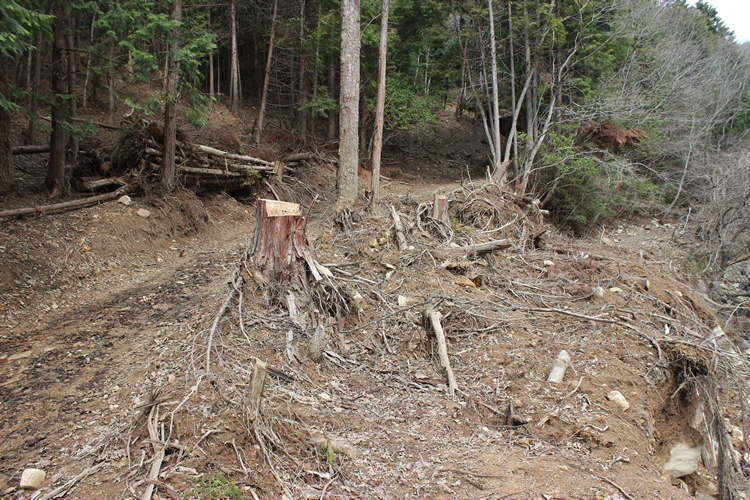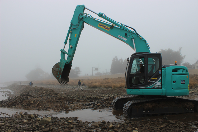 右の写真の光景はできることなら見たくなかった。これは今回の企画のため、大型のバックホーで川の砂利をさらって流れを変えているのだが、かなりの広範囲で川をズタズタにしてしまっており、かなりの魚がつぶされたり、驚いて区画範囲外へ逃げていったと思われる。